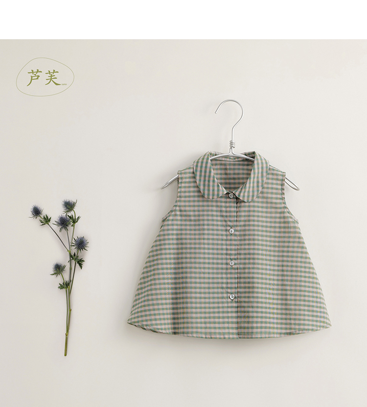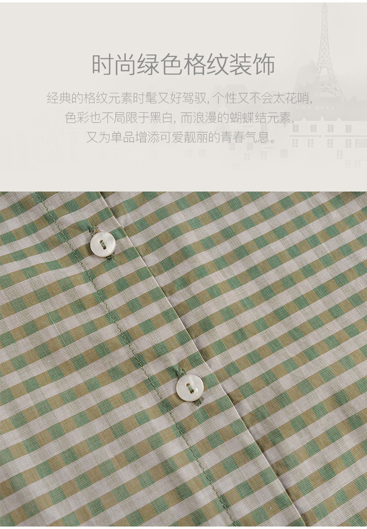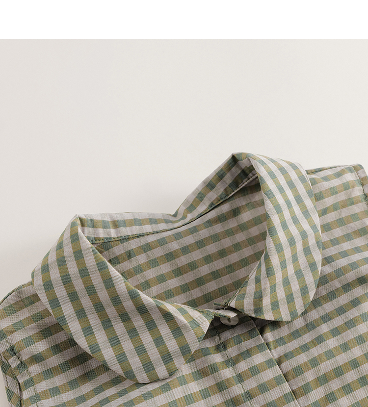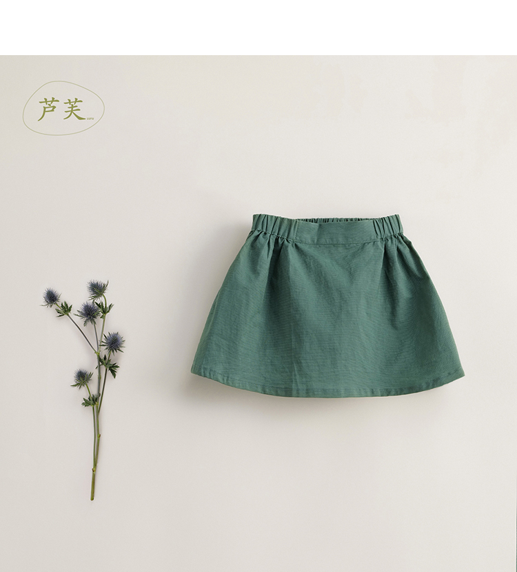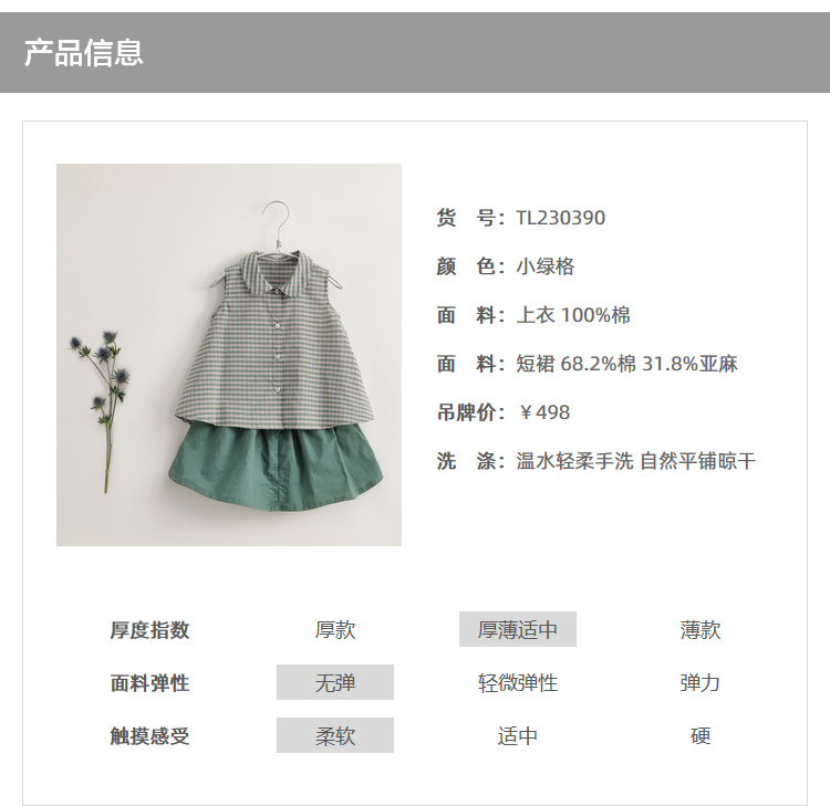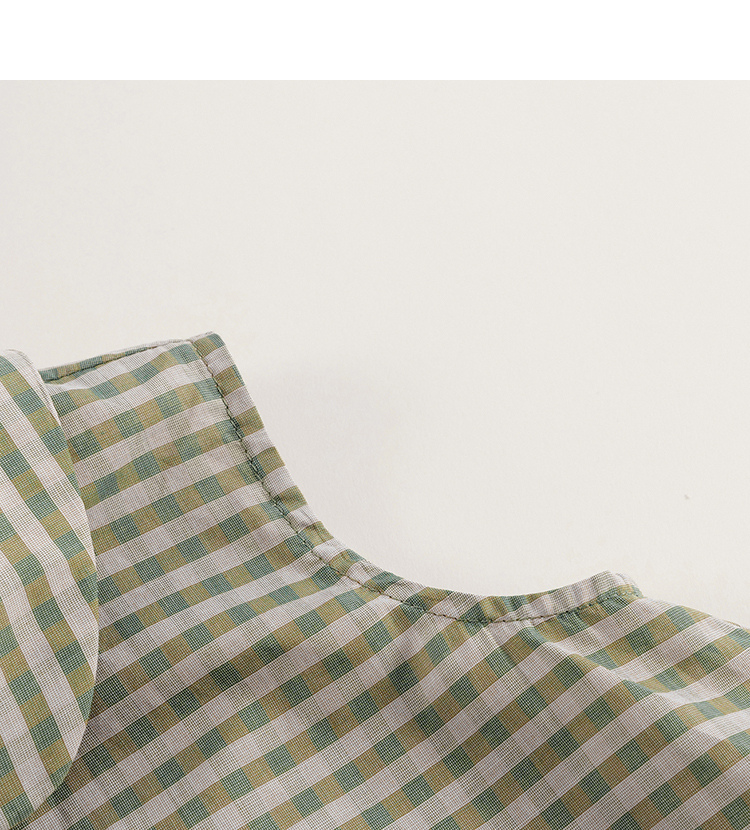 【马克珍妮 芦芙】夏装新款 女童透气棉麻绿格短裙套装230390