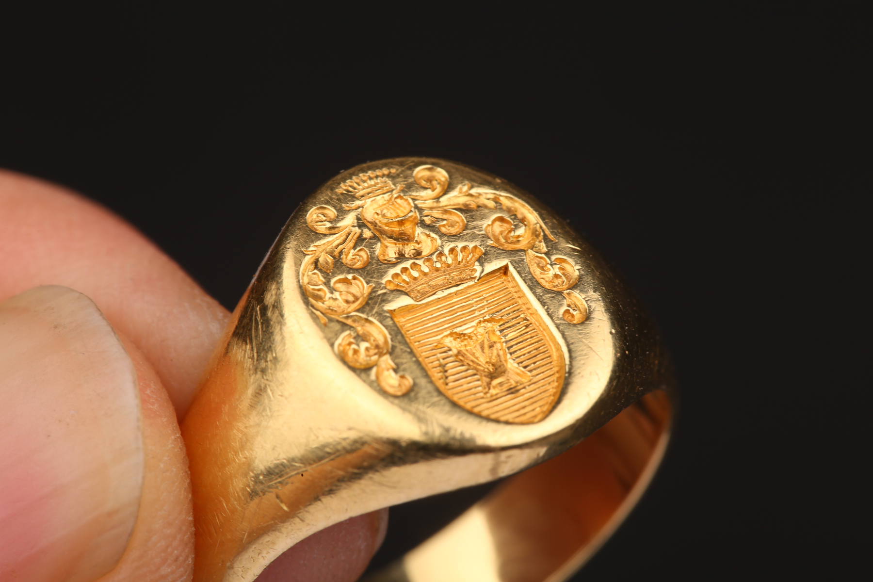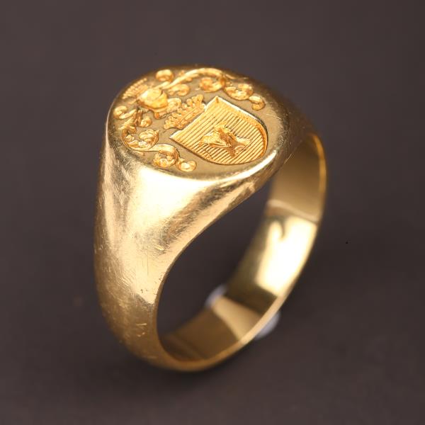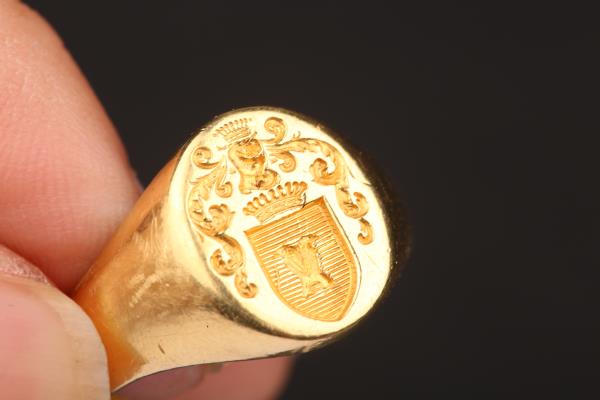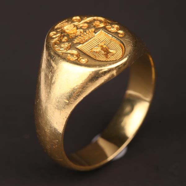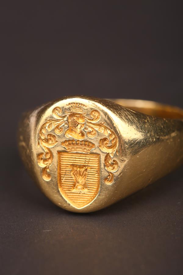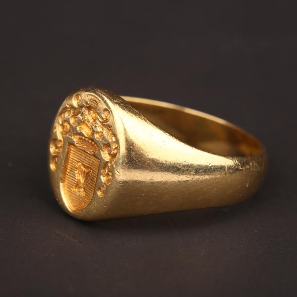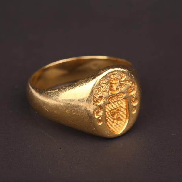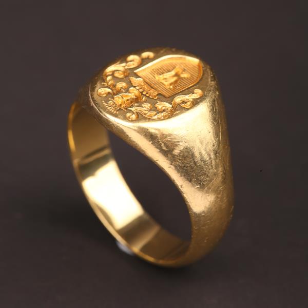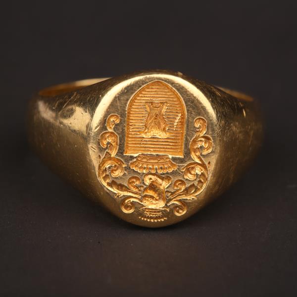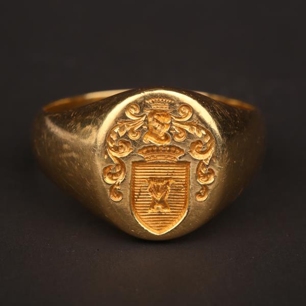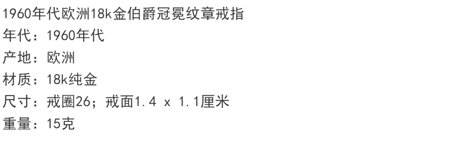 独角鹿西洋古董珠宝首饰1960年代欧洲18K金伯爵冠冕纹章戒指