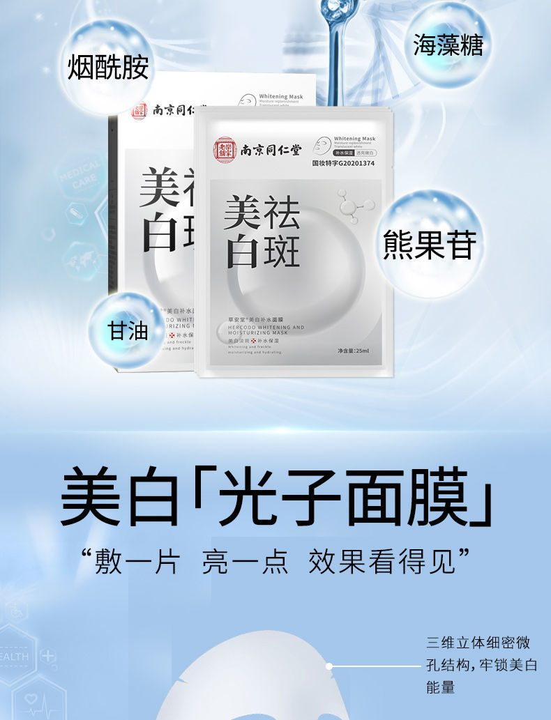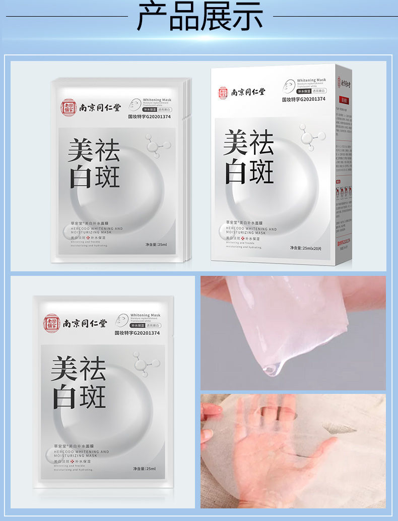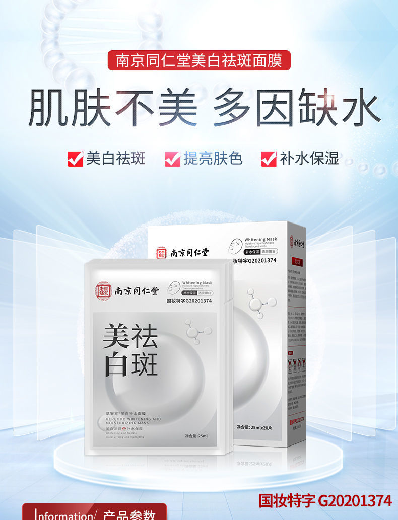 南京同仁堂面膜20片装美白祛斑补水保湿美白淡斑提亮肤色收缩毛孔