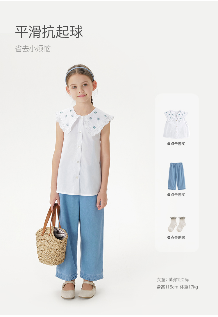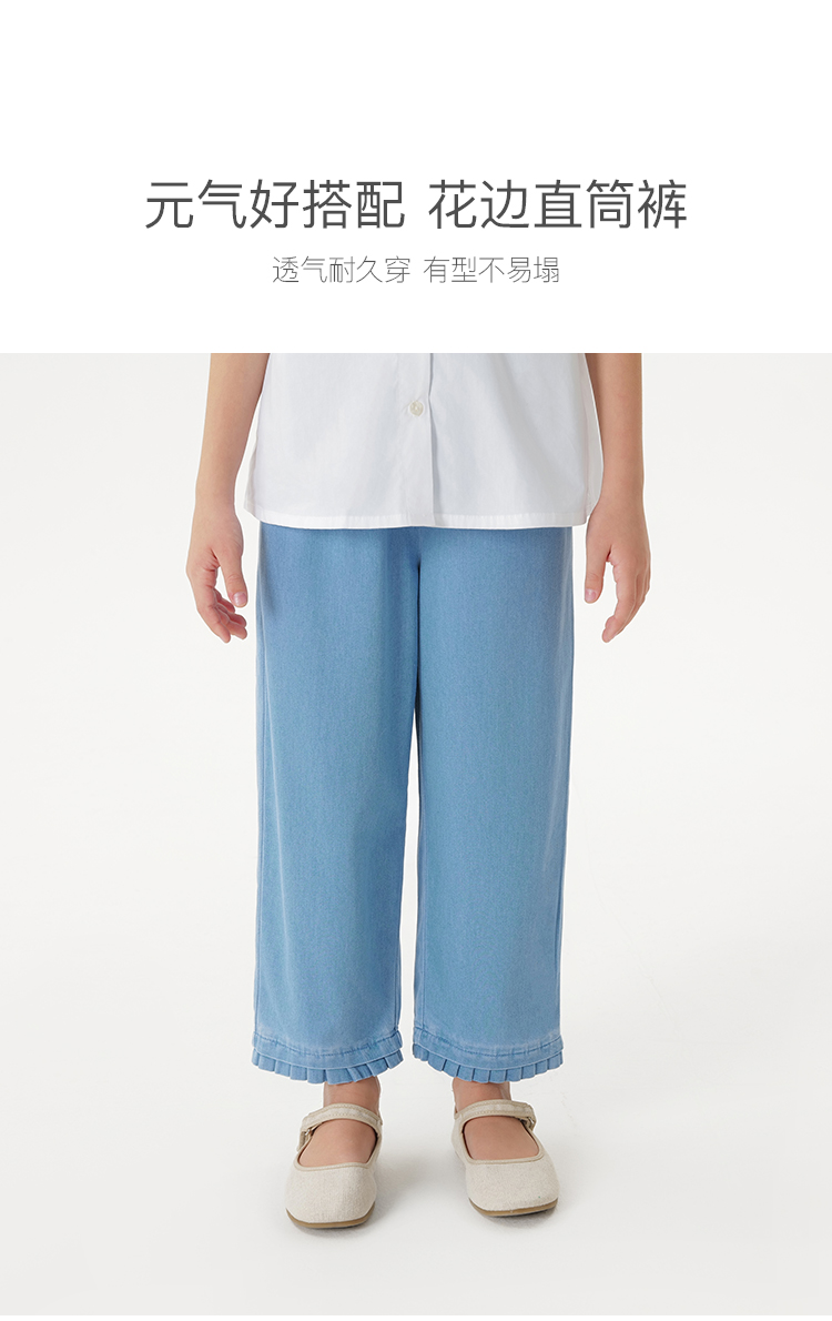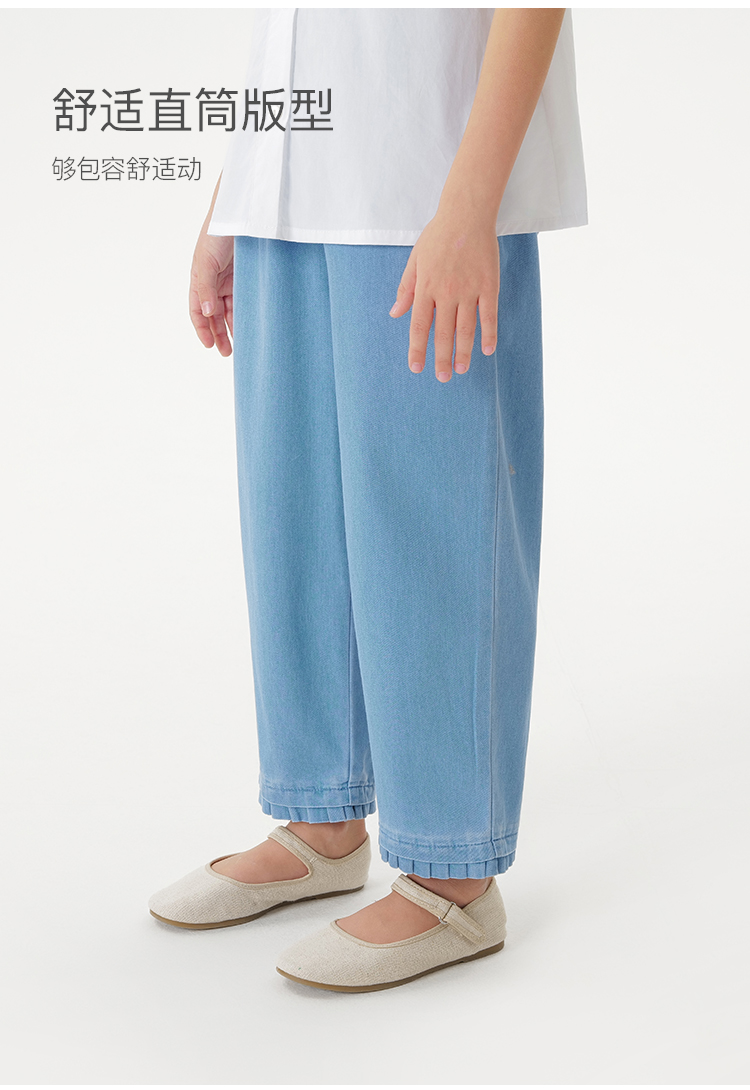 马克珍妮女童元气花边轻薄牛仔裤儿童直筒裤2025年春夏新款550832