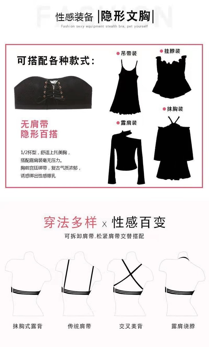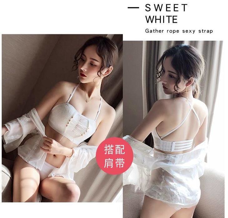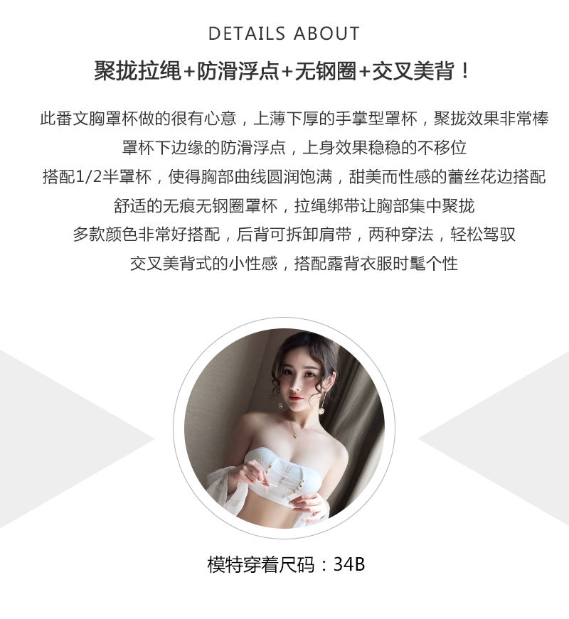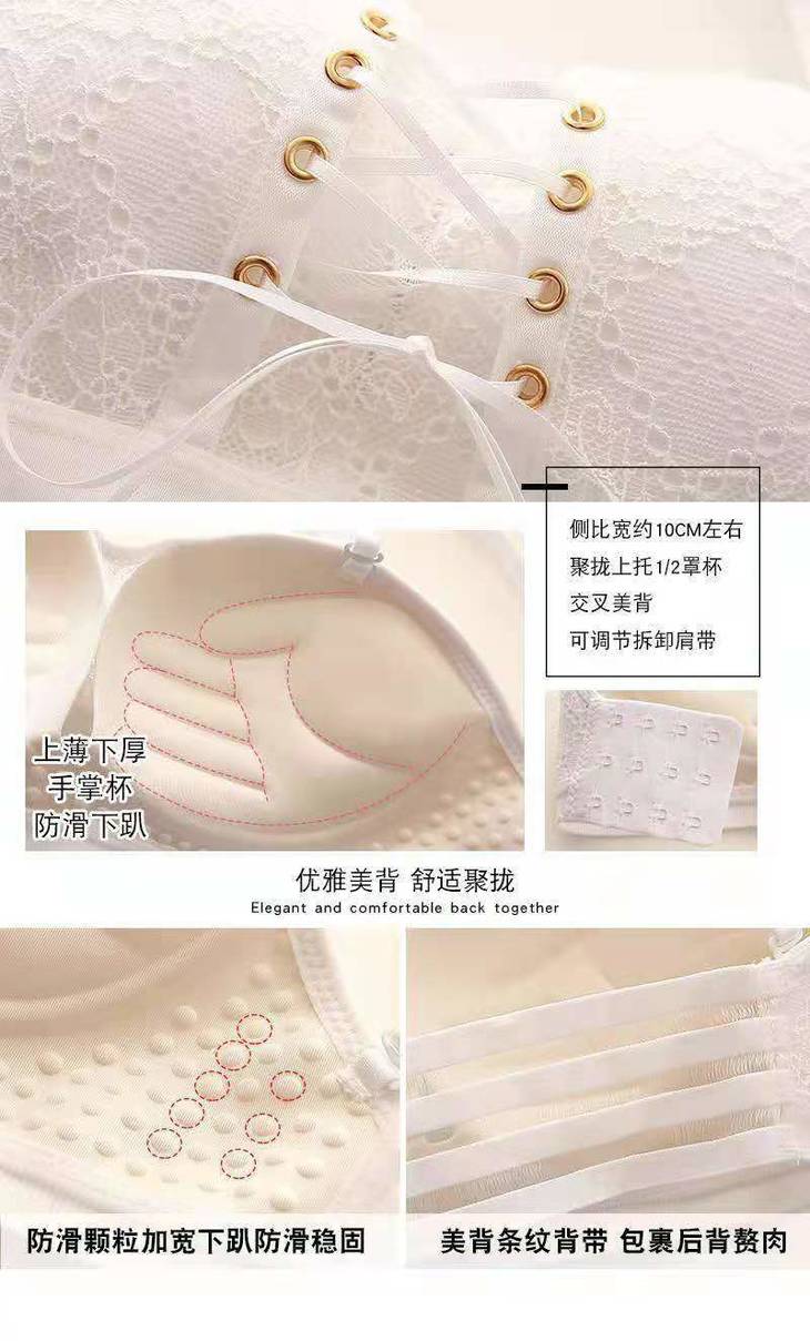 【抖音网红同款】维亚美背婚纱蕾丝文胸无钢圈聚拢小胸抹胸贴内衣女