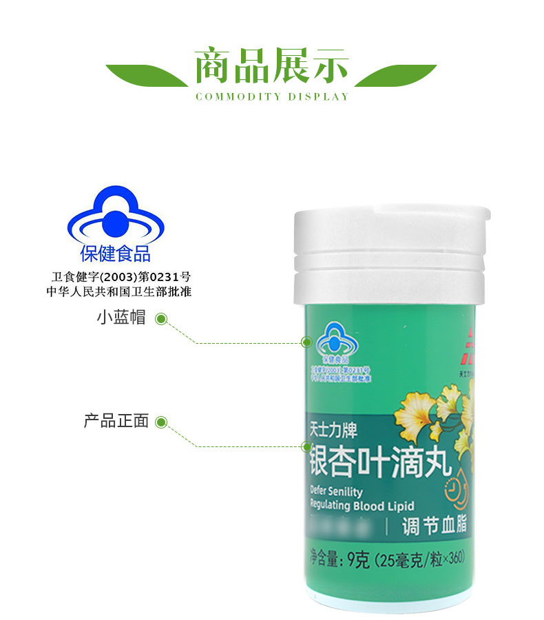 天士力牌银杏叶滴丸2x10克(25毫克/粒*400)调节血脂,延缓衰老
