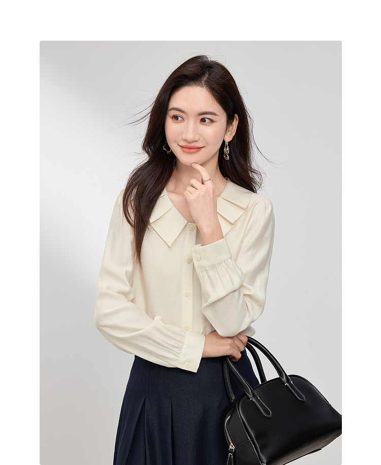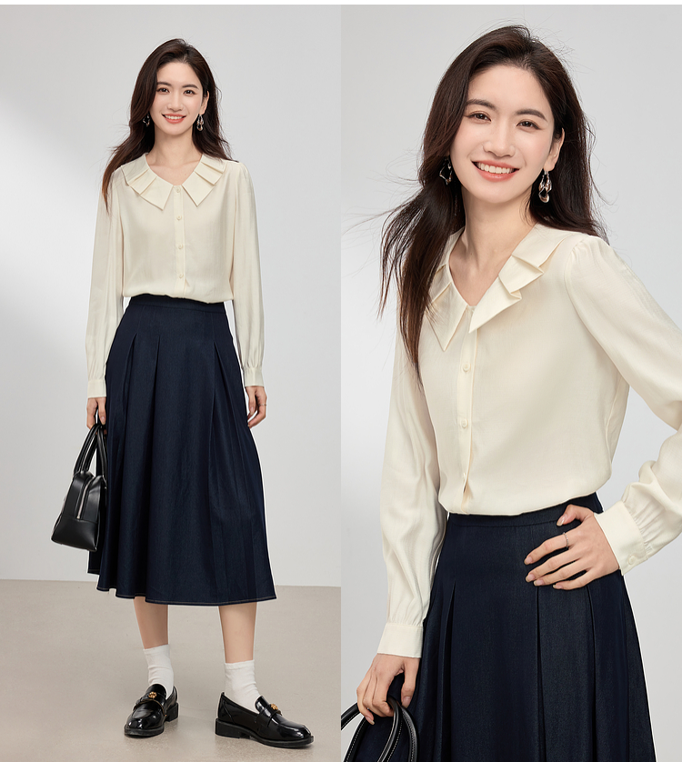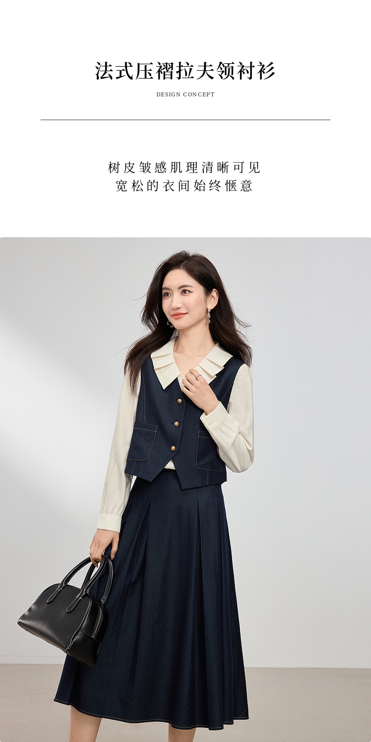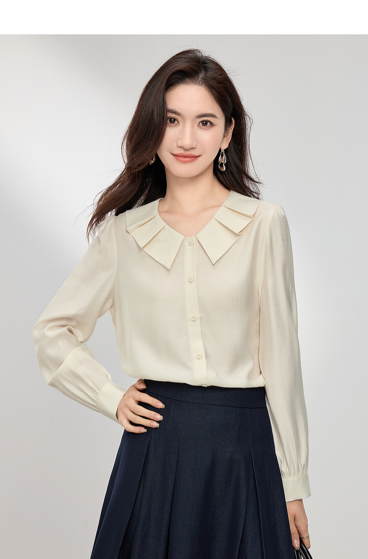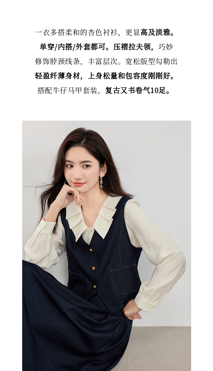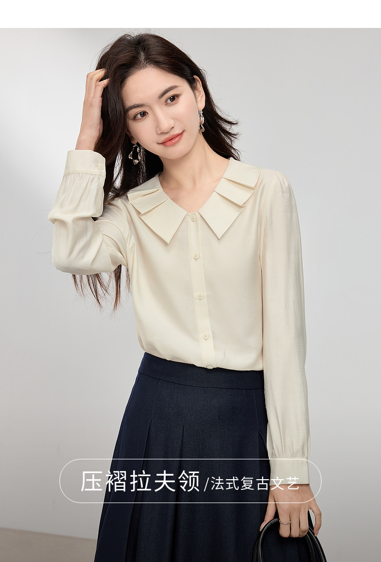 熙世界法式压褶拉夫领衬衫女长袖别致漂亮通勤衬衣2025年春季新款
