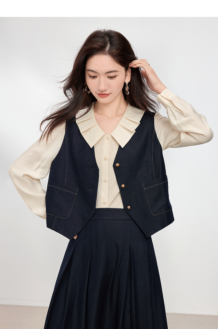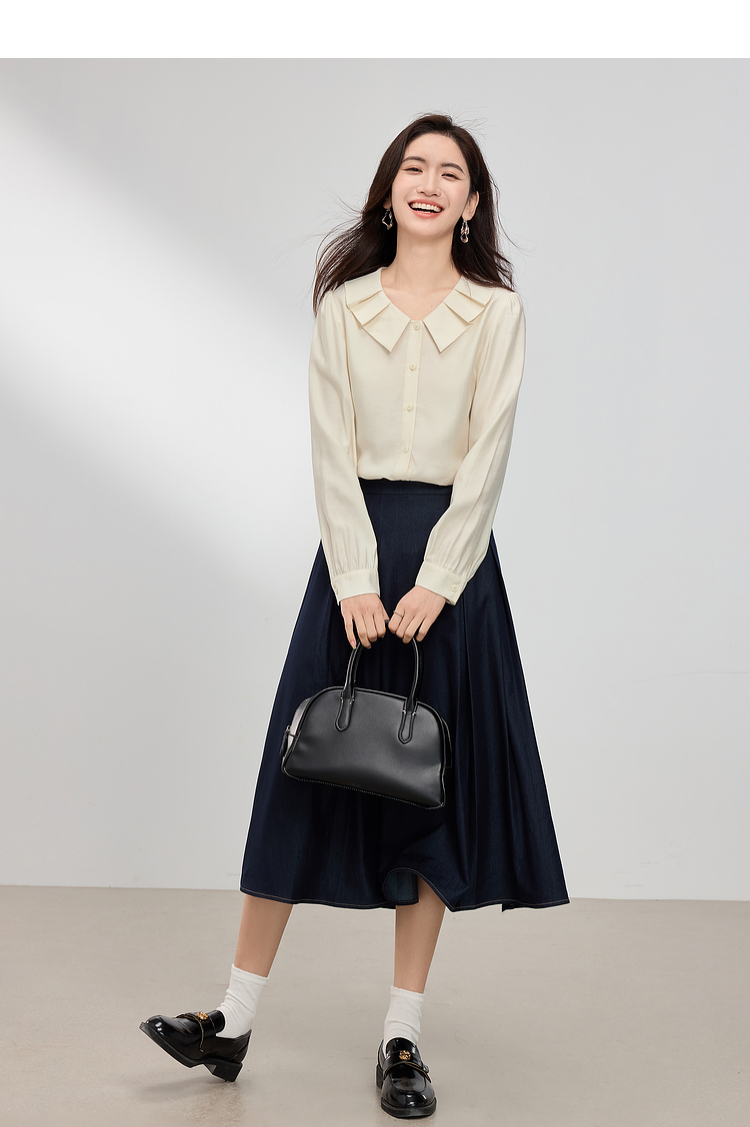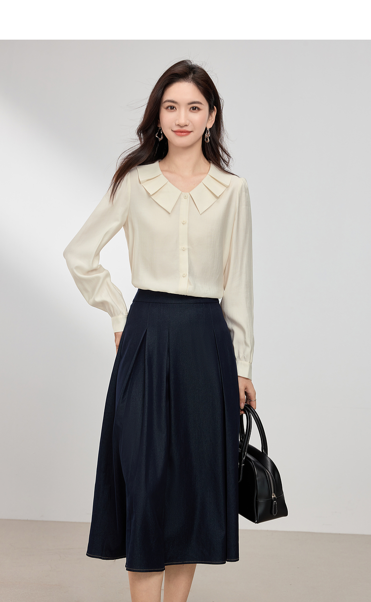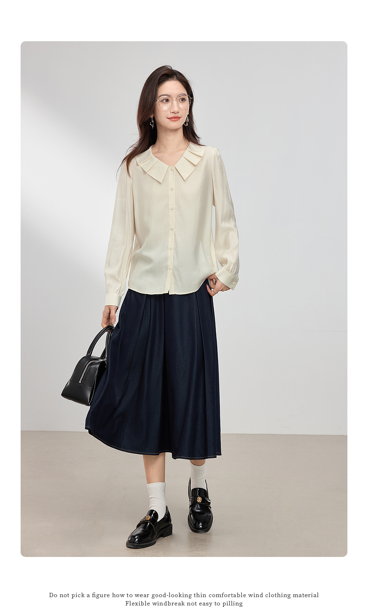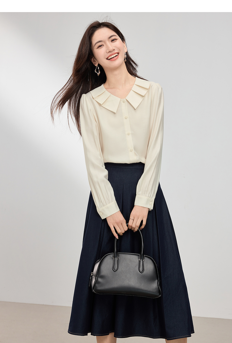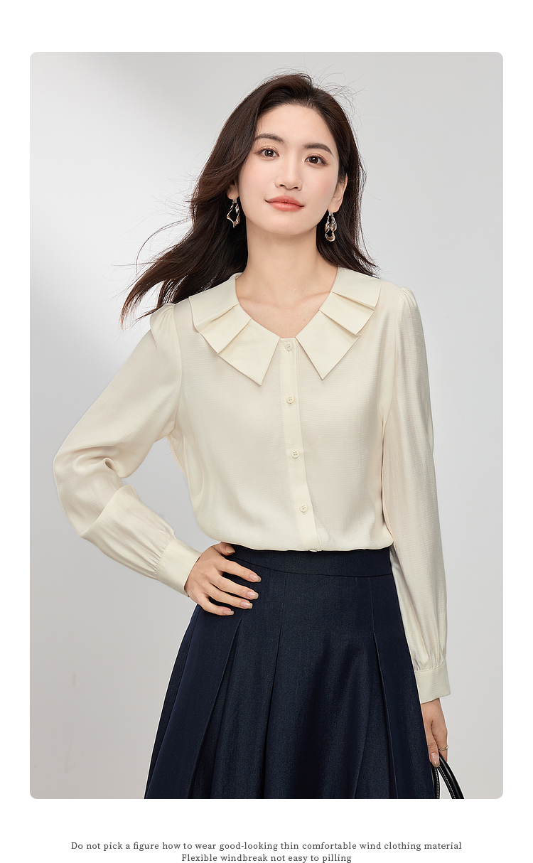 熙世界法式压褶拉夫领衬衫女长袖别致漂亮通勤衬衣2025年春季新款