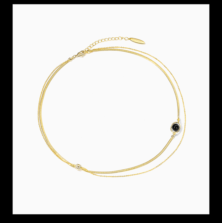 ZEGL爱心人造珍珠项链女高级设计感小众黑玛瑙锁骨链法式复古配饰