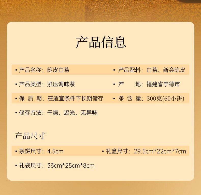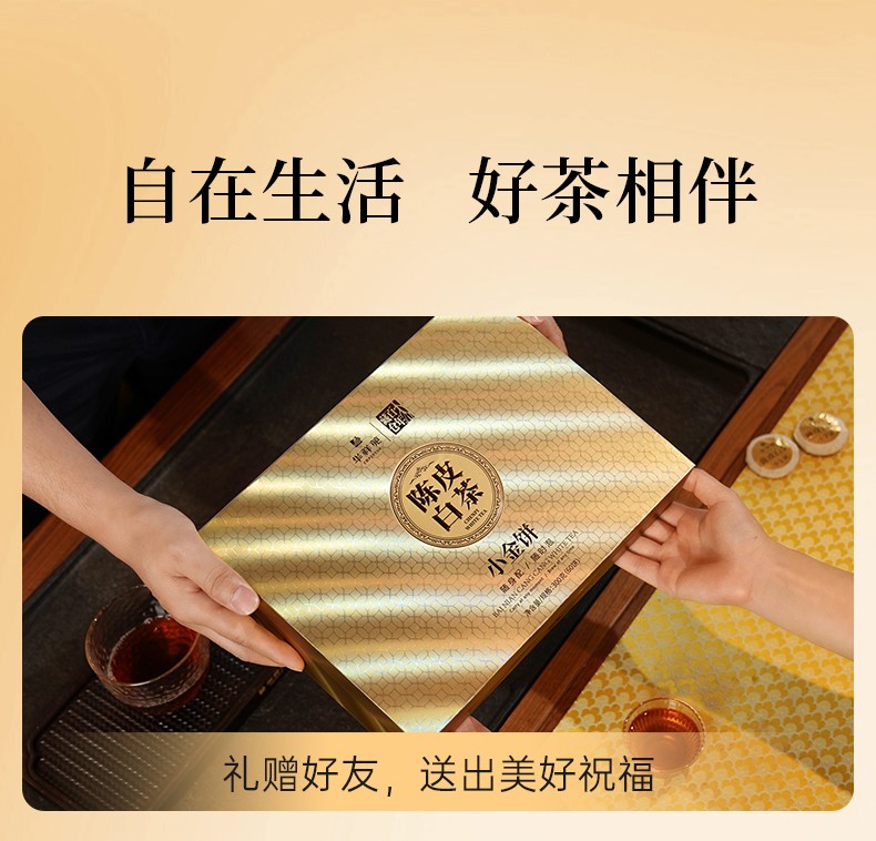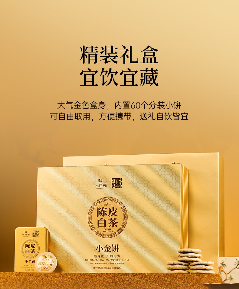 华祥苑 新会陈皮白茶小金饼福鼎寿眉300g礼盒装