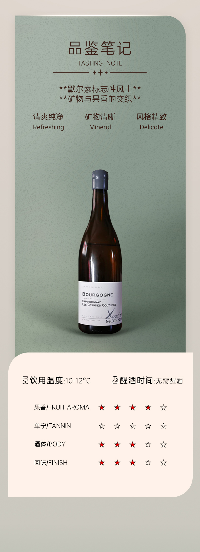 泽维尔蒙诺酒庄勃艮第霞多丽干白葡萄酒 2022 Xavier Monnot Bourgogne Chardonnay "Les Grandes Coutures"