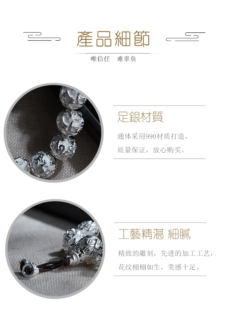 【六字箴言】子佩集匠人S990银真言手串【多规格】手链203