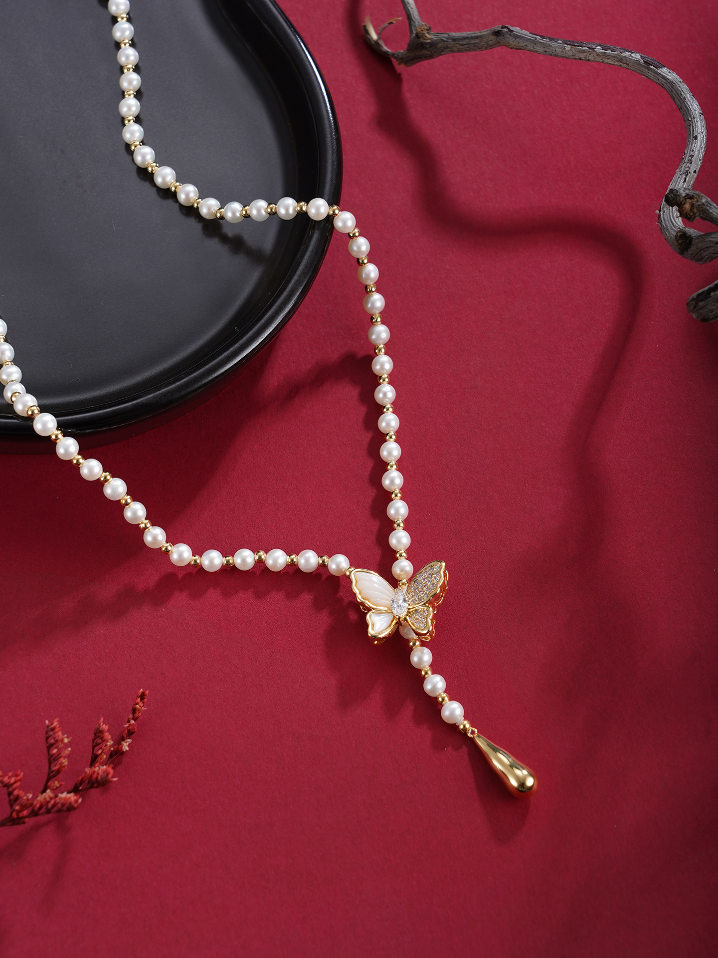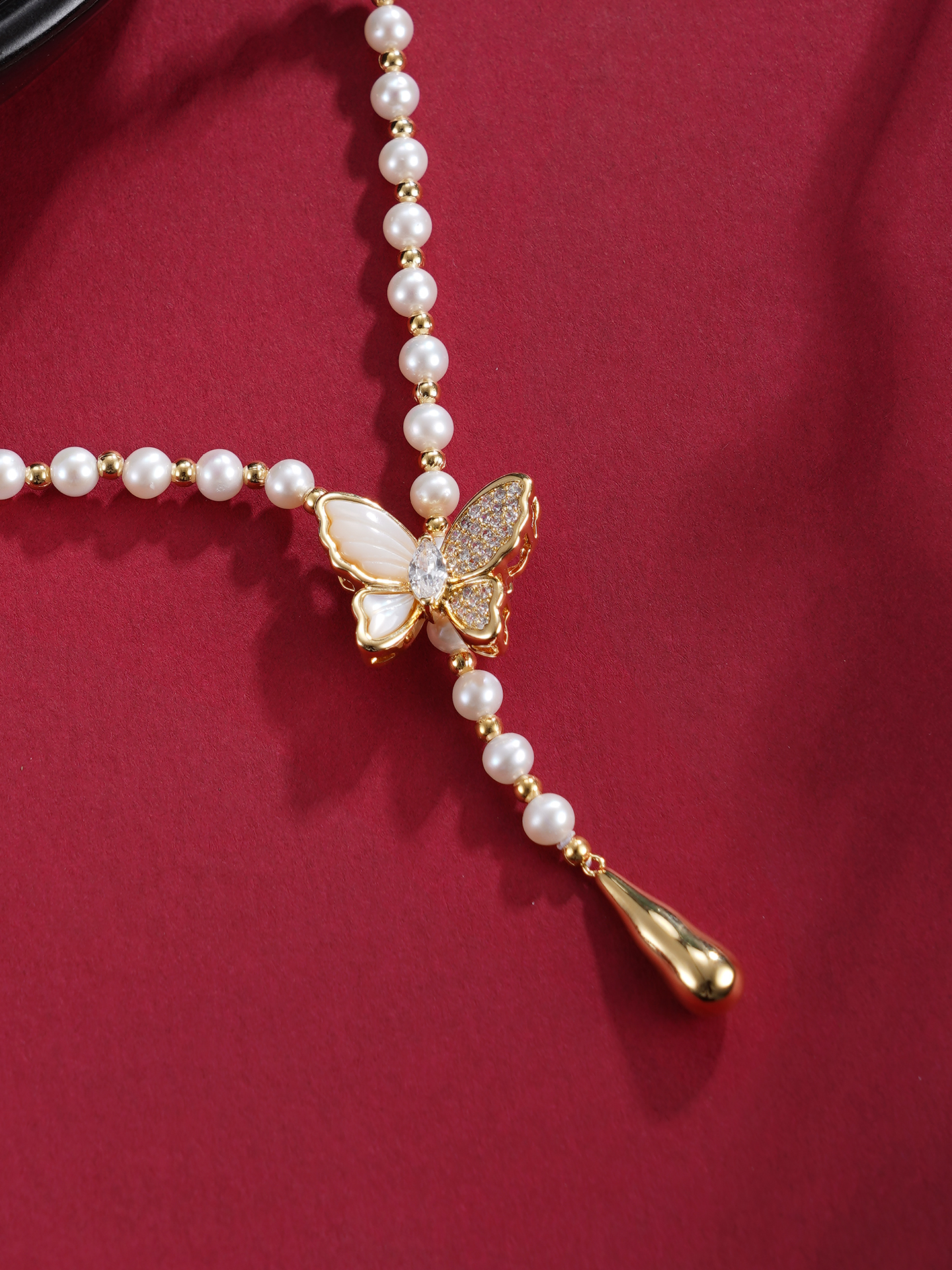 子佩集【蝴蝶盟约】珍珠毛衣链【XXMYL005】4mm珠蝴蝶镀金2512