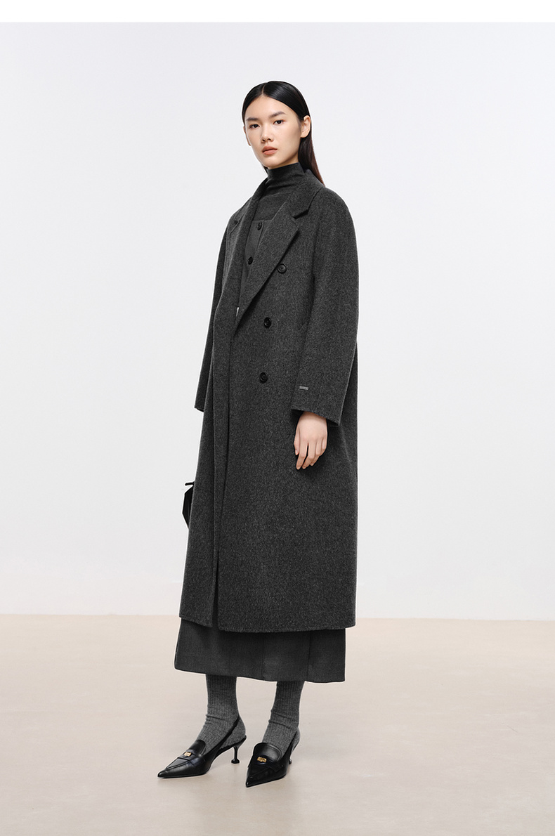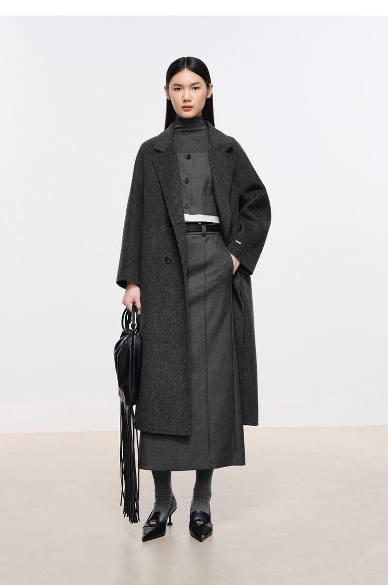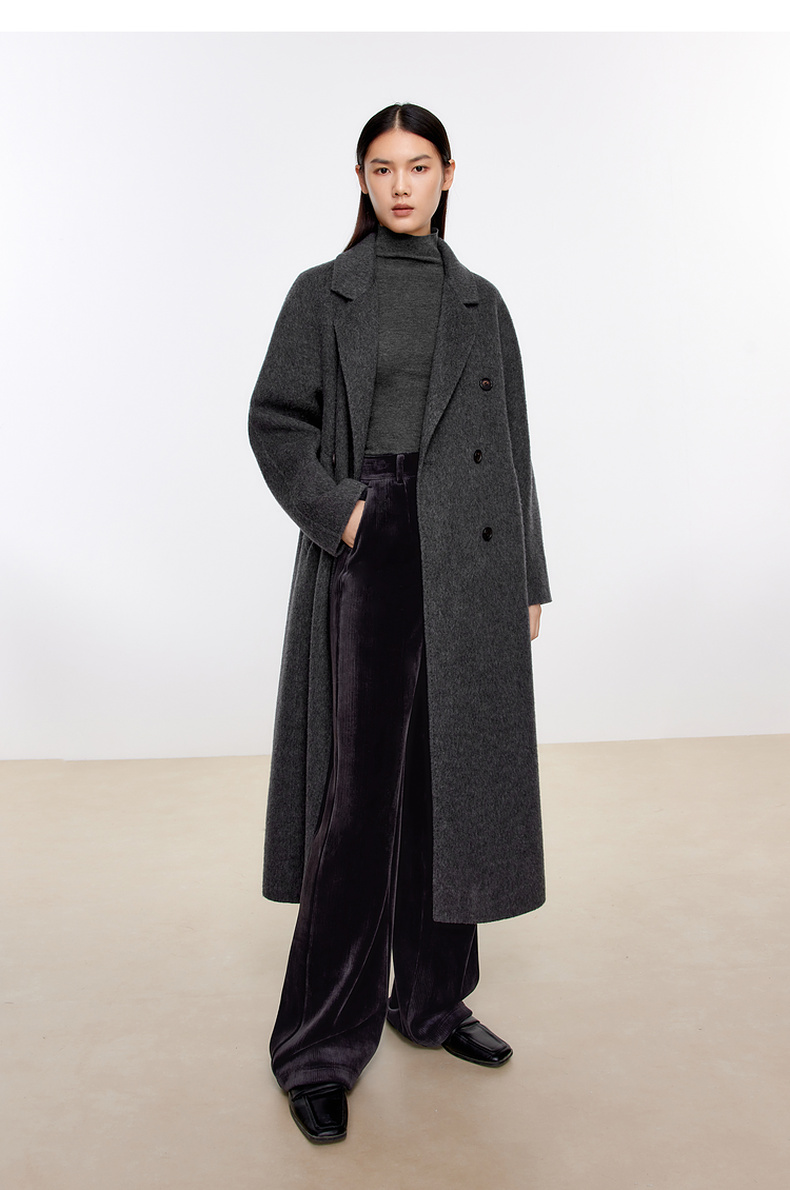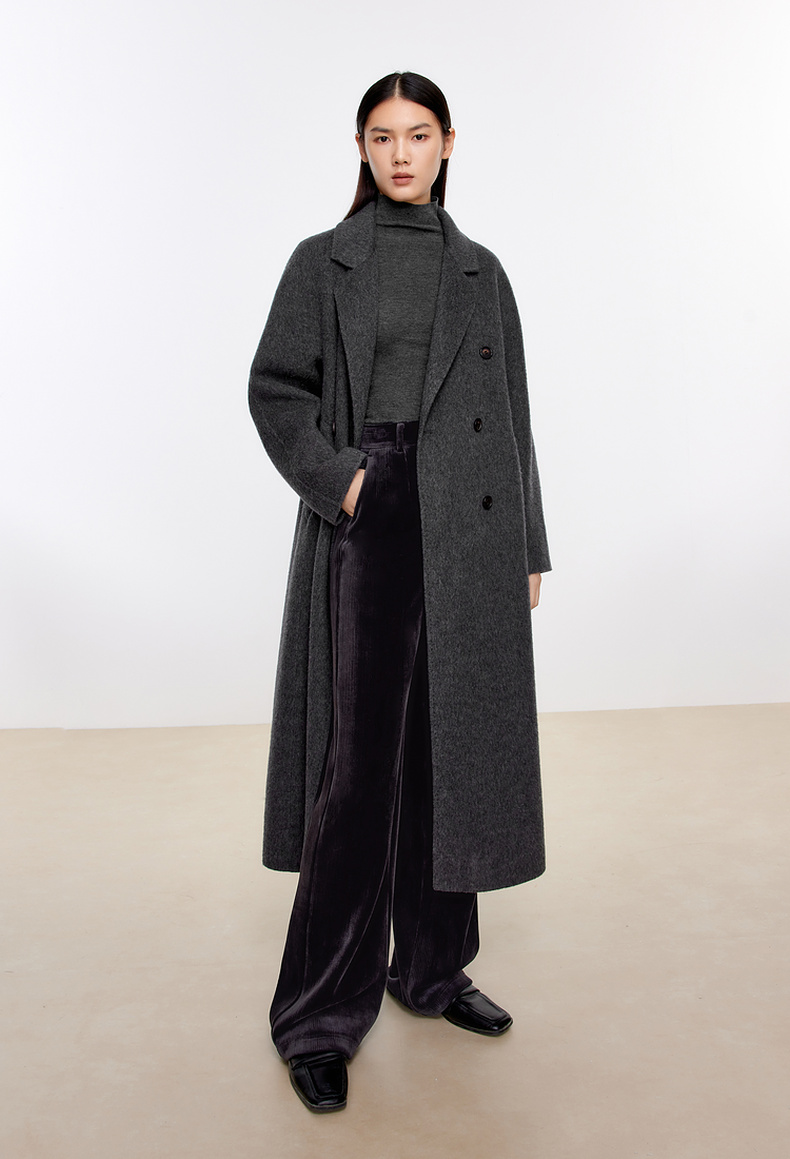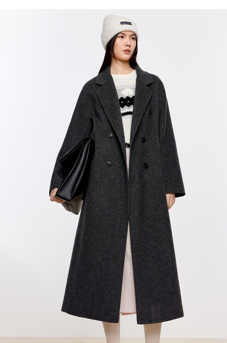 【经典款】【商场同款】伊芙丽冬经典双门襟收腰双面毛呢大衣199A170351