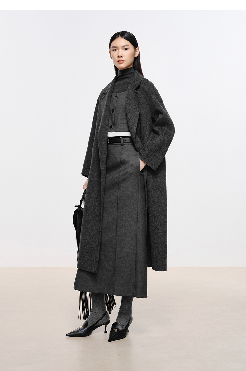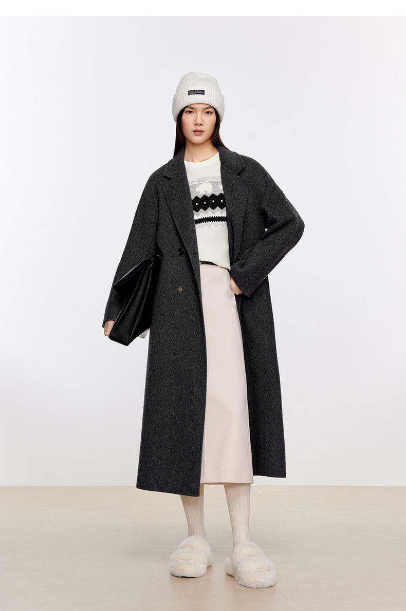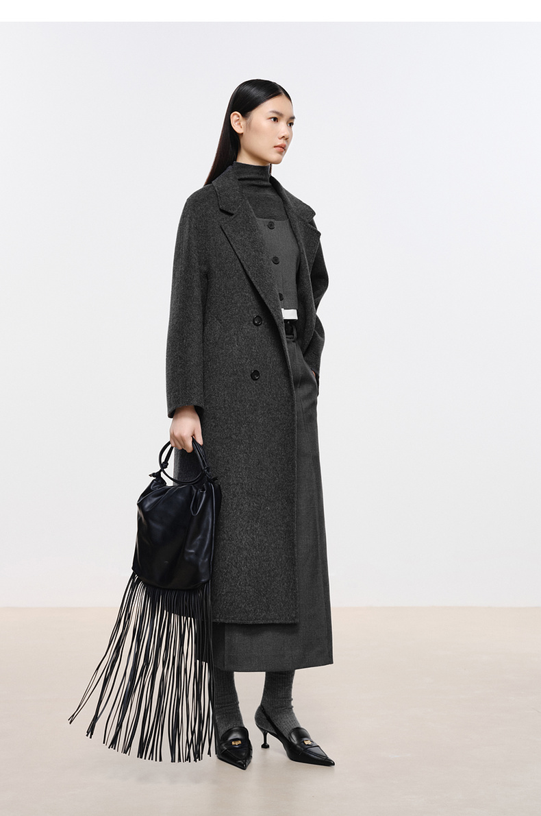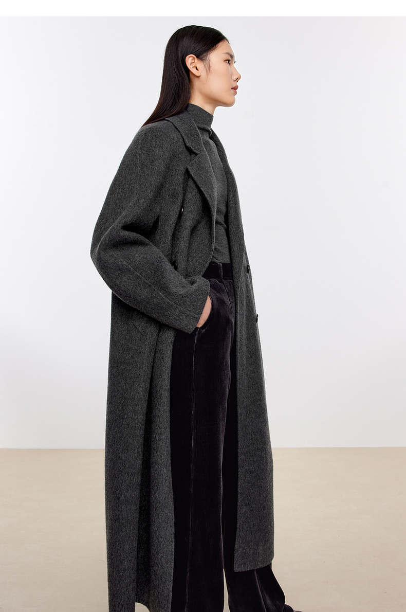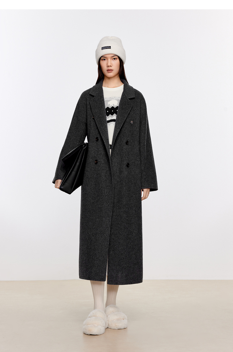 【经典款】【商场同款】伊芙丽冬经典双门襟收腰双面毛呢大衣199A170351