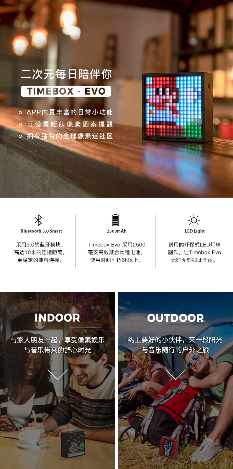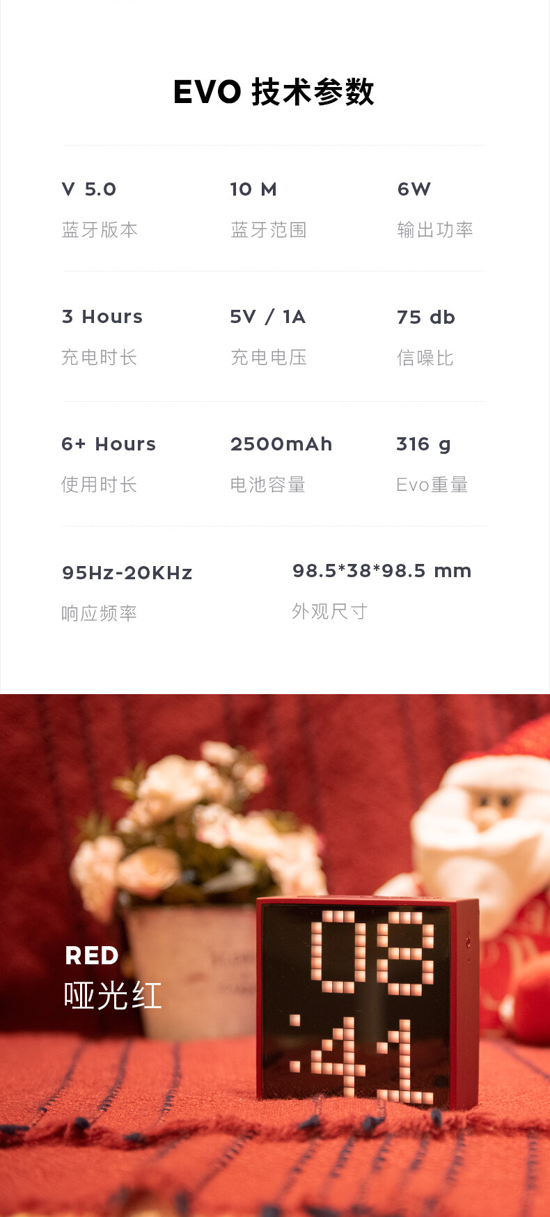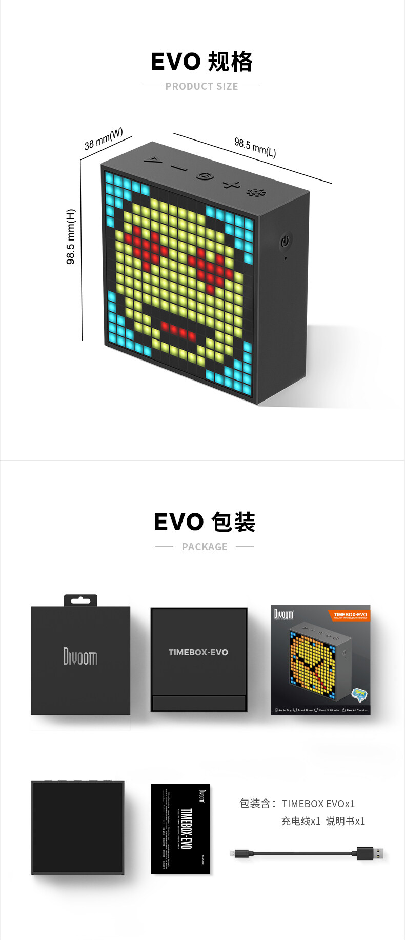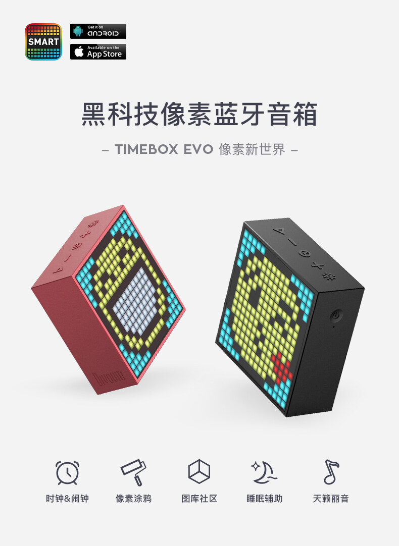 Divoom点音Timebox-Evo像素闹钟蓝牙音箱复古小音响