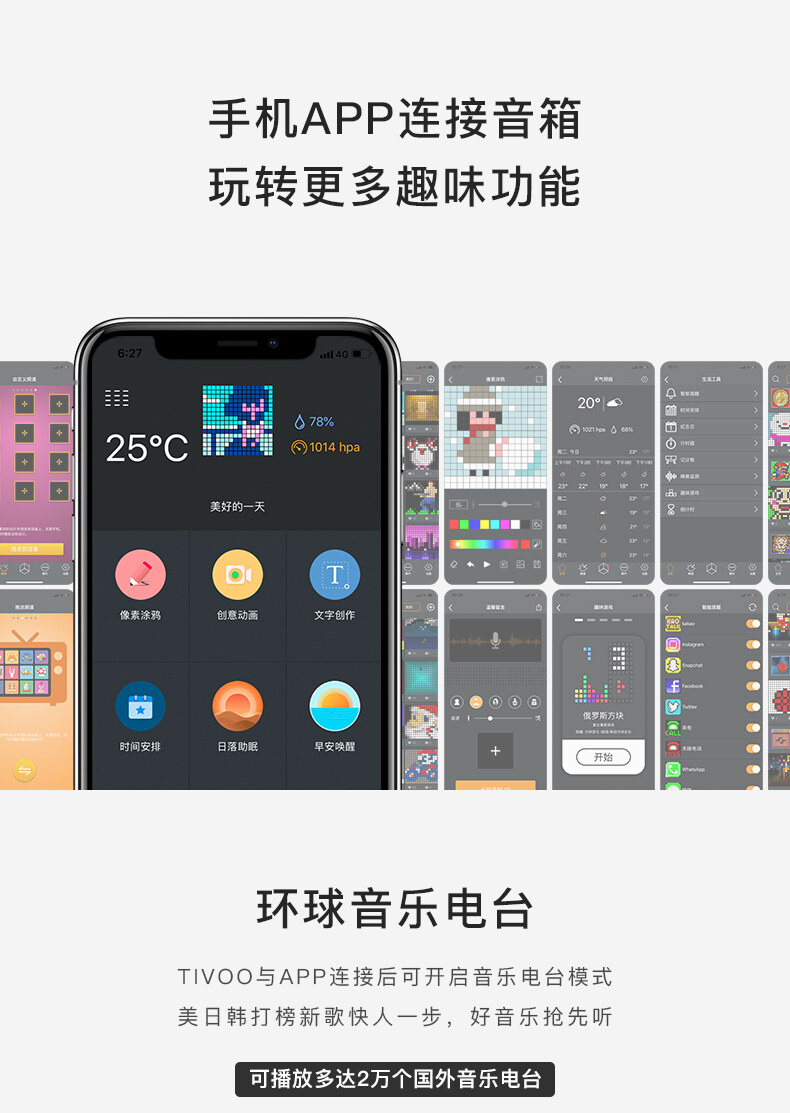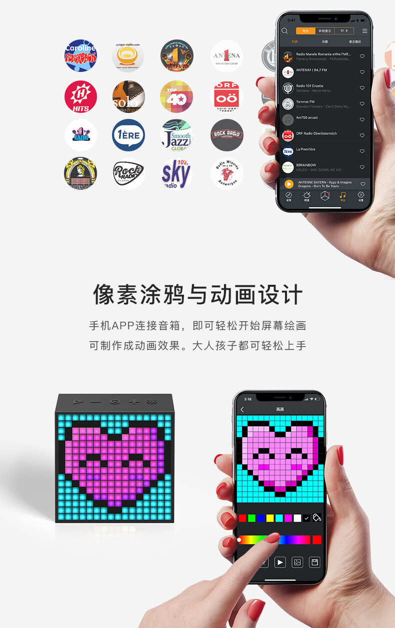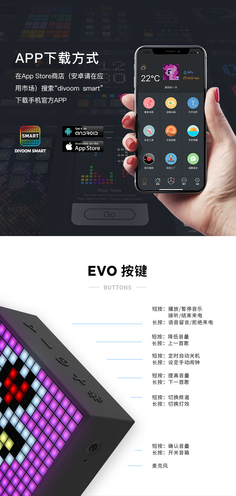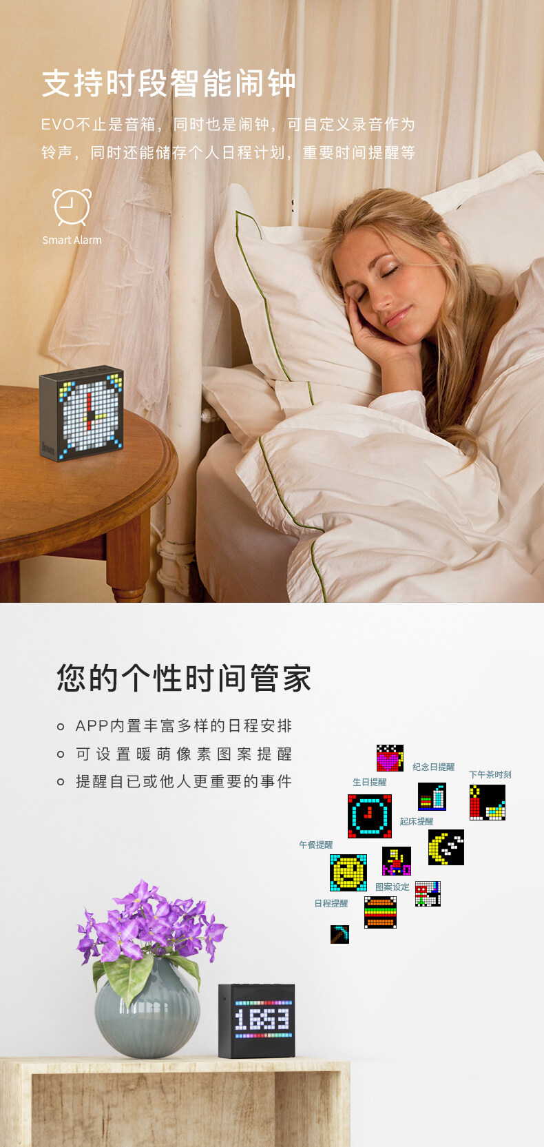 Divoom点音Timebox-Evo像素闹钟蓝牙音箱复古小音响