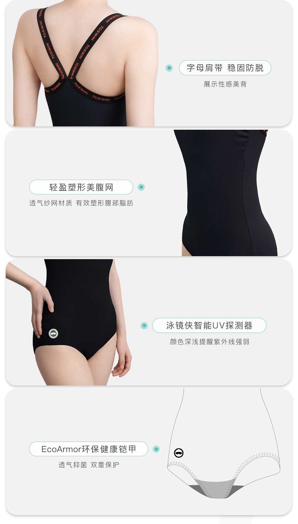 【代发】toswim女士连体三角宽肩带游泳衣/连体三角细肩带游泳训练衣成人女款泳衣