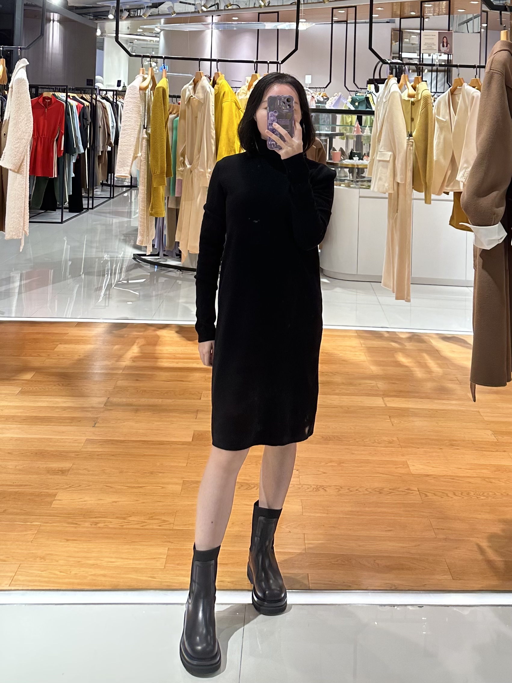 羊毛混纺针织高领连衣裙