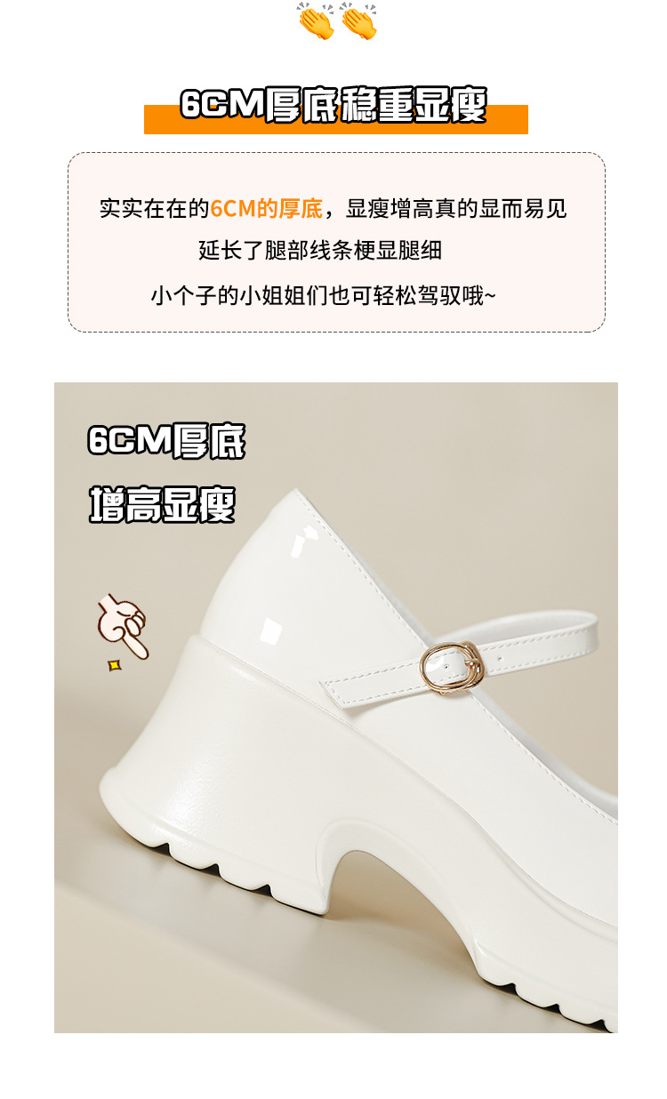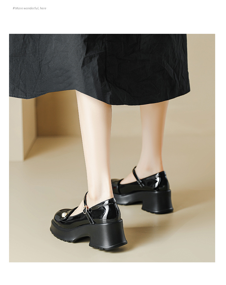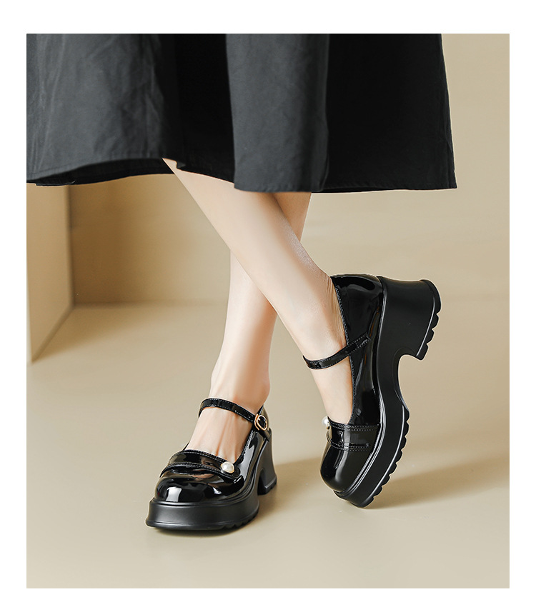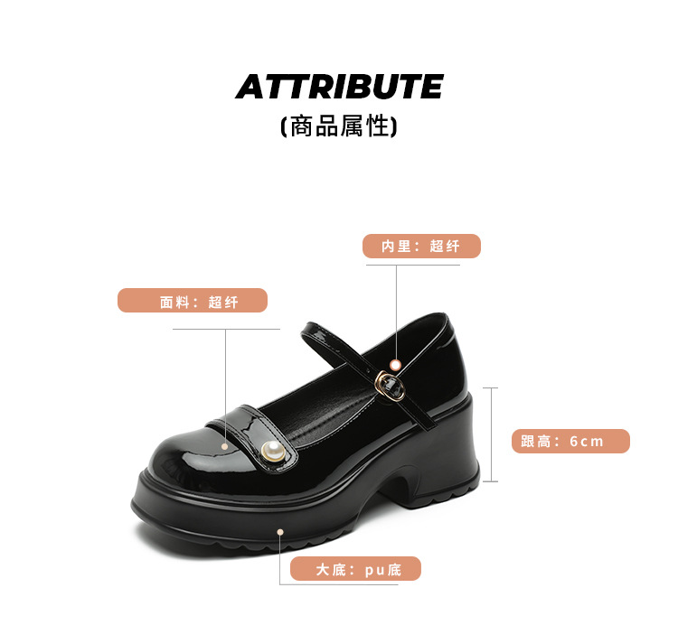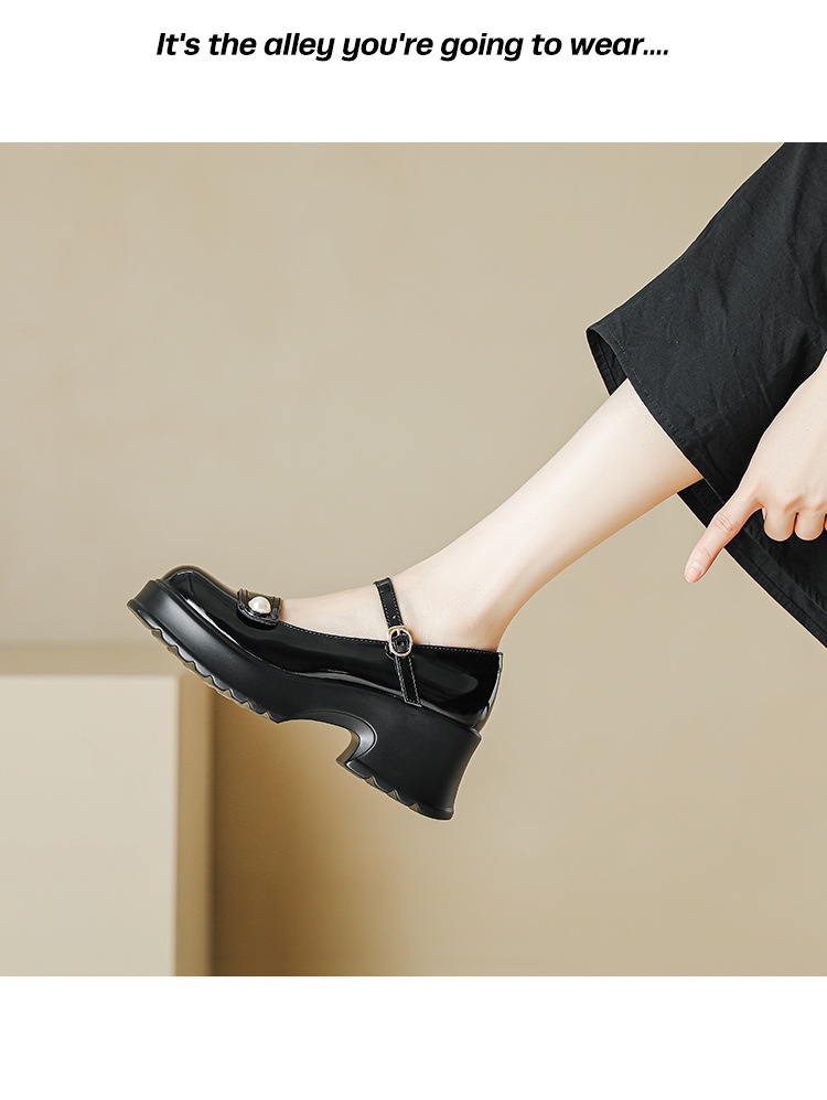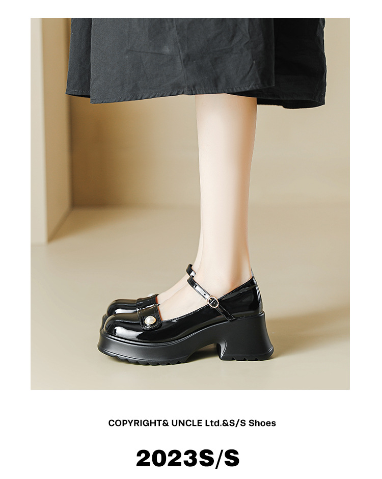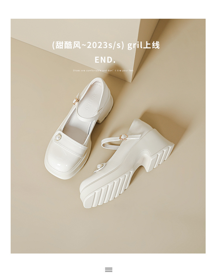 好看有设计感的甜酷玛丽珍高跟单鞋女2023新款女生厚底粗跟小皮鞋