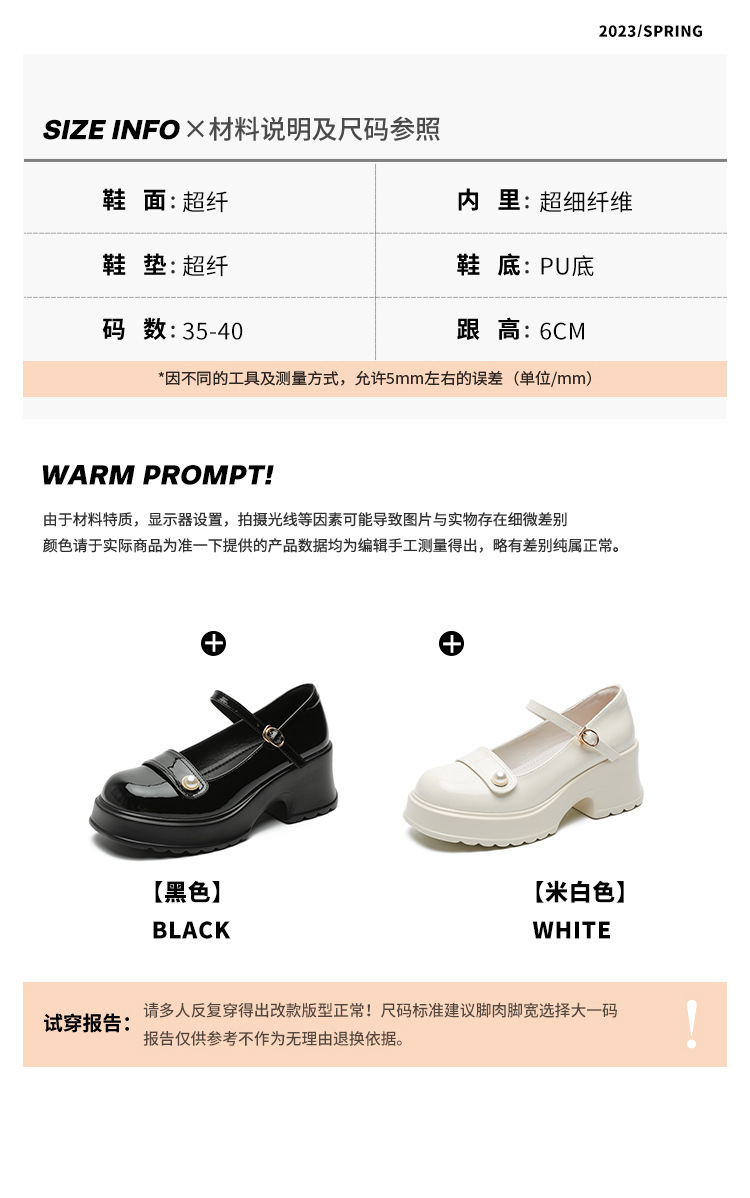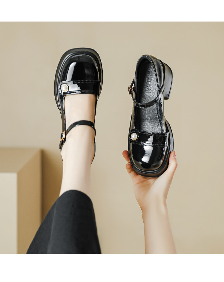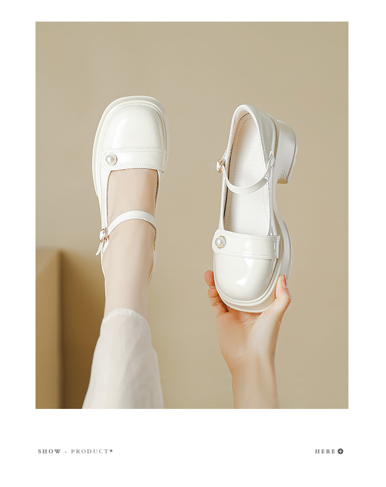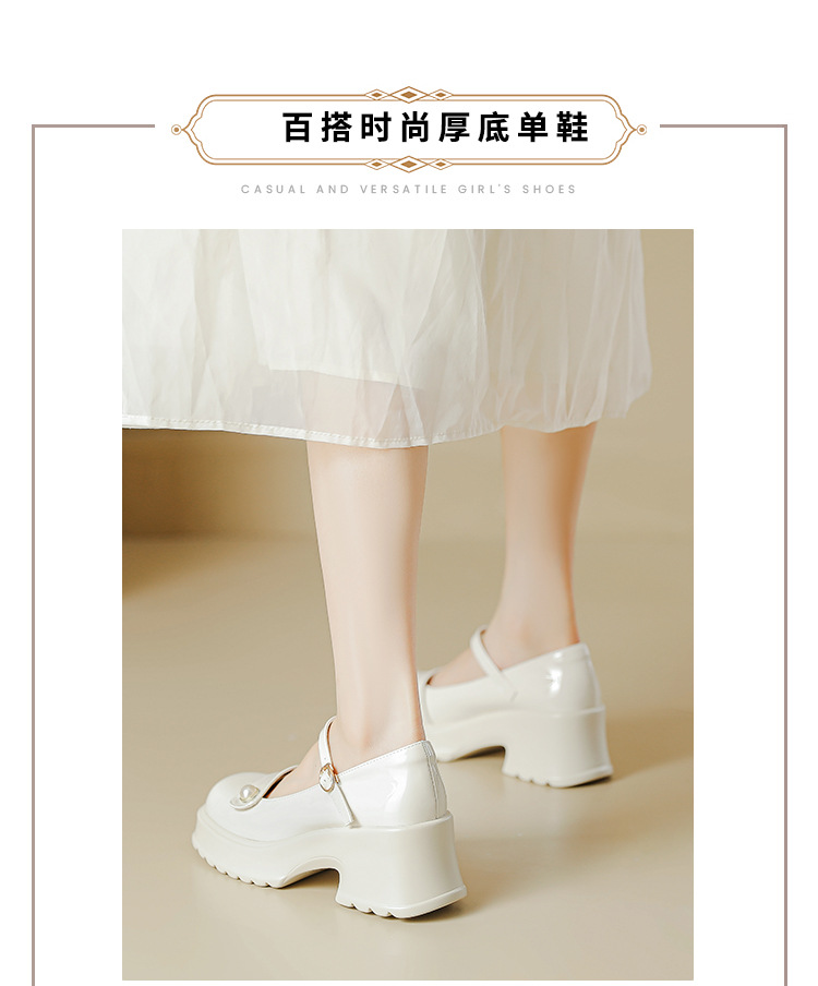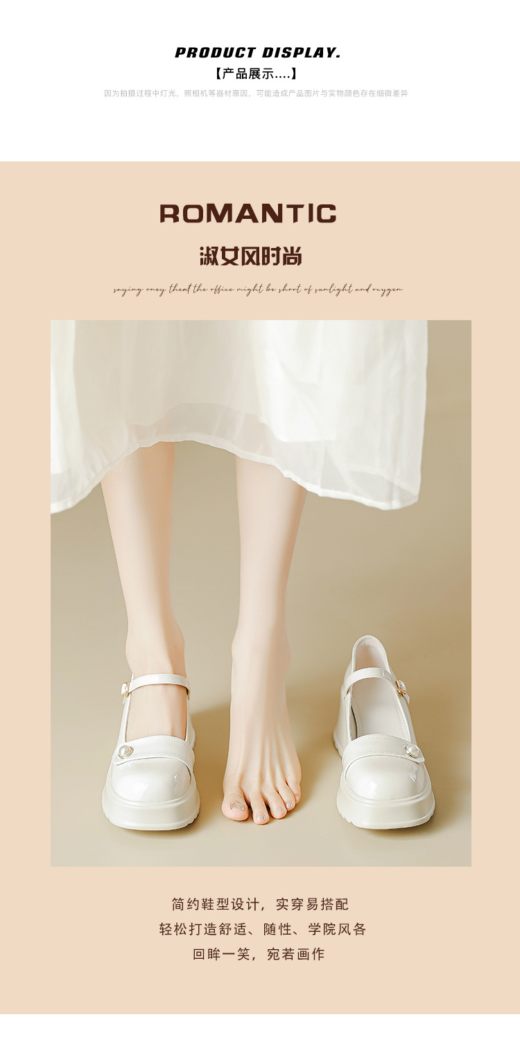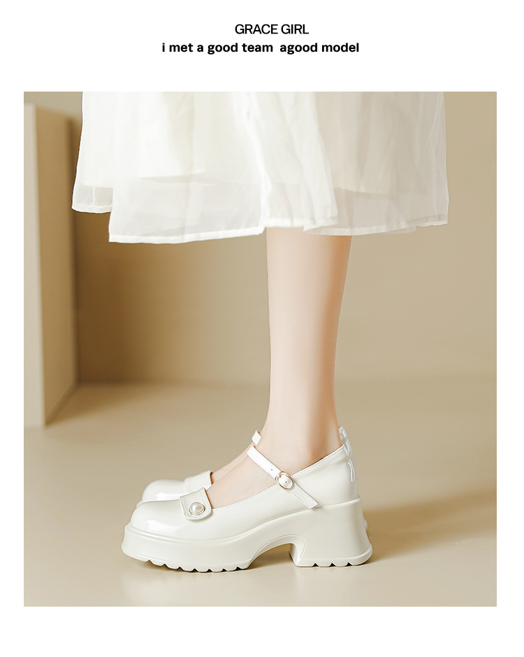 好看有设计感的甜酷玛丽珍高跟单鞋女2023新款女生厚底粗跟小皮鞋