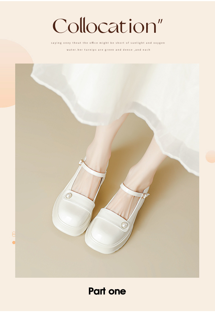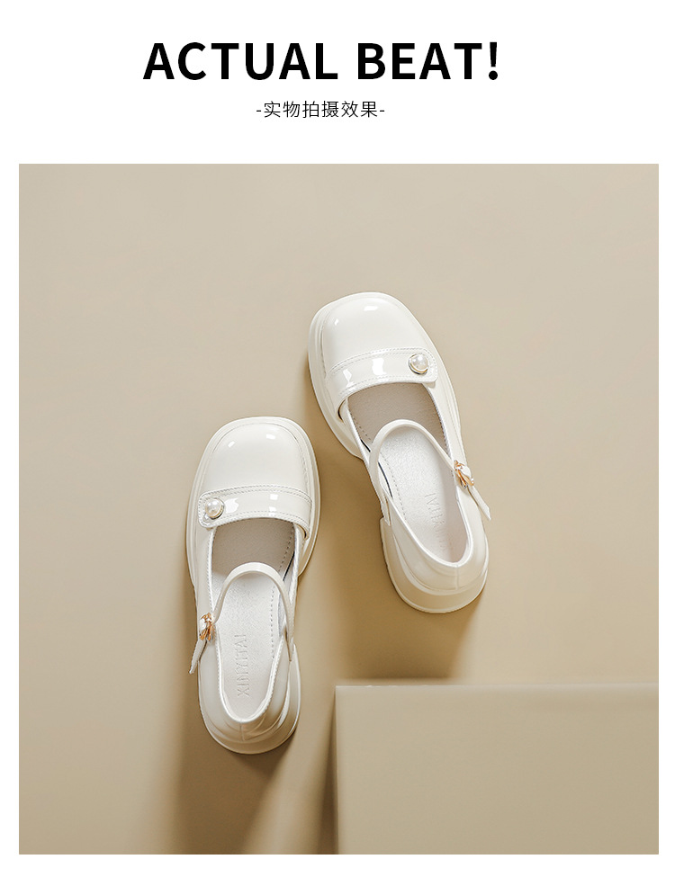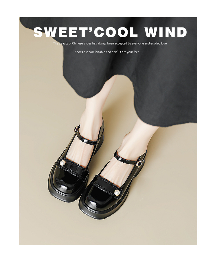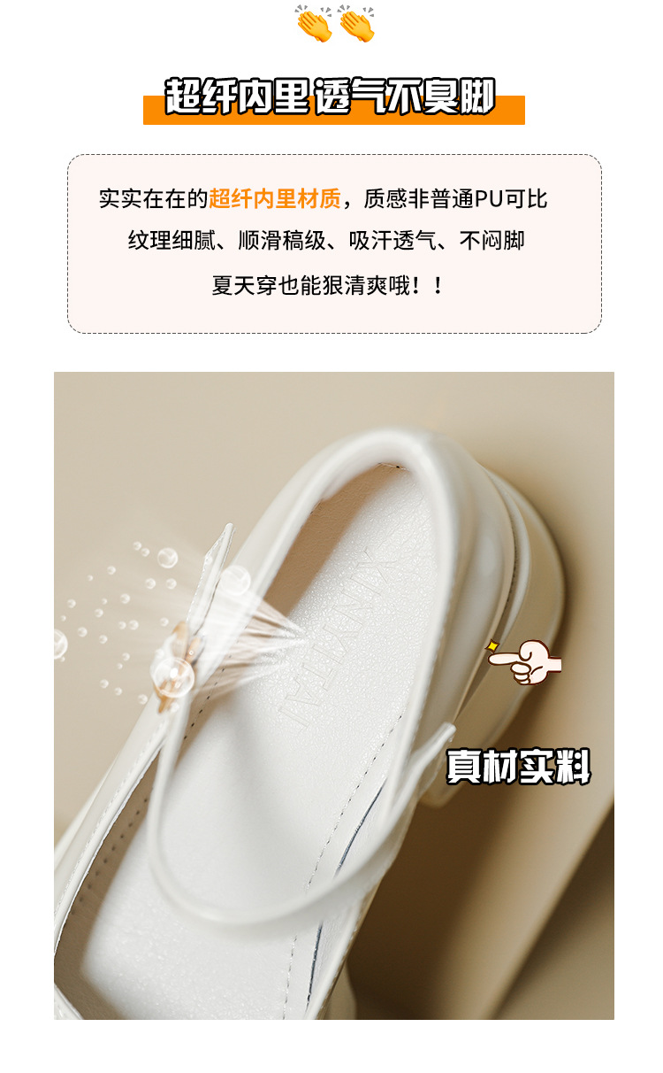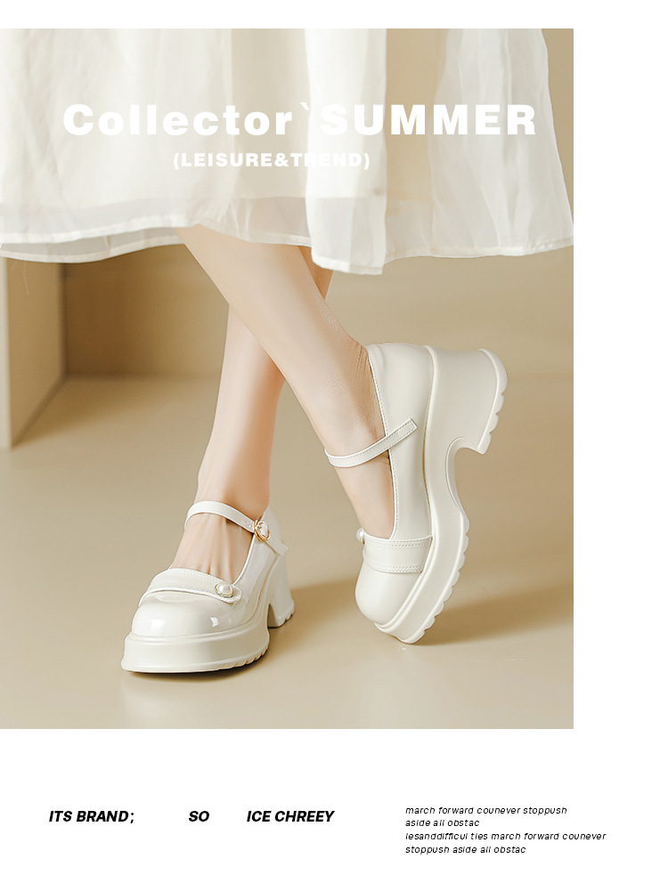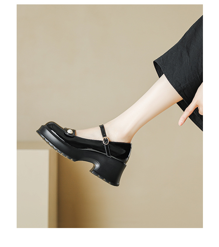 好看有设计感的甜酷玛丽珍高跟单鞋女2023新款女生厚底粗跟小皮鞋