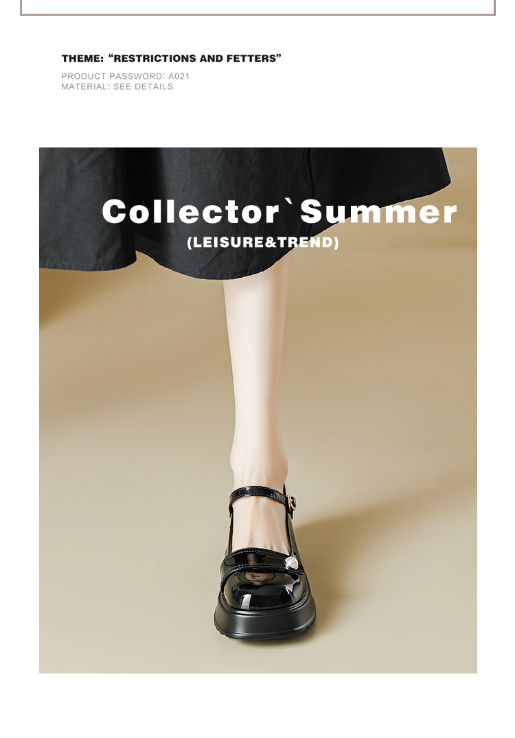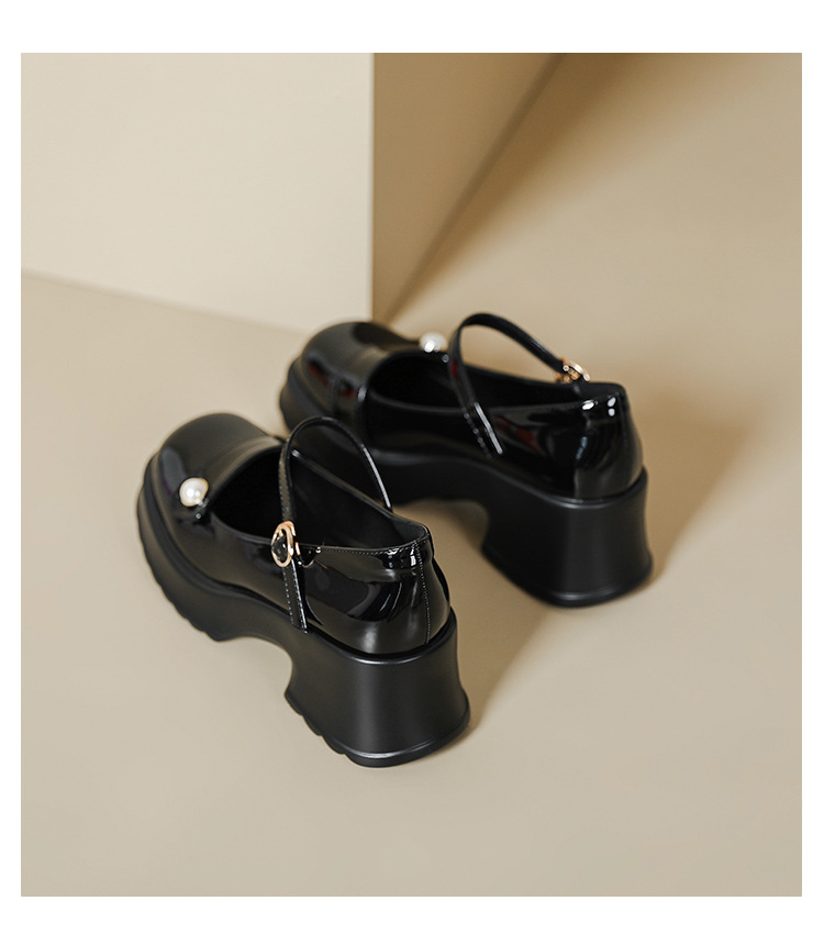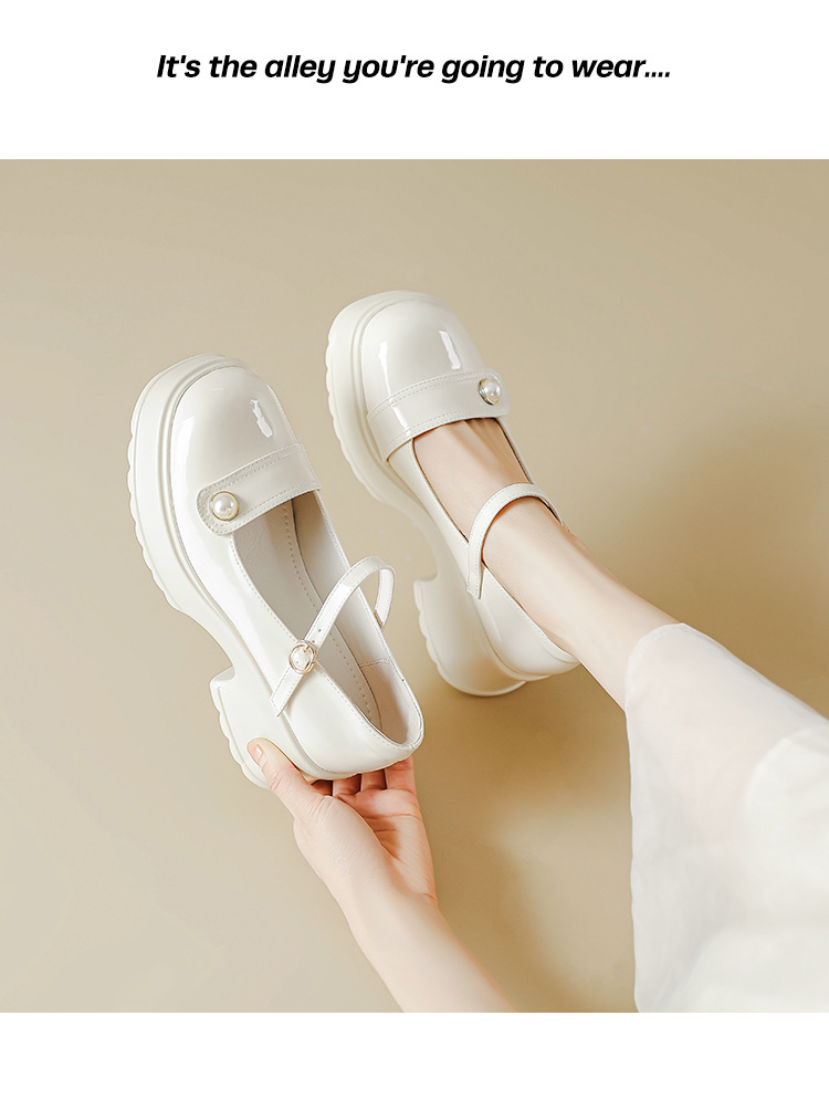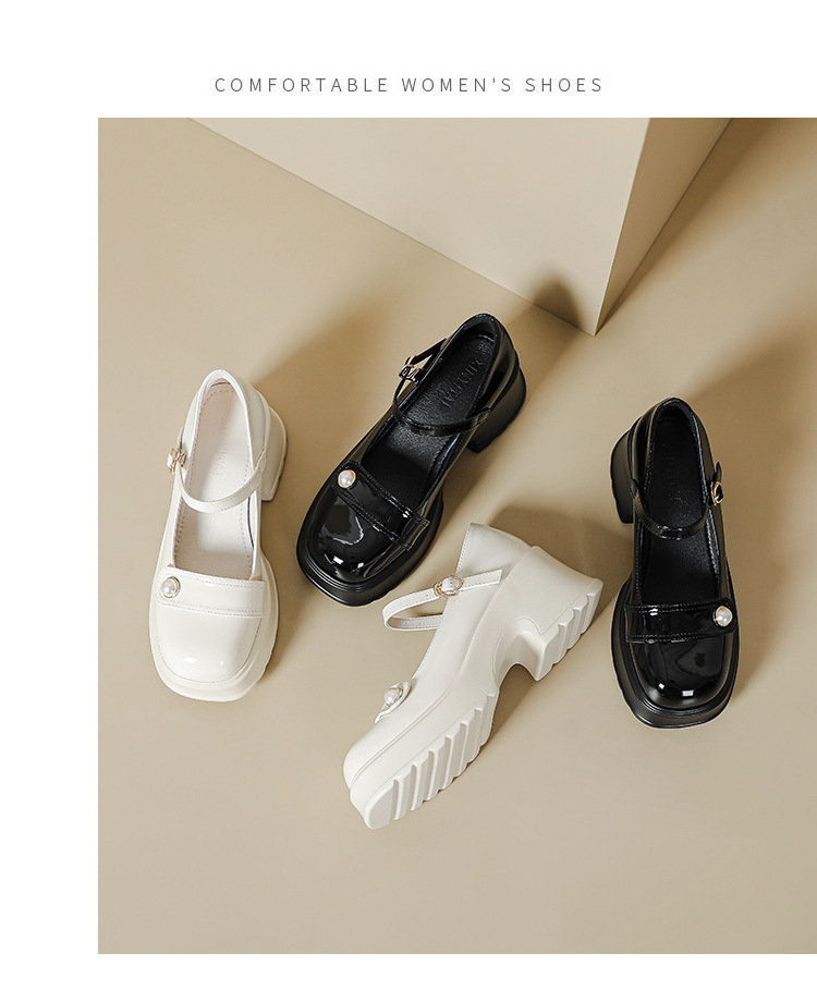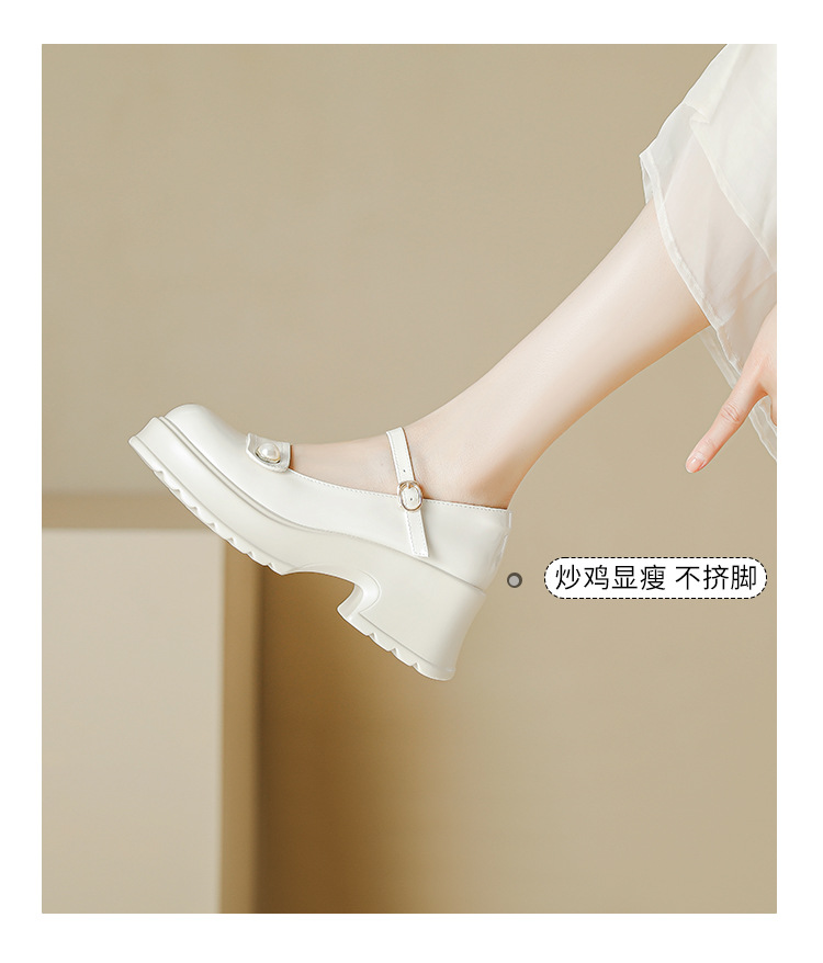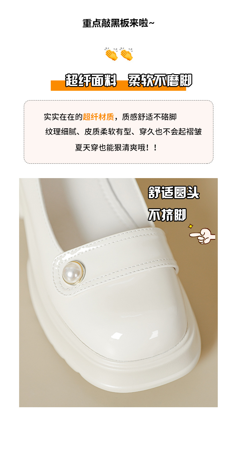好看有设计感的甜酷玛丽珍高跟单鞋女2023新款女生厚底粗跟小皮鞋