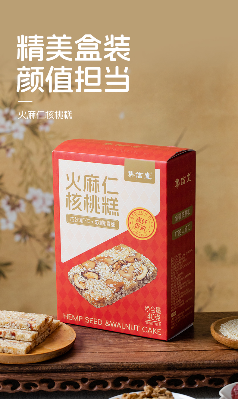 买3盒送坚果 火麻仁核桃糕 新140克/盒 A-5882 (效期26-6)集信堂