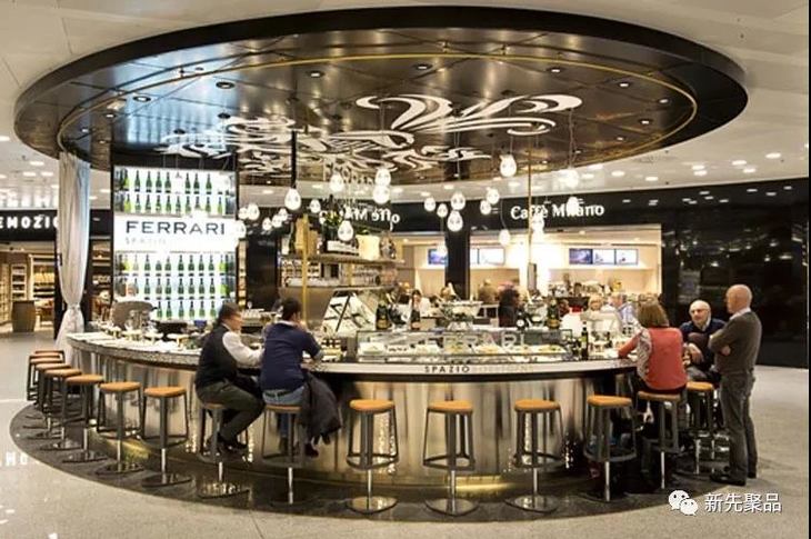 如果你经常去欧洲,在各大主要城市的机场你经常能看到法拉利的酒吧休闲区,尤其是去意大利,基本上大型的火车站、高端商场等等核心商区都能看到法拉利起泡酒的门店和酒吧。