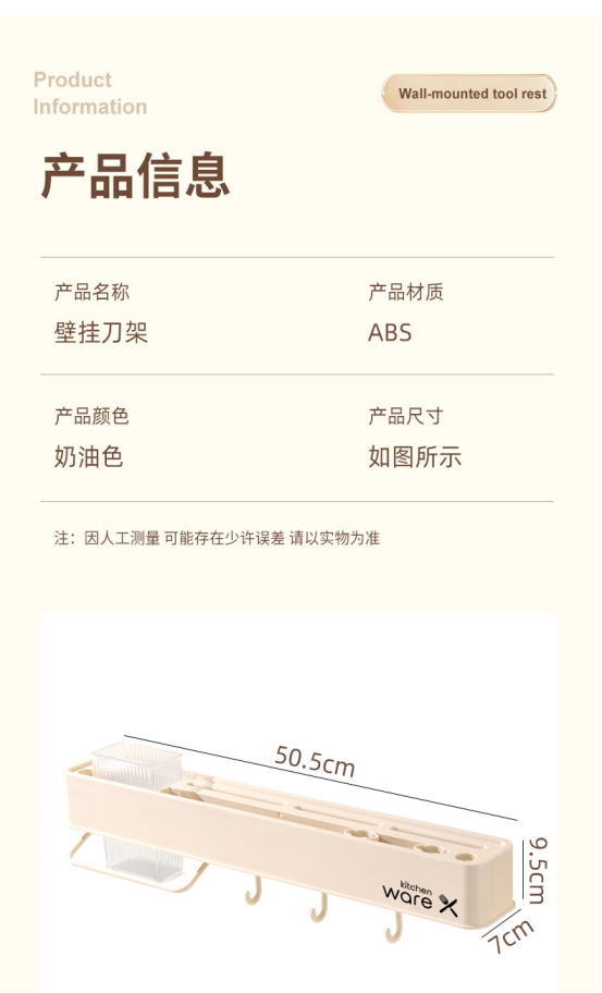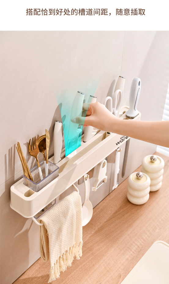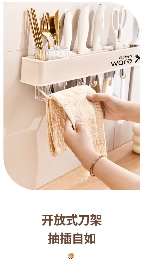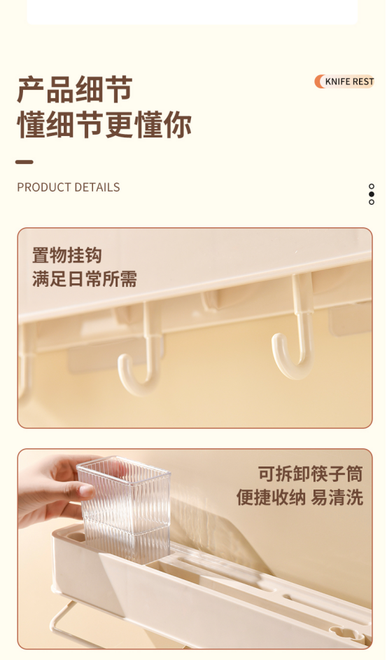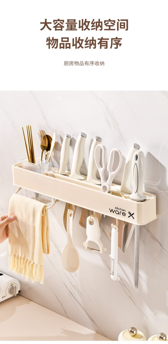 🔺多功能设计 集刀具、筷子筒、挂钩、毛巾杆于一体 🔺自带接水盘 方便实用不怕发霉 海量收纳不占位~