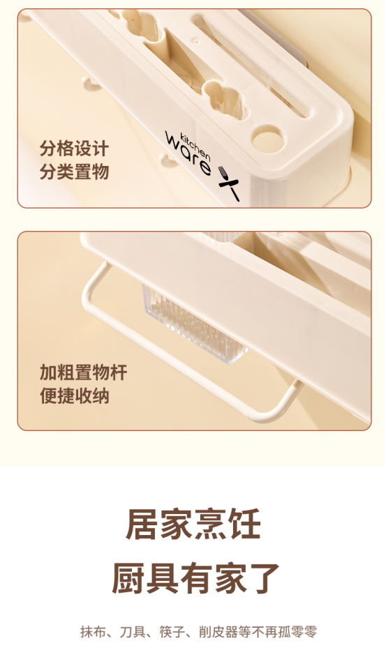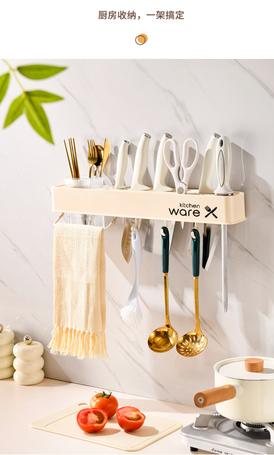 ✅多功能一体化设计 可以放筷子、饭勺、刀叉、刀具 挂锅铲、挂毛巾等 集多种厨房用具收纳于一体 节省空间的同时 让厨房更加整洁有序 所有物品都能找到属于自己的位置