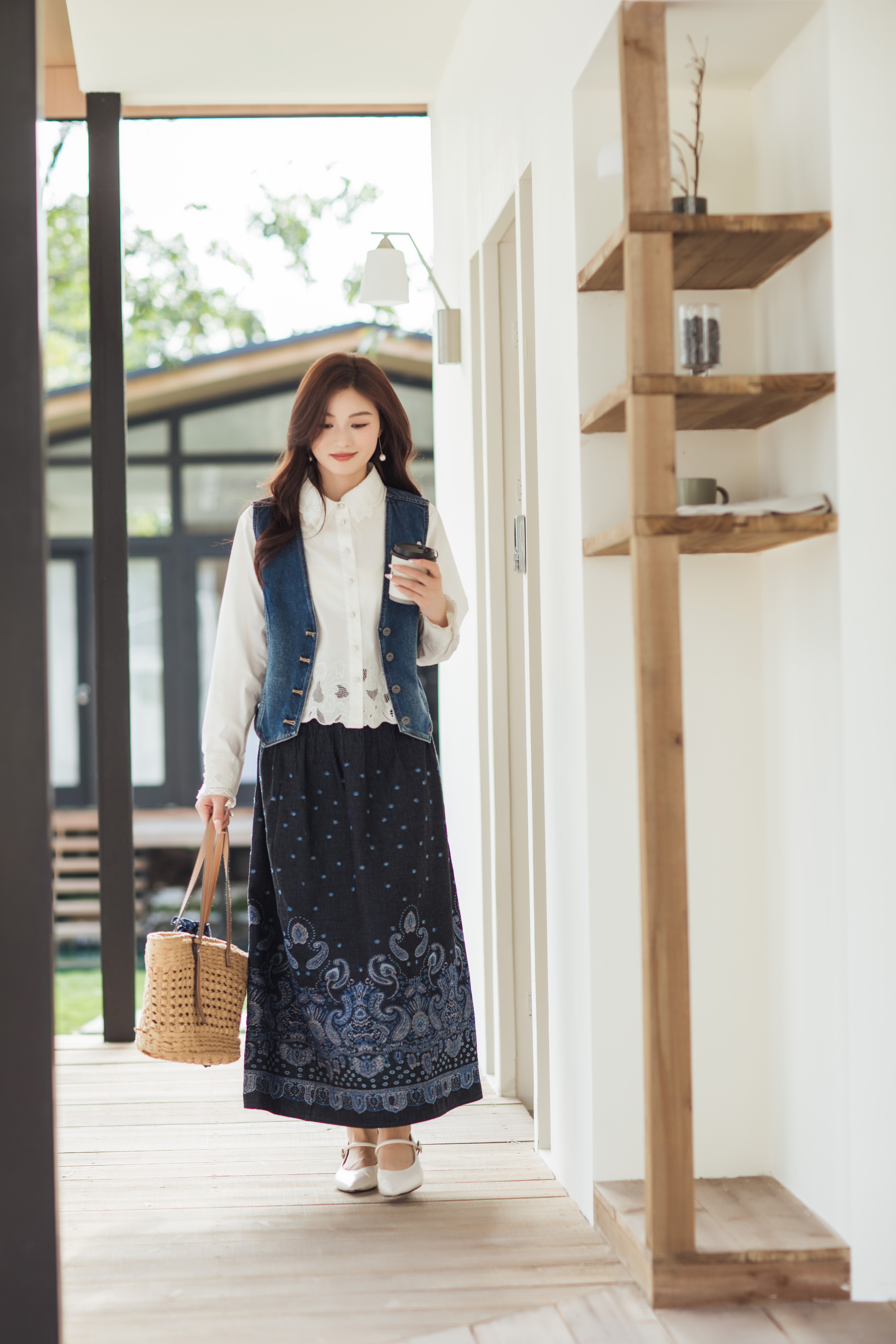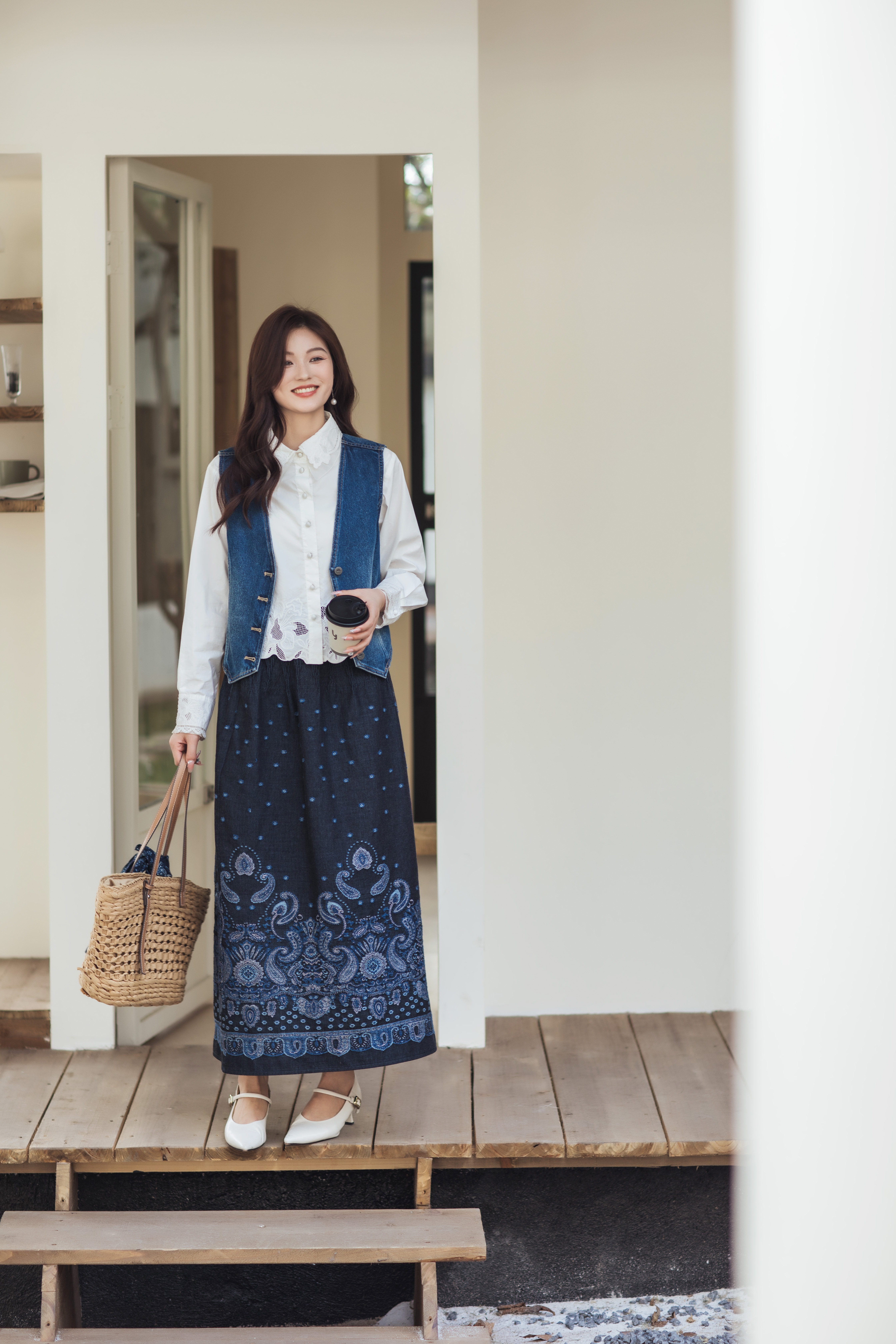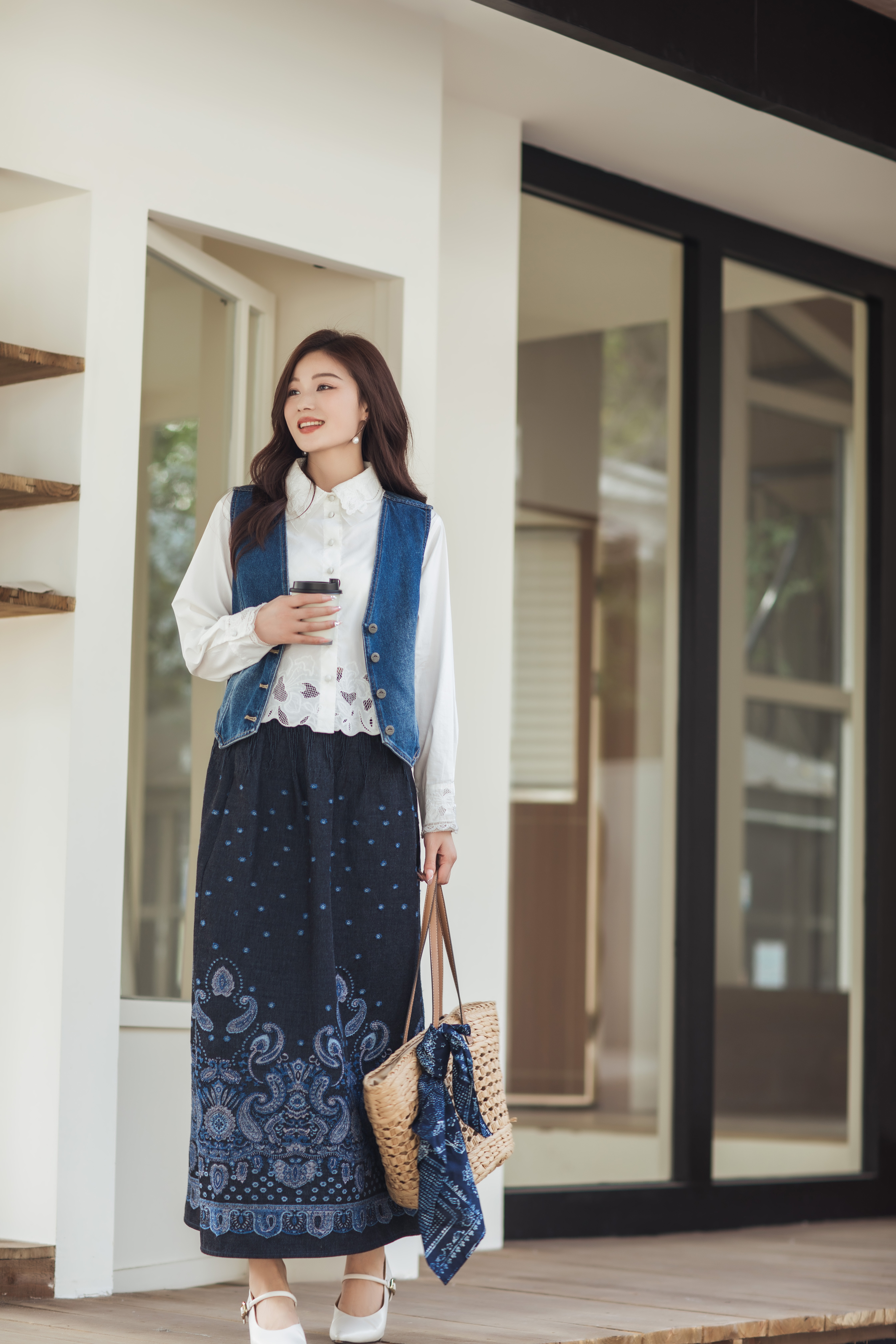 【林栖设计小店】腰果花纹|牛仔裙草木丹宁系列复古2026早春新款半身裙女1961107