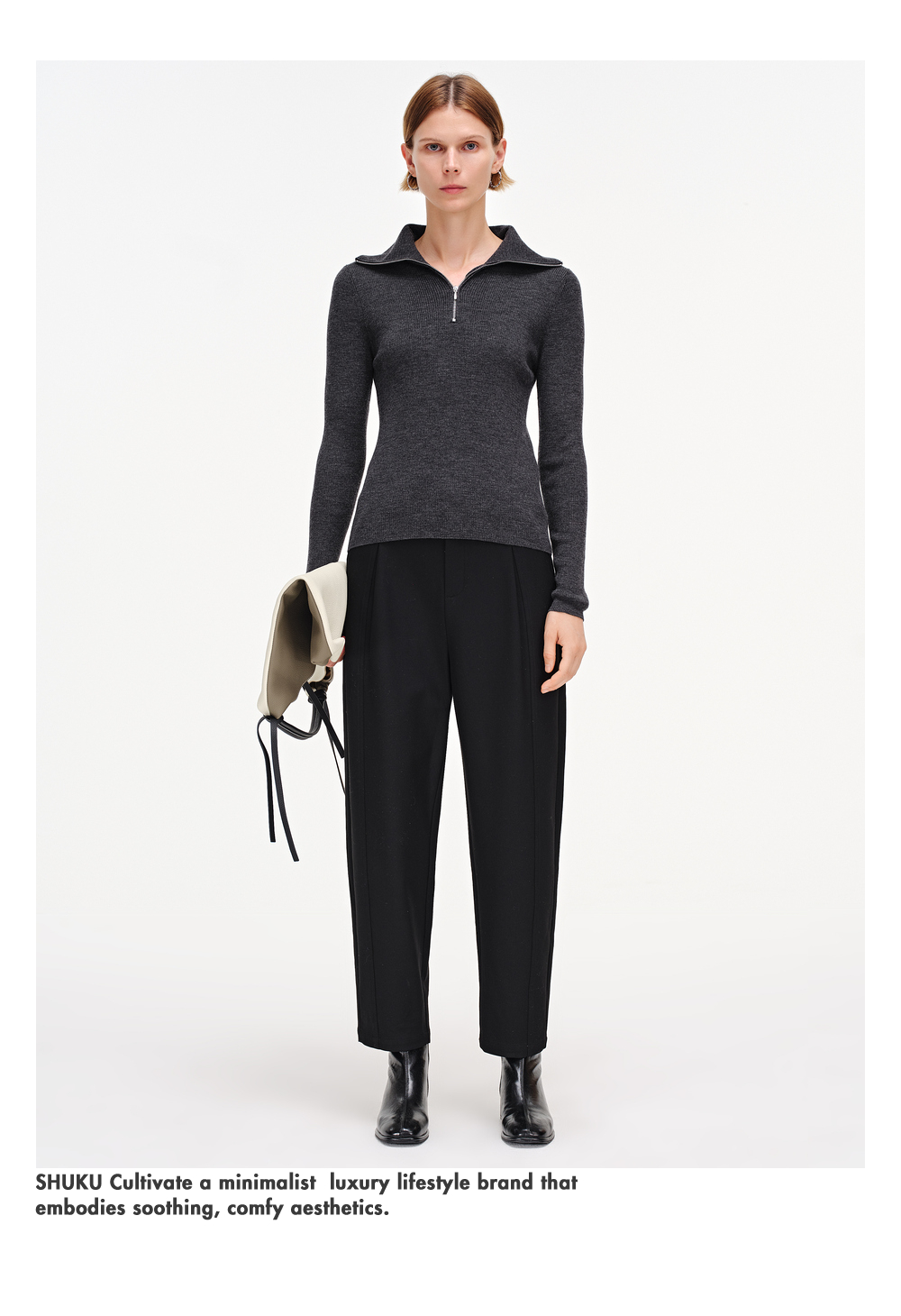 舒库长裤女秋季垂感西裤九分裤宽松锥形裤休闲裤商务通勤裤子