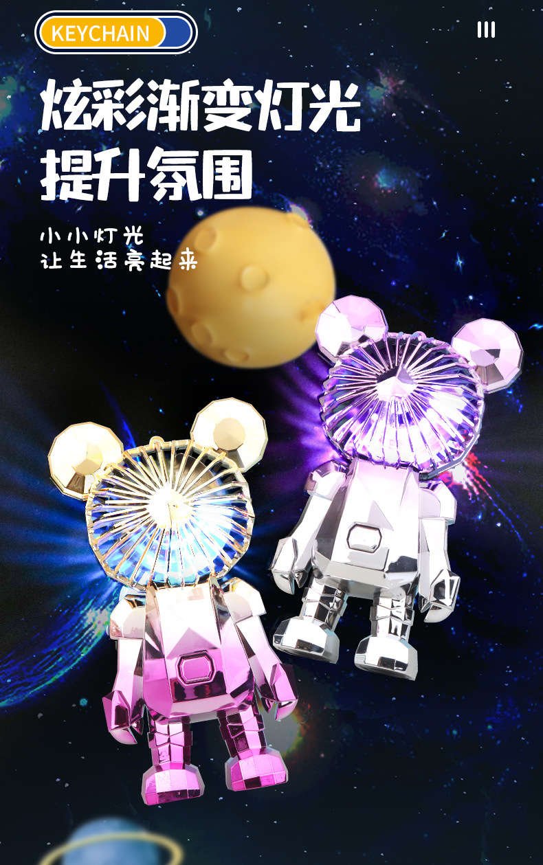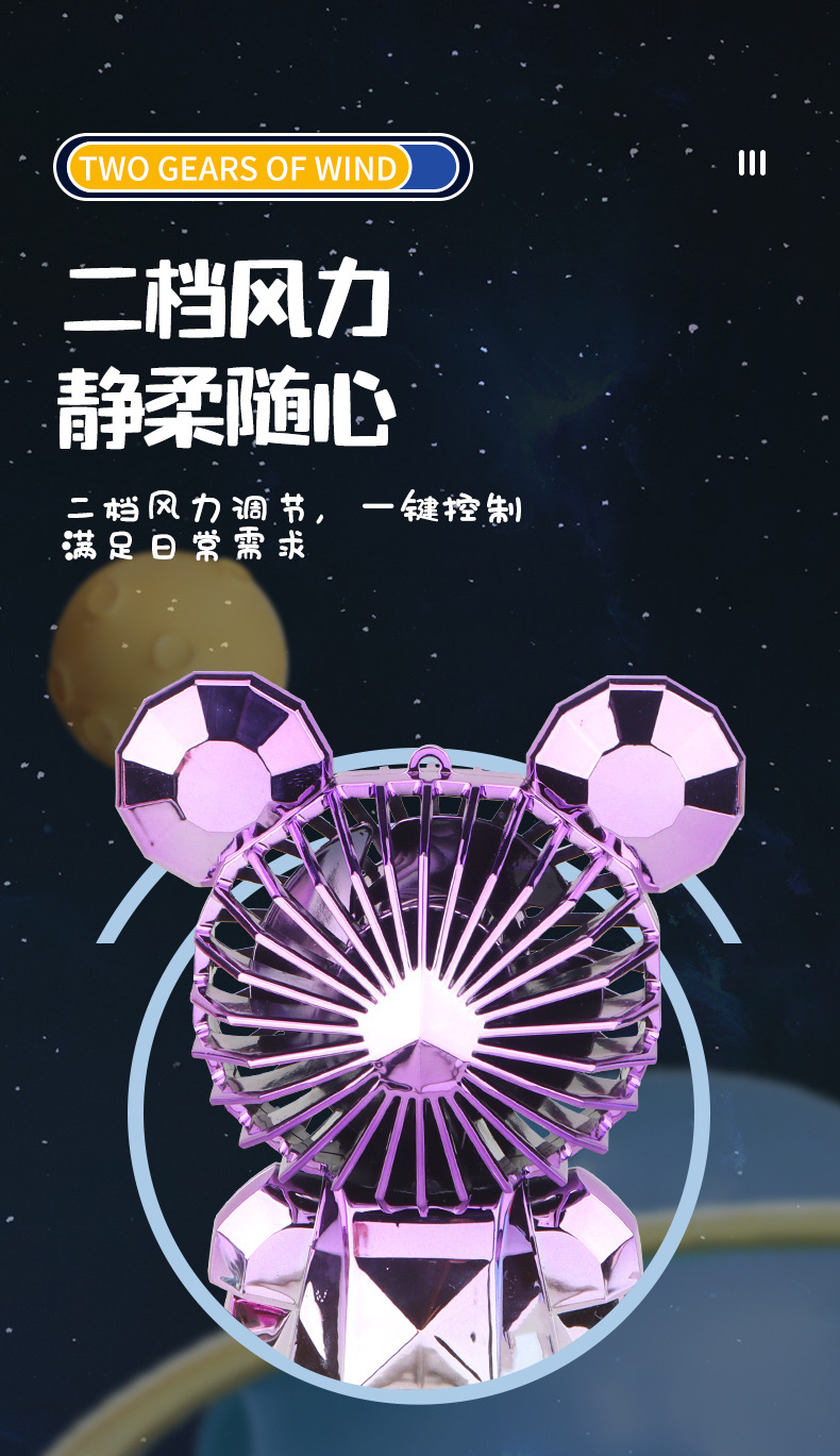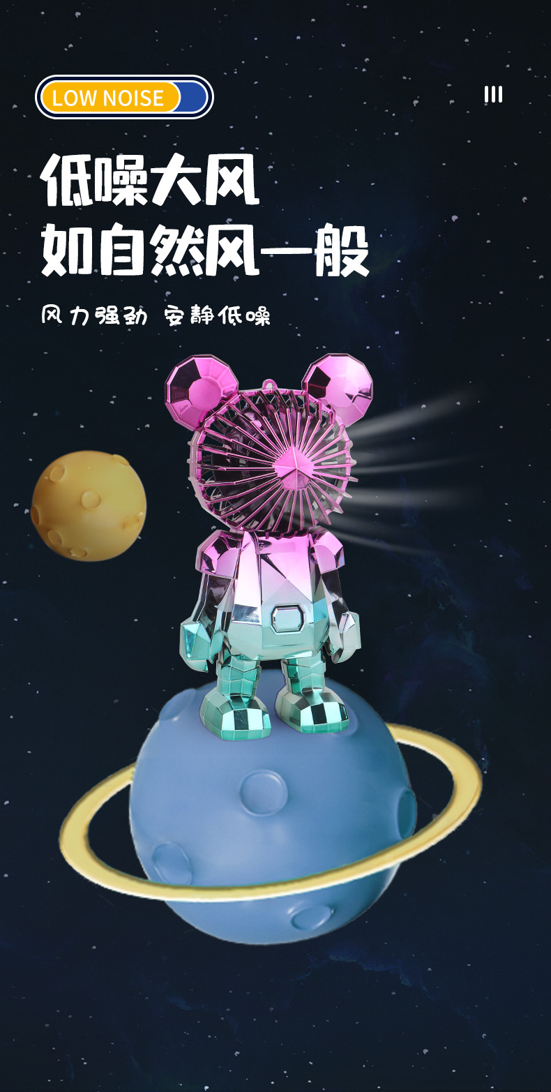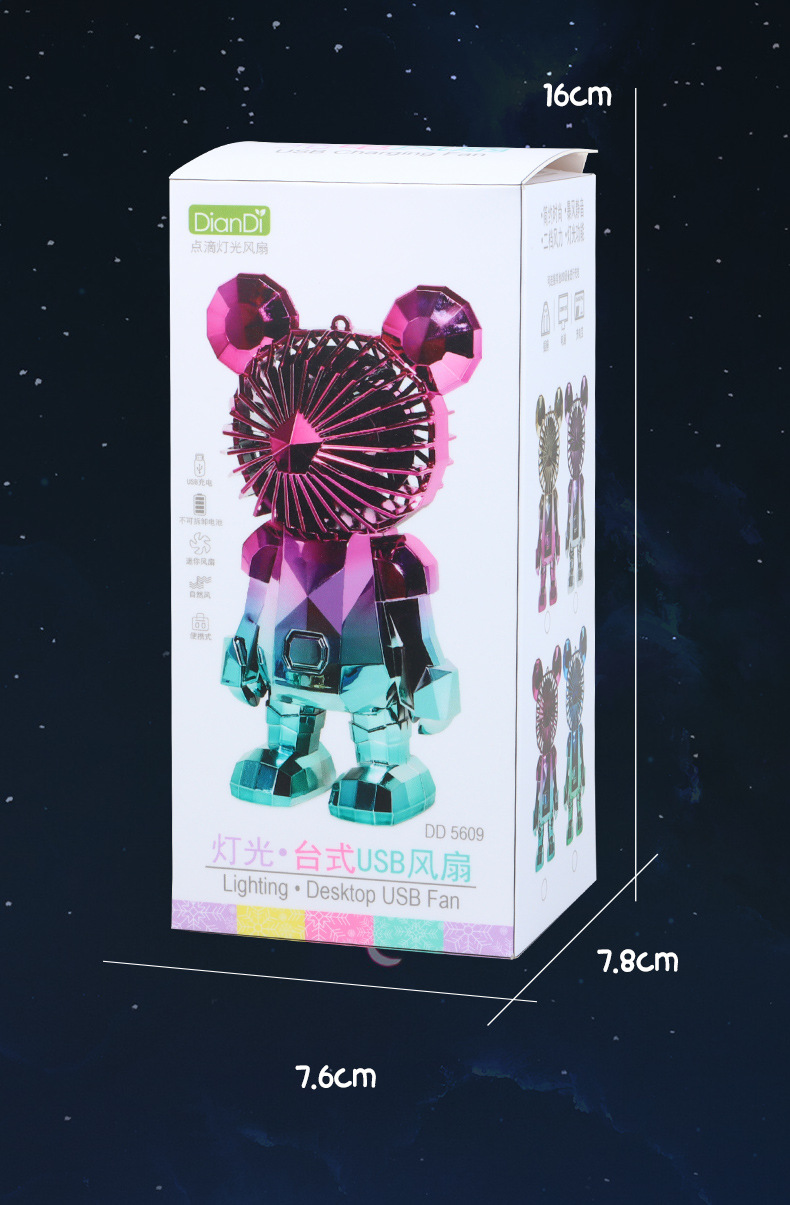 【小巧轻盈!炫彩灯光】新款暴力熊迷你手持小风扇夏季便携式USB充电风扇办公室桌面电扇。xa