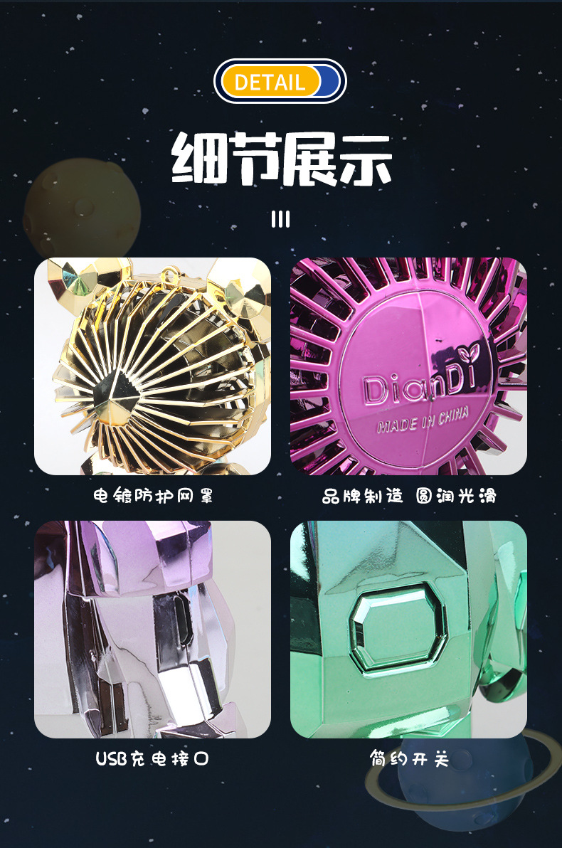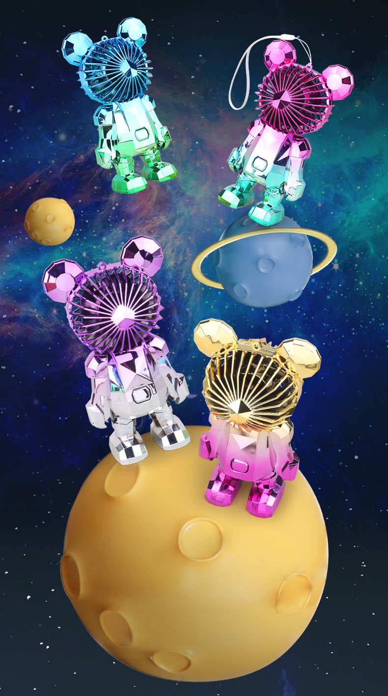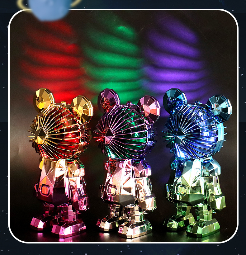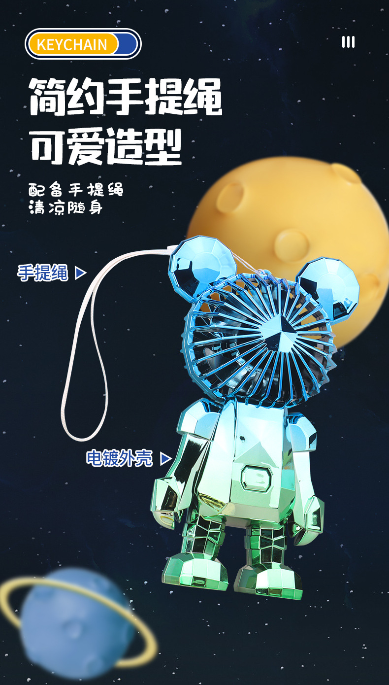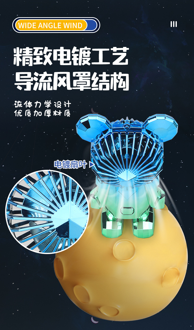 【小巧轻盈!炫彩灯光】新款暴力熊迷你手持小风扇夏季便携式USB充电风扇办公室桌面电扇。xa