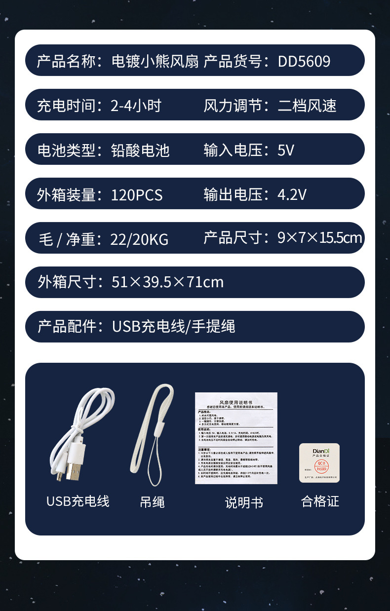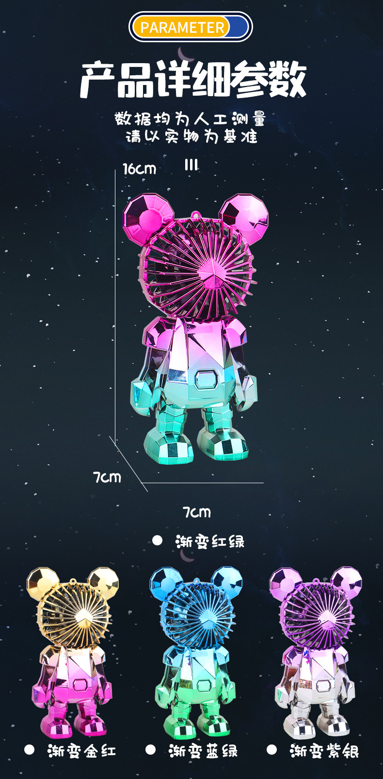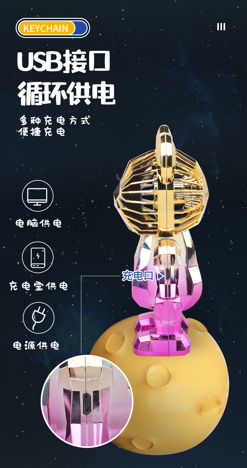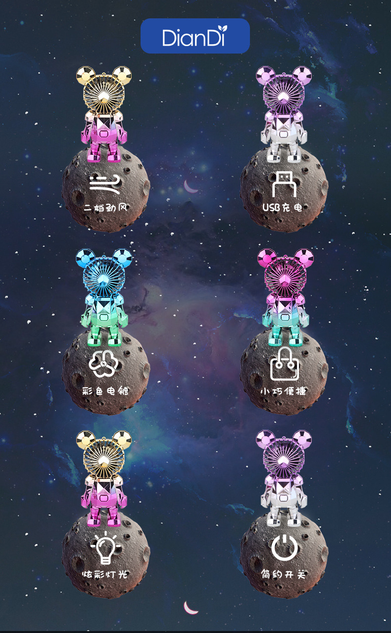 【小巧轻盈!炫彩灯光】新款暴力熊迷你手持小风扇夏季便携式USB充电风扇办公室桌面电扇。xa