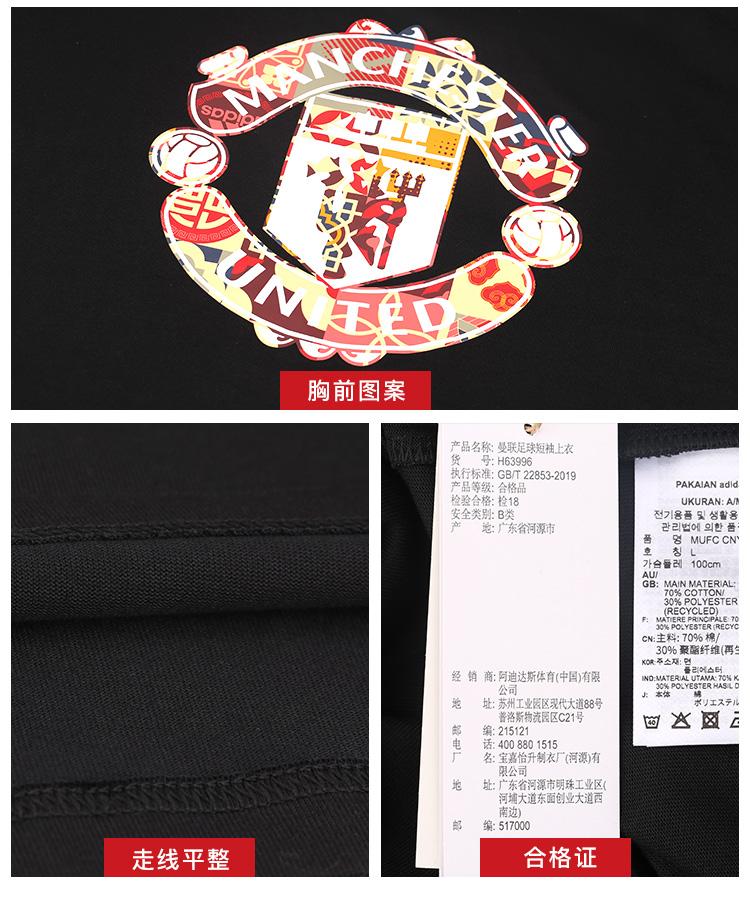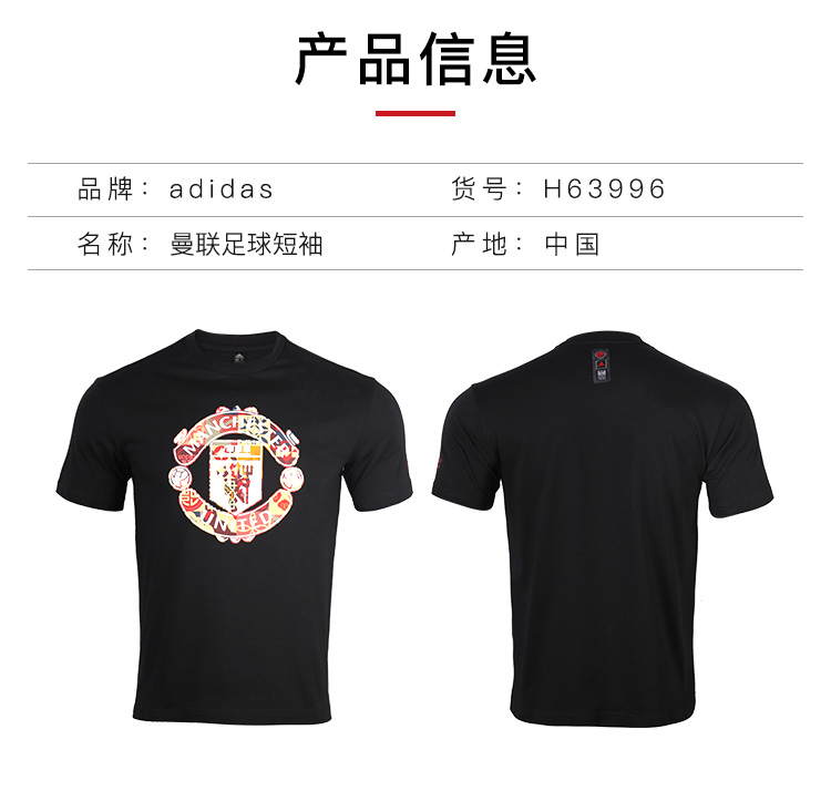 ADIDAS/阿迪达斯曼联足球运动短袖T恤成人男H63996