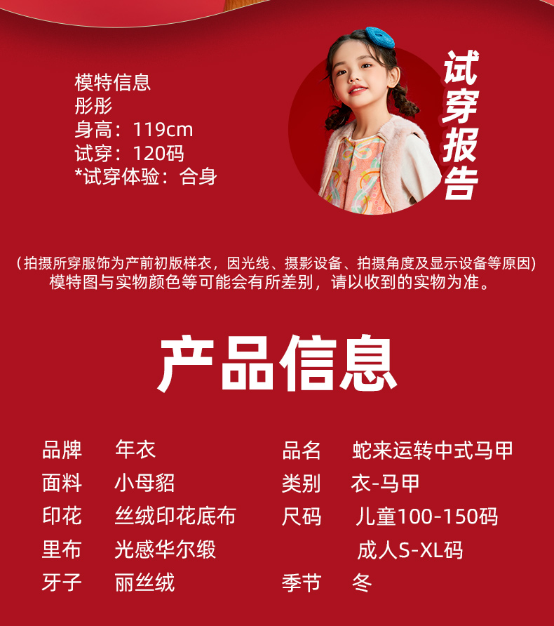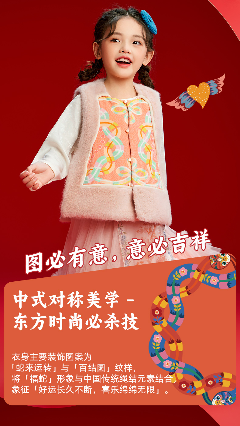 【董璇同款】年衣童装亲子款儿童马甲唐装冬款女童国风新中式马夹蛇来运转中式马甲