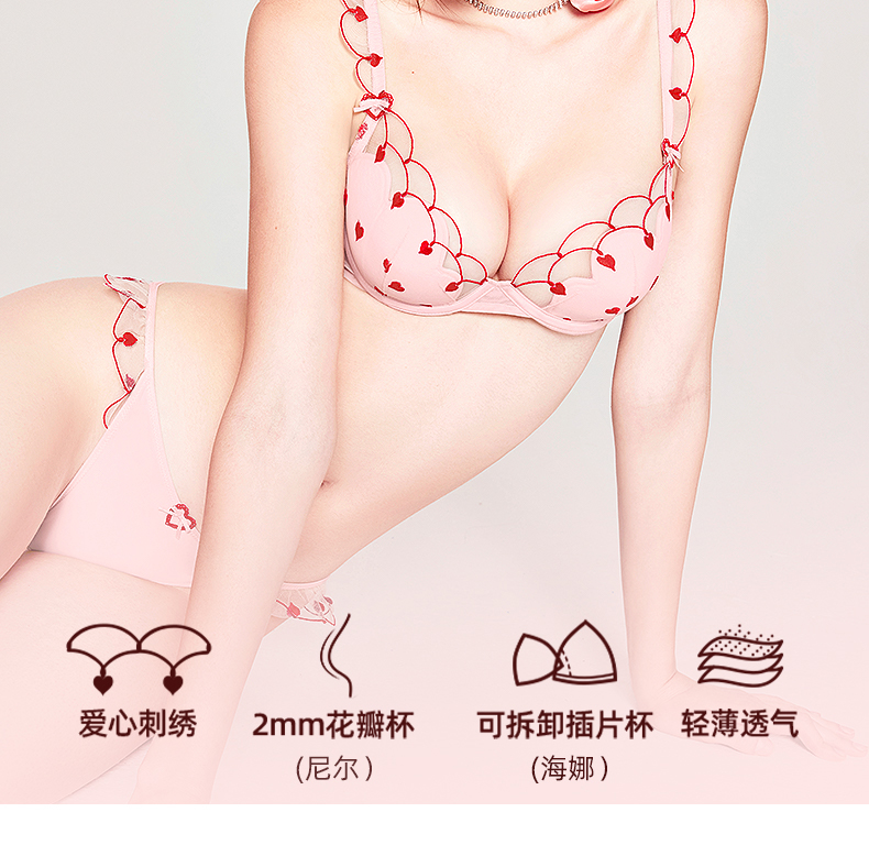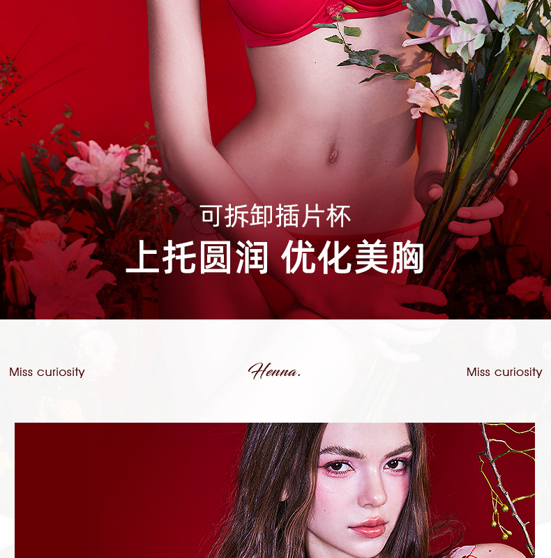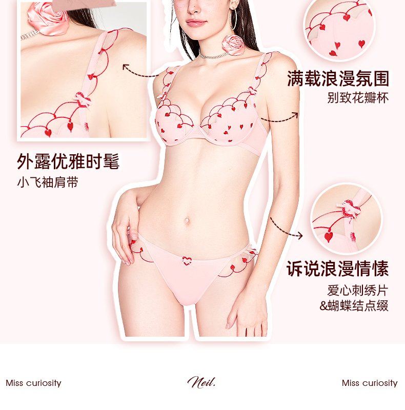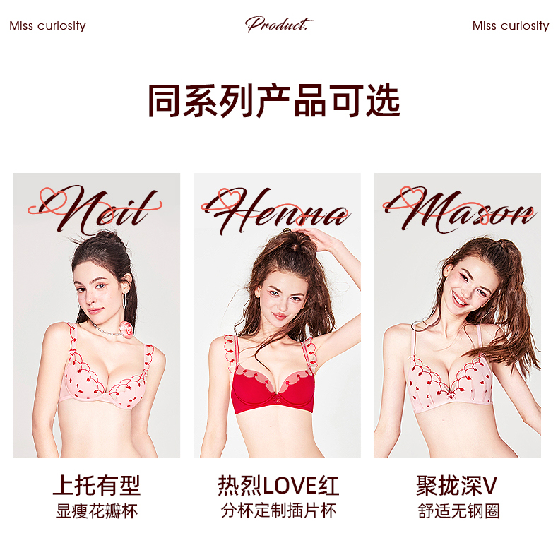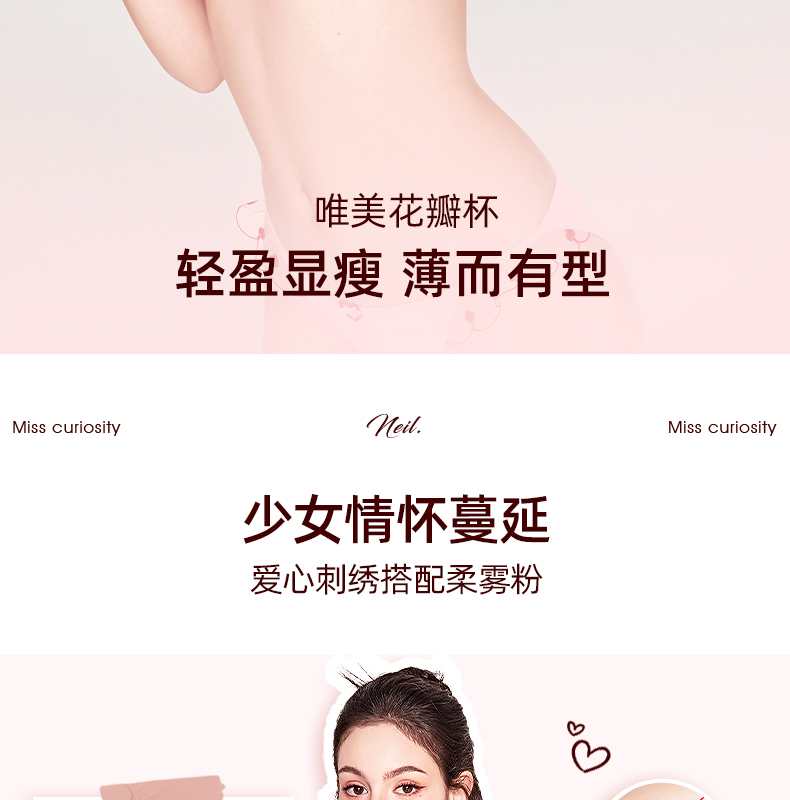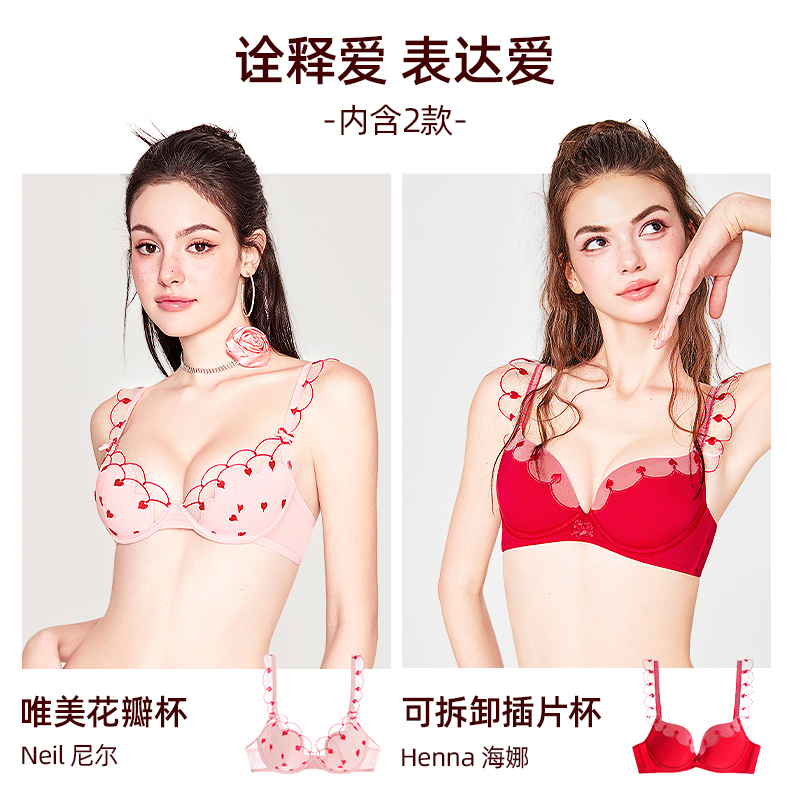 好奇蜜斯性感内衣女纯欲小胸聚拢蕾丝薄文胸罩套装大胸显小防下垂 尼尔、海娜