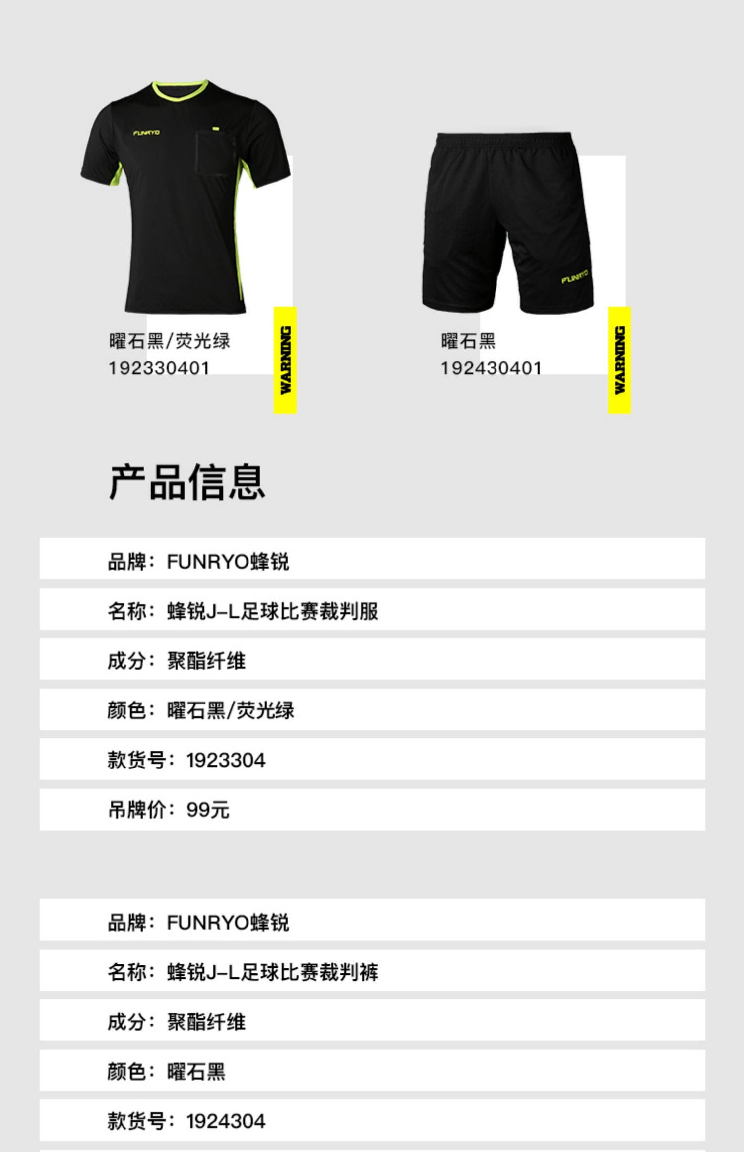 FUNRYO 蜂锐足球比赛裁判短裤 192430401 曜石黑