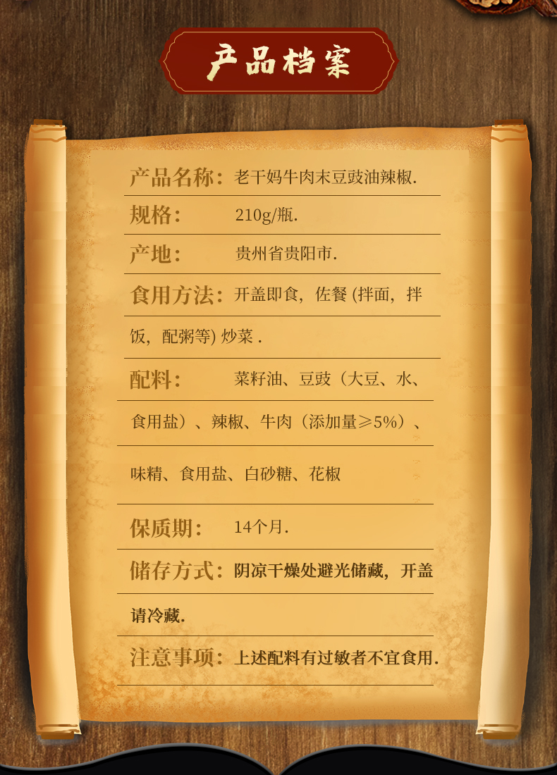 老干妈 精制牛肉末 豆豉油辣椒 210g/瓶