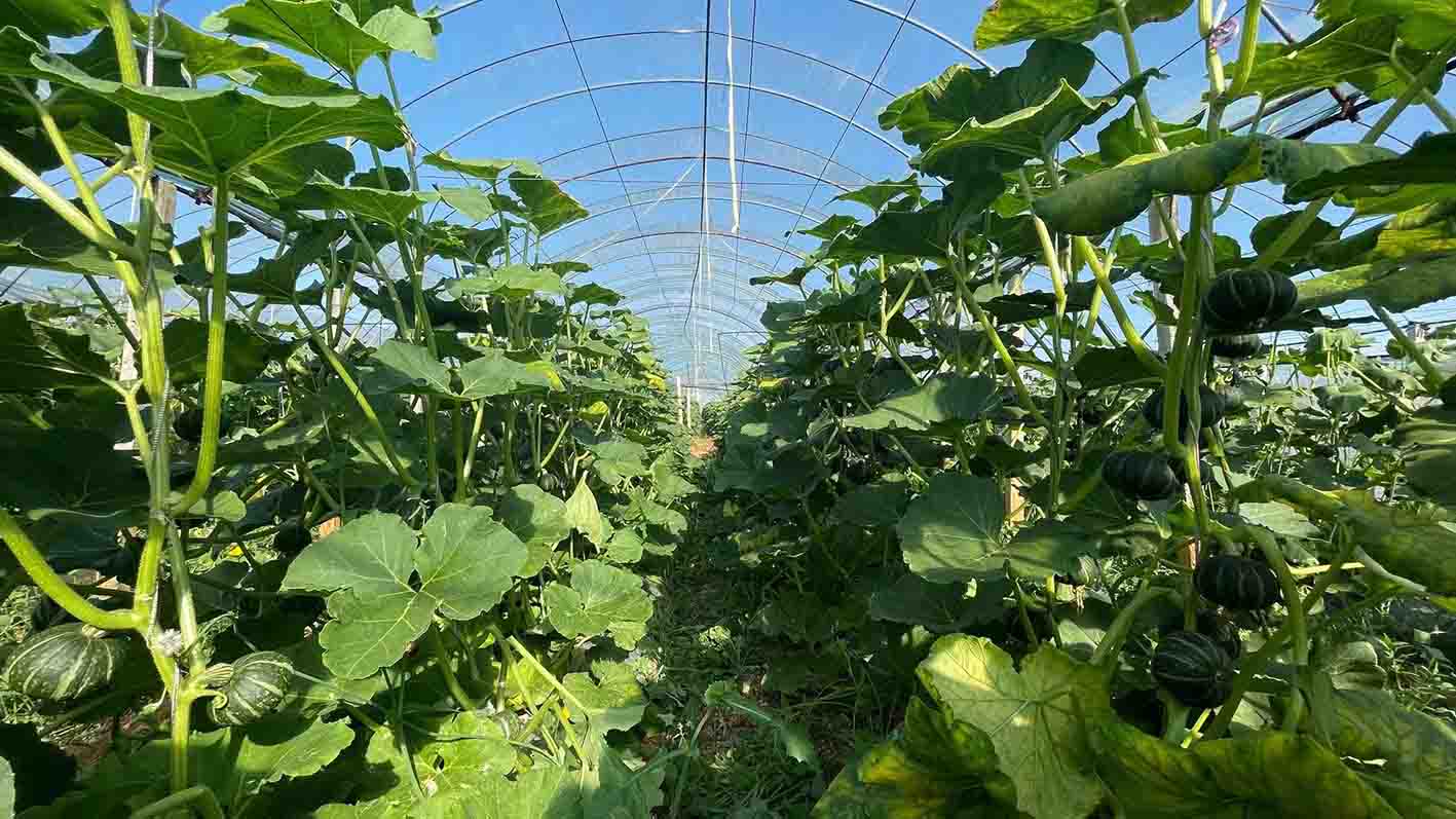7.规范种植:所有产区均采用设施化立架栽培,每棵藤只留3~4颗瓜且不留二茬瓜,南瓜足月采摘,无阴暗面,商品性好。