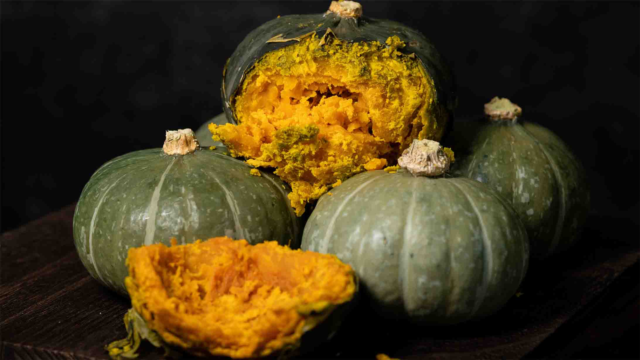①叁色栗栗南瓜刚采摘时,墨绿色,高粉低甜,统一在恒温仓糖化将近一个月才适宜食用;