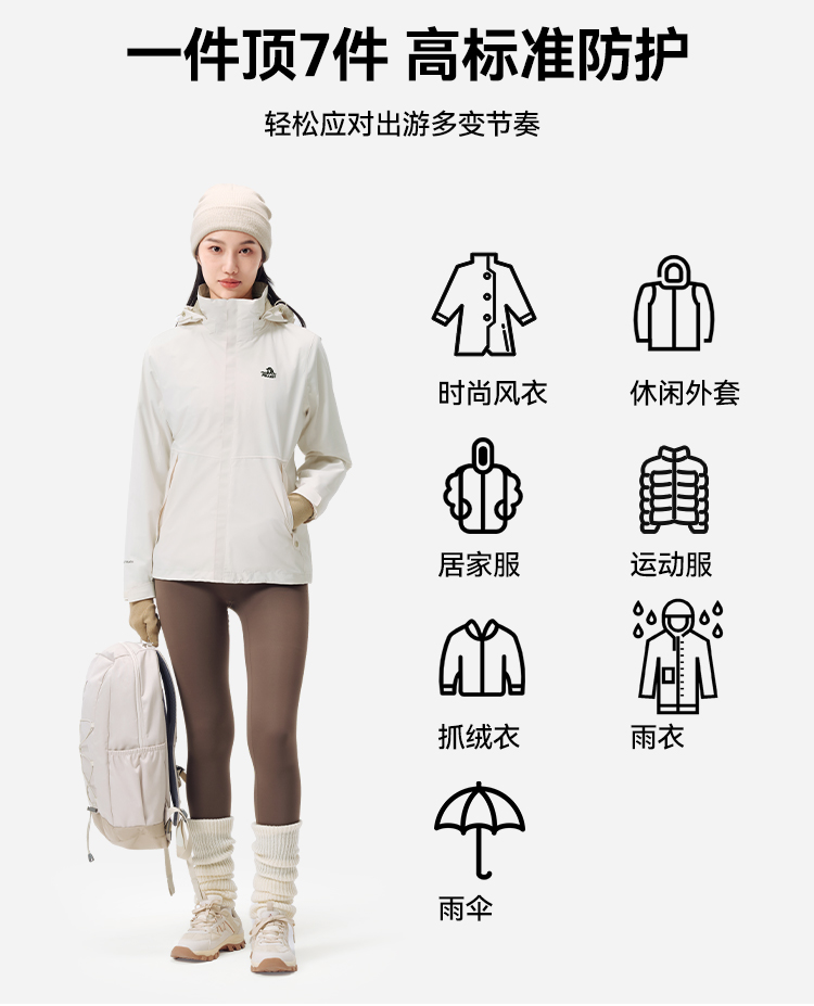 伯希和户外冲锋衣女新款三合一抓绒内胆防风防水徒步登山服外套男