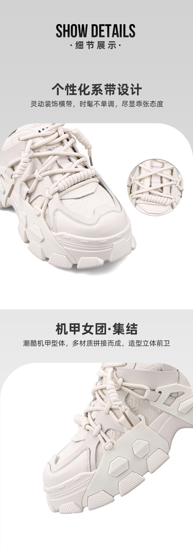 Safiya索菲娅机甲新潮绑带网面老爹鞋2022秋新款云感轻盈运动鞋SF23112409