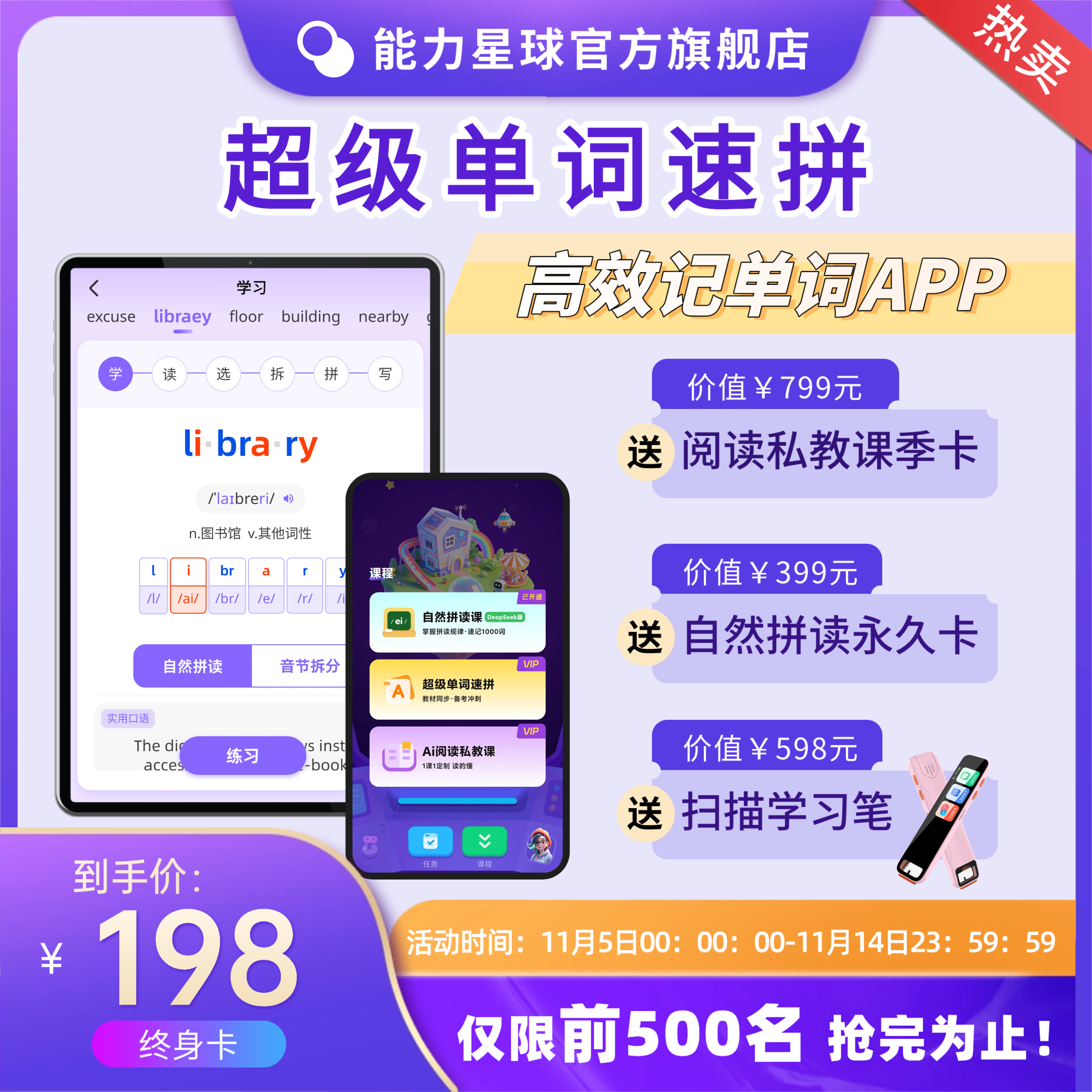 【能力星球】超级单词速拼 AI智能背单词神器 单词速记暑假预复习英语自然拼读