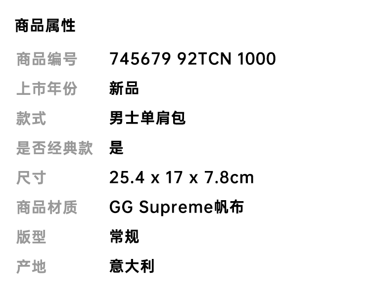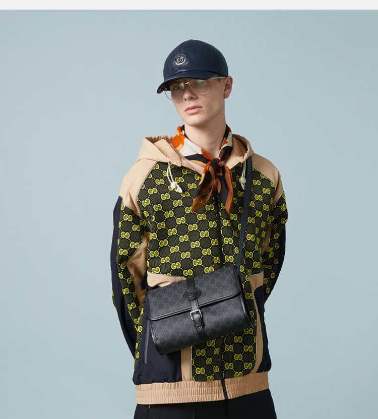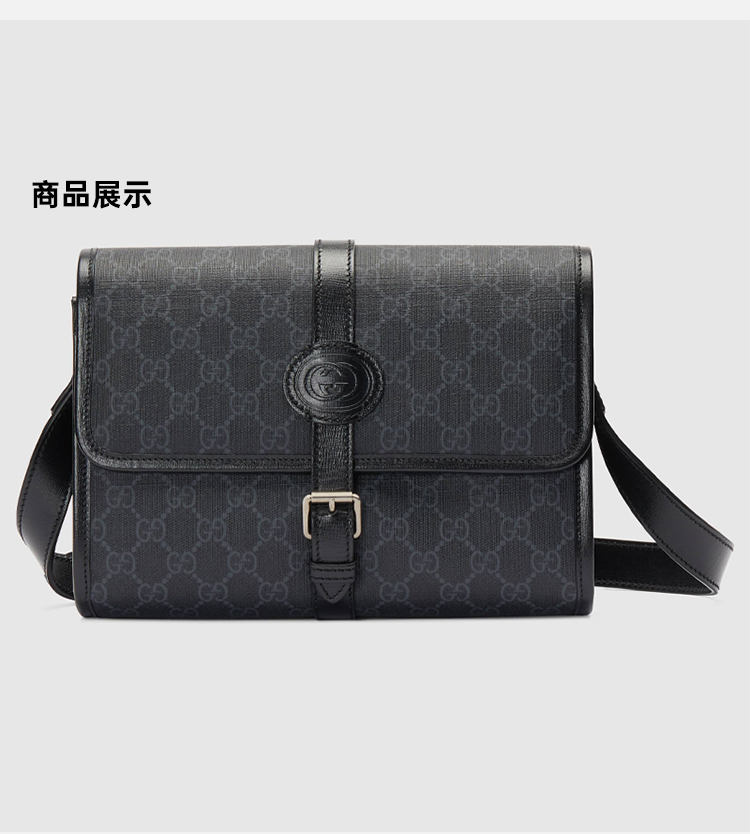 GUCCI 古驰 男士饰互扣式双G印花GG邮差包 黑色 745679 92TCN 1000