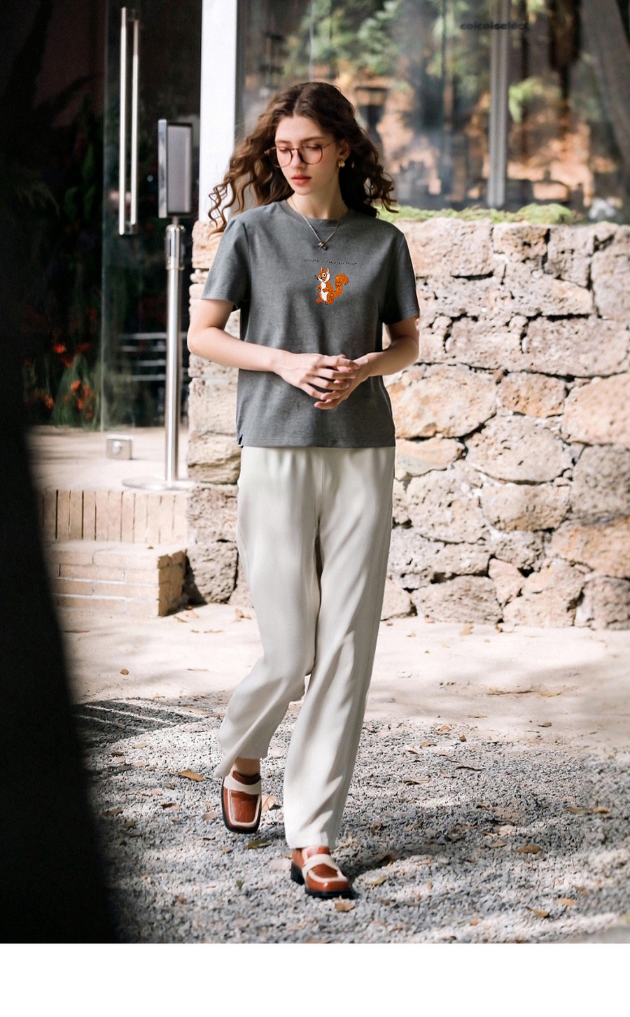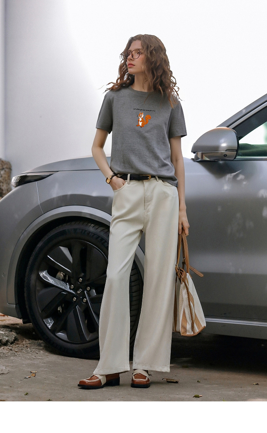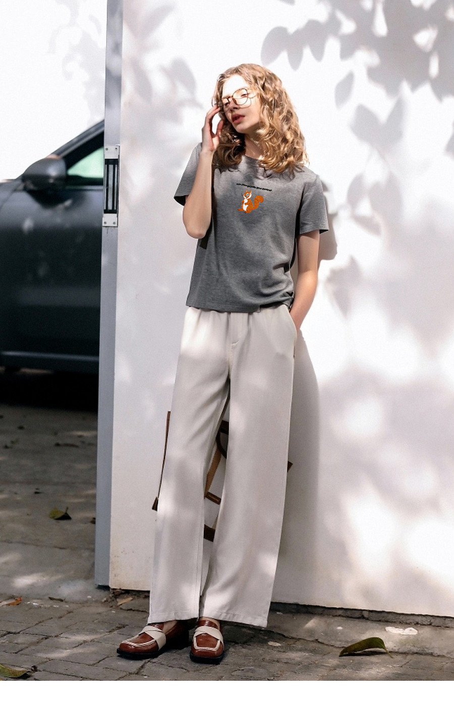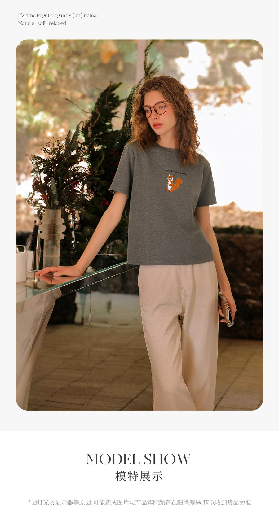 欧芮儿2026年新款夏季字母绣花设计上衣灰色圆领简约休闲短袖T恤