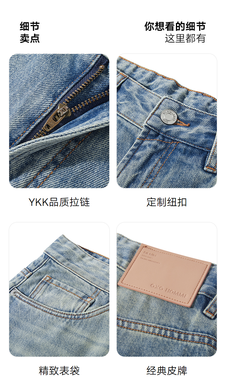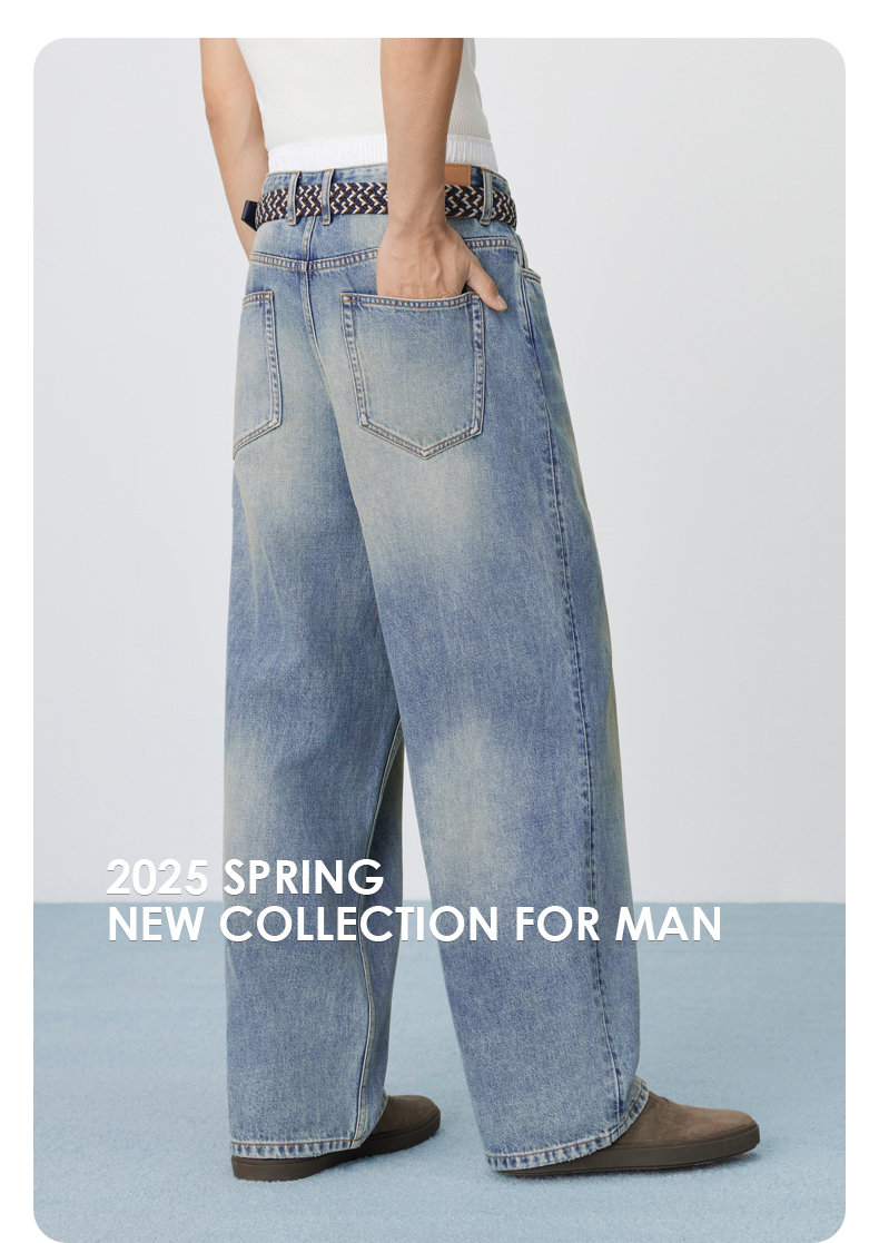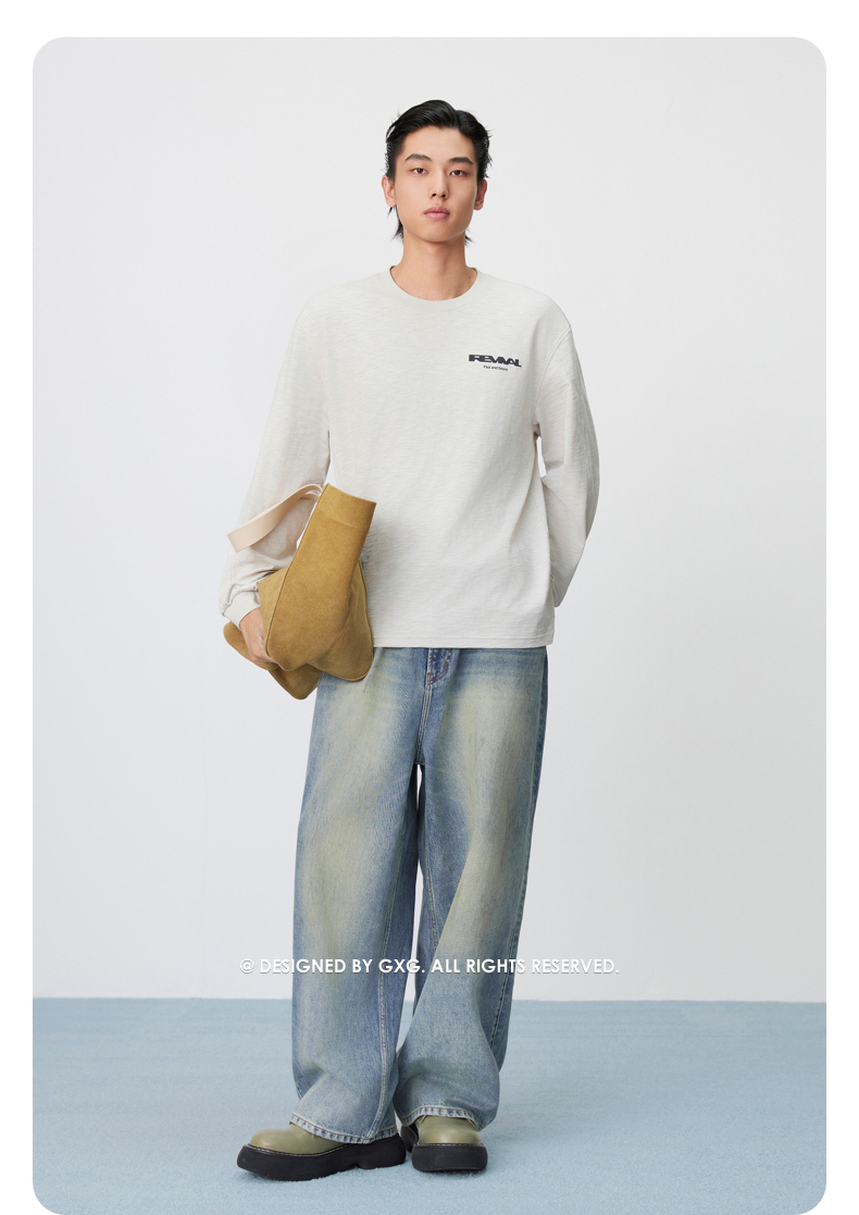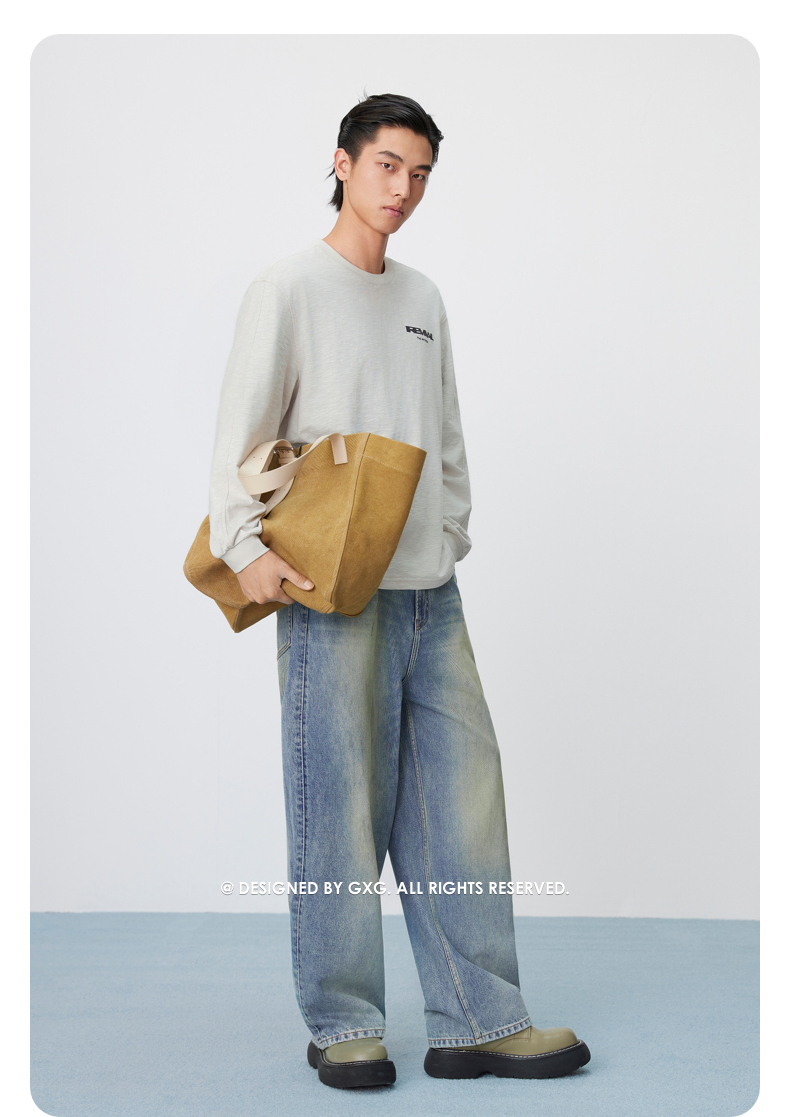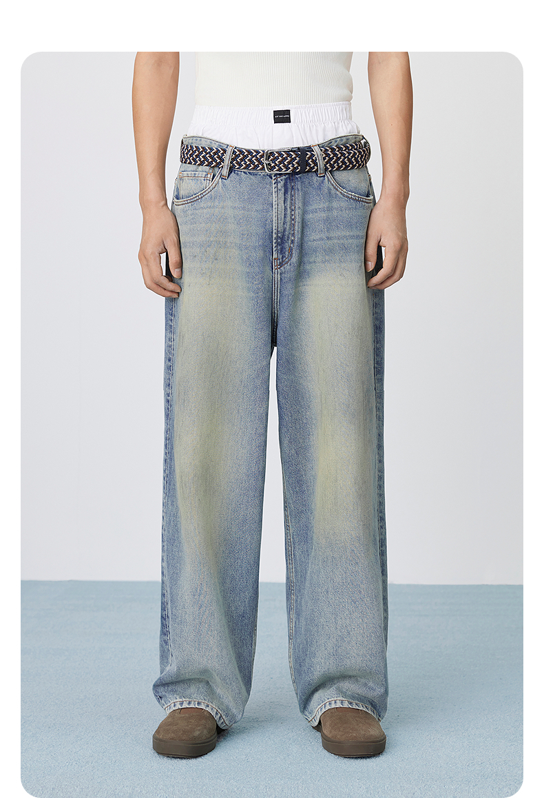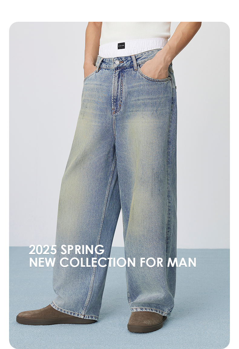 GXG男装 宽松脏脏裤牛仔裤黄泥染长裤潮流时尚男裤 2025春季热卖
