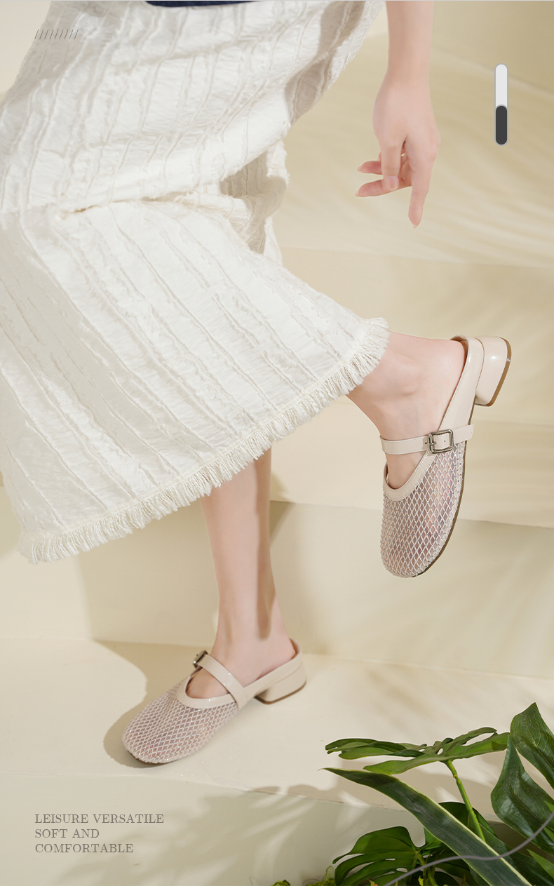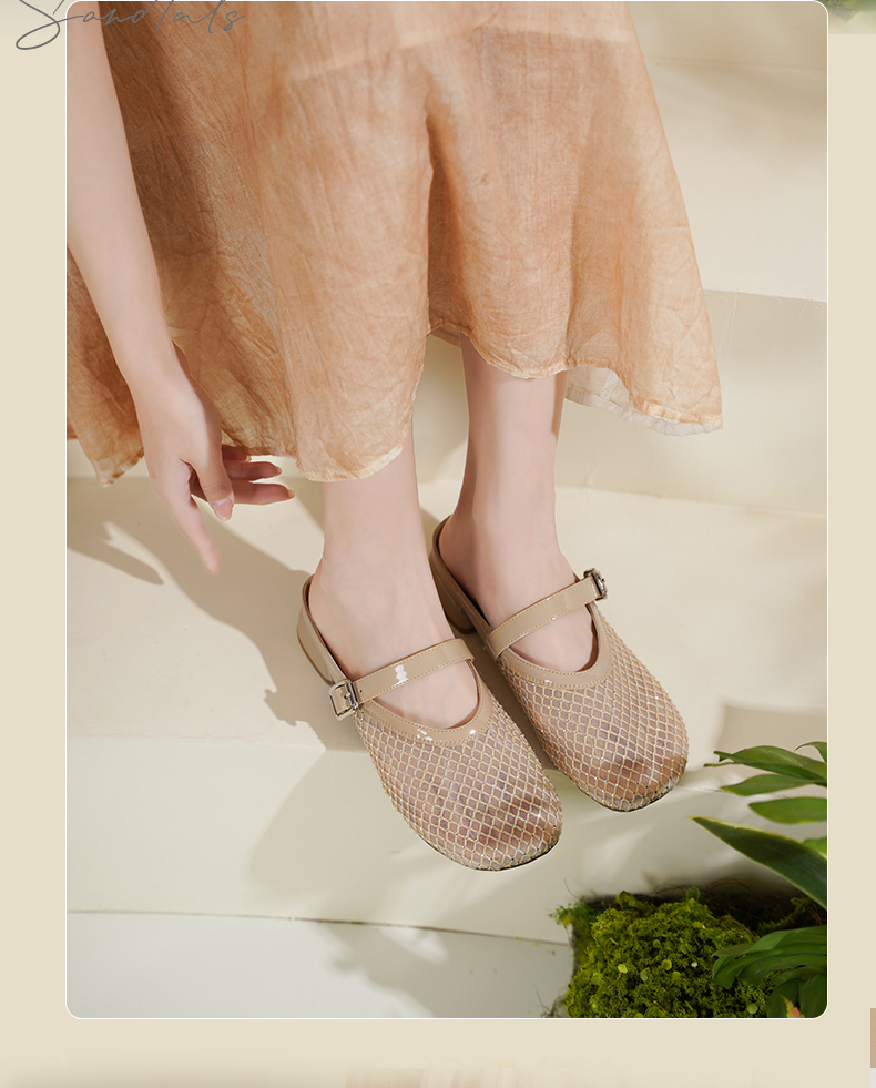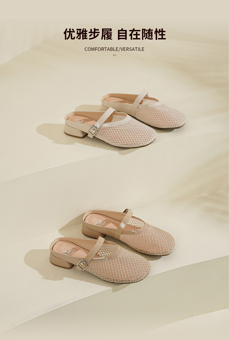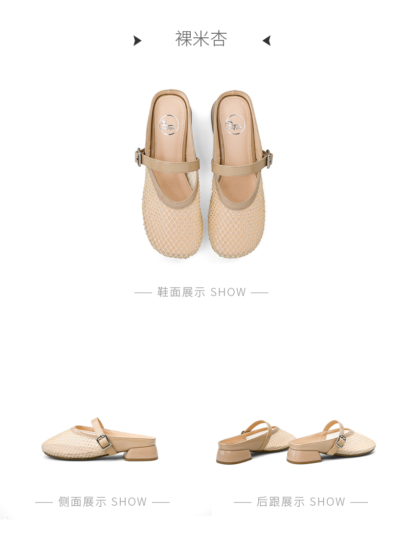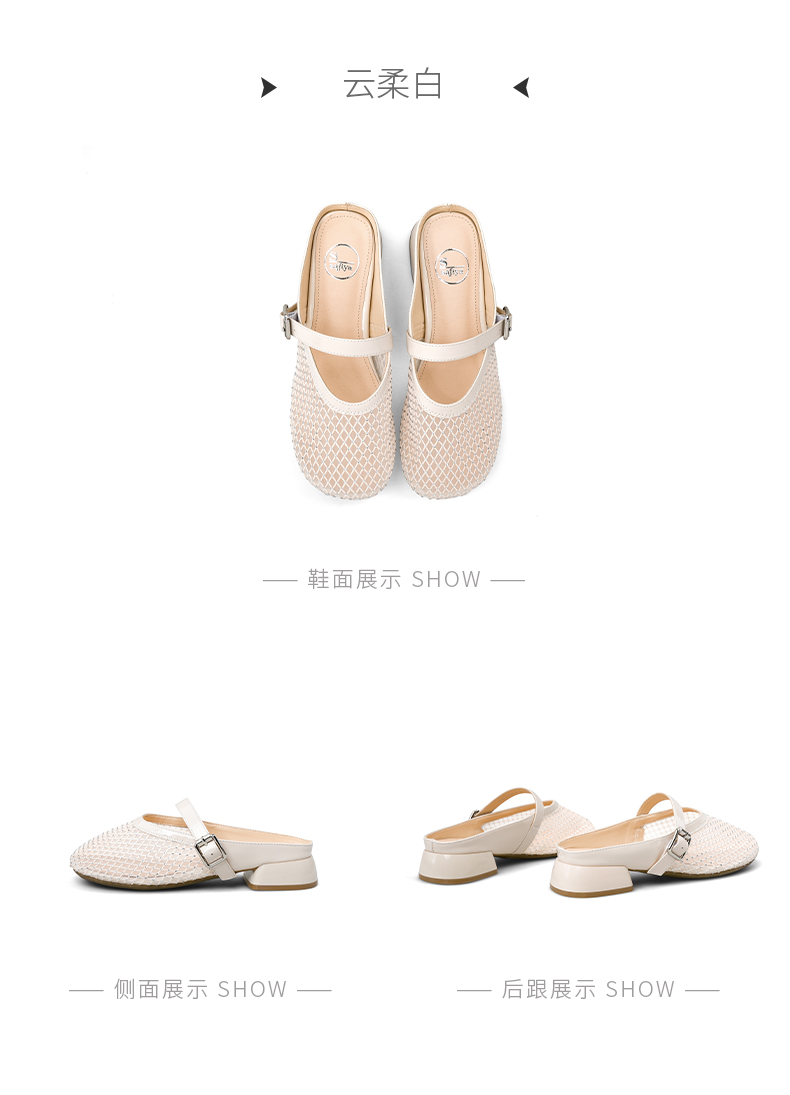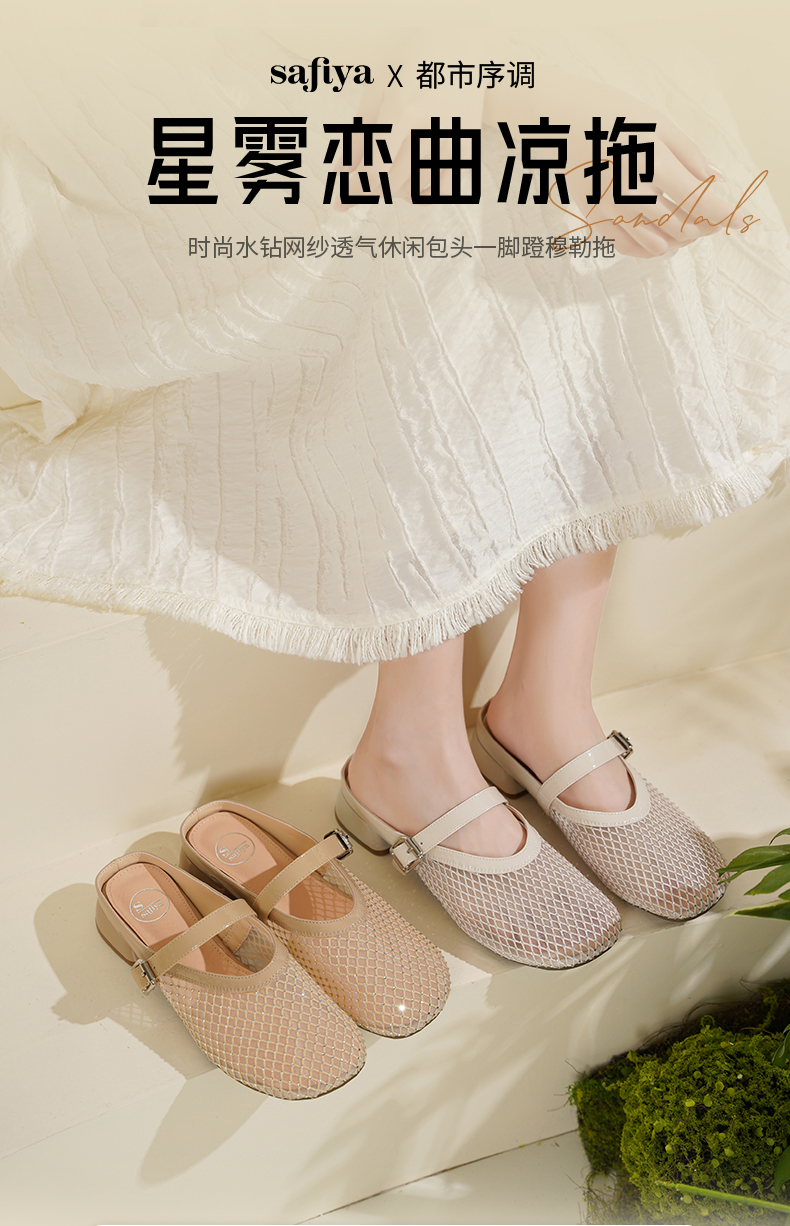 预售7天|Safiya/索菲娅2025时尚水钻网纱透气休闲包头一脚蹬穆勒拖SFD2110402