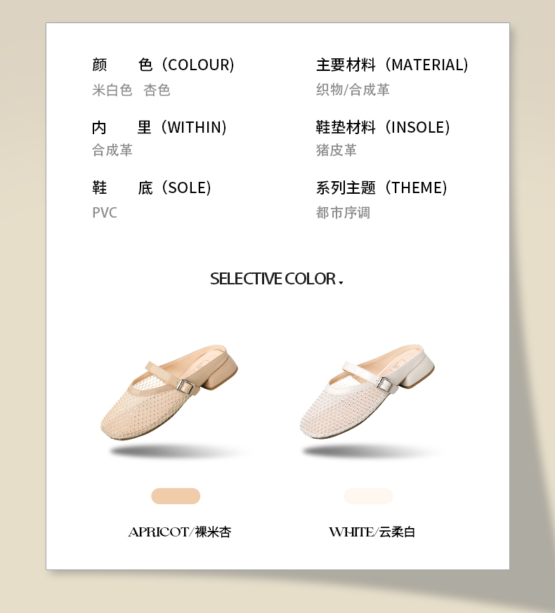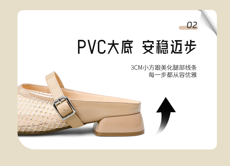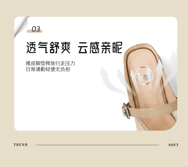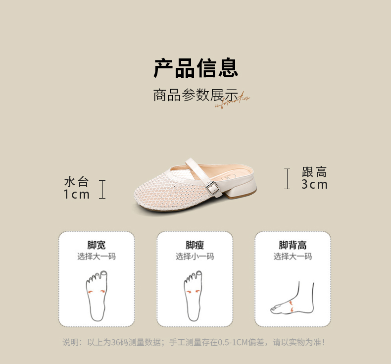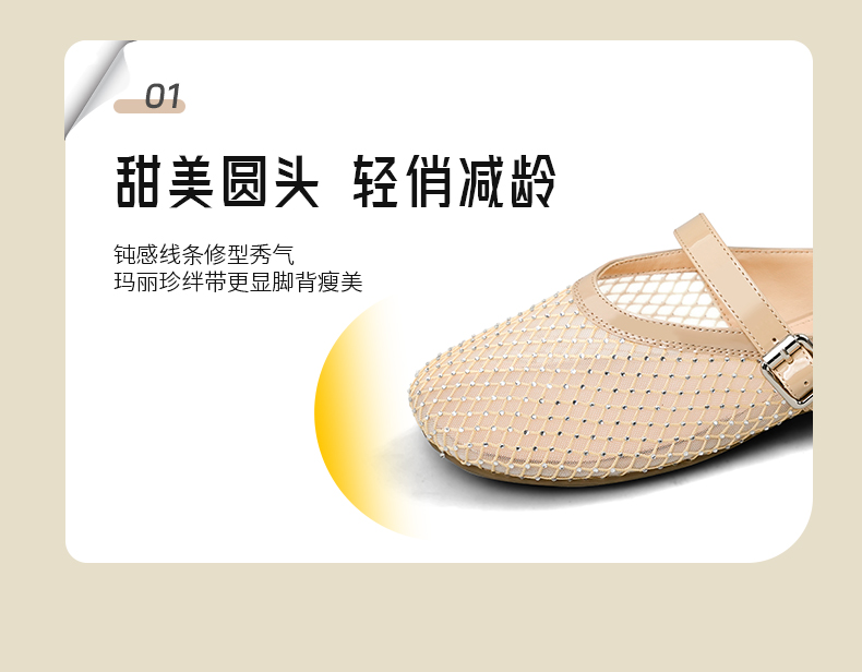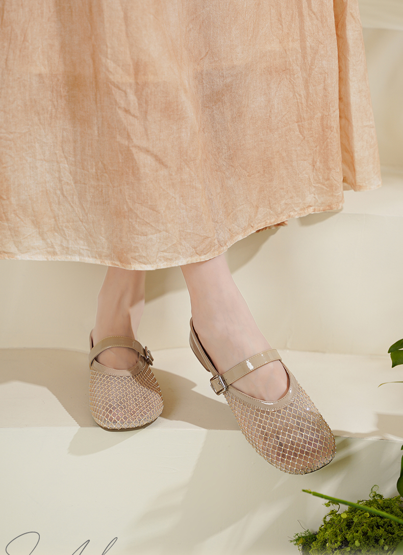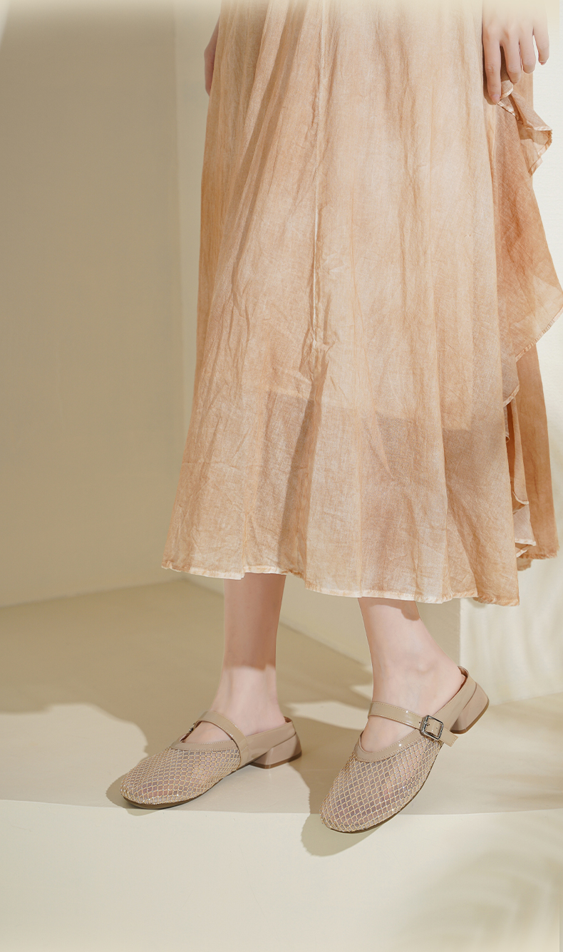 预售7天|Safiya/索菲娅2025时尚水钻网纱透气休闲包头一脚蹬穆勒拖SFD2110402