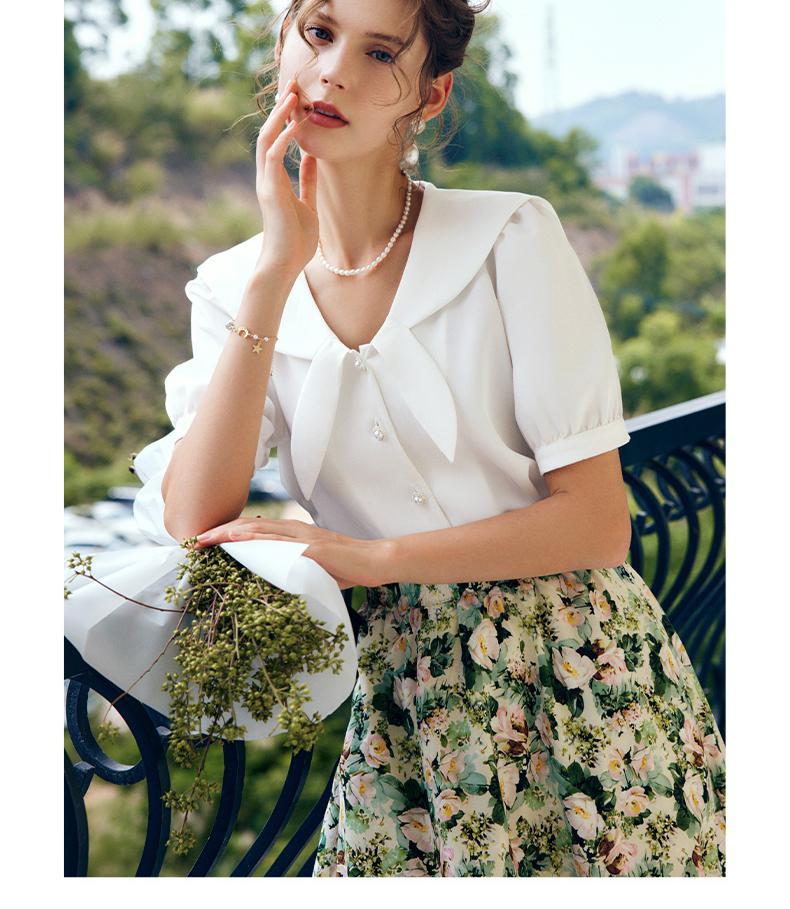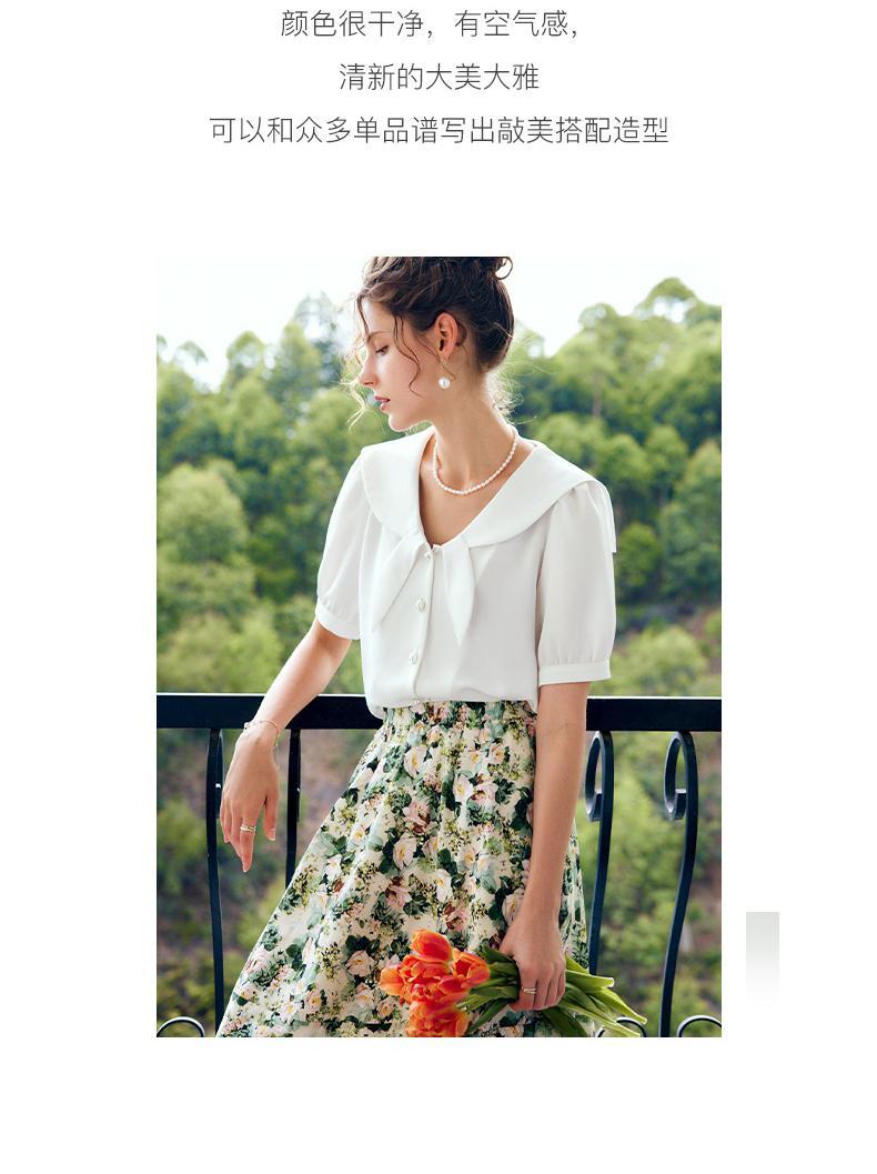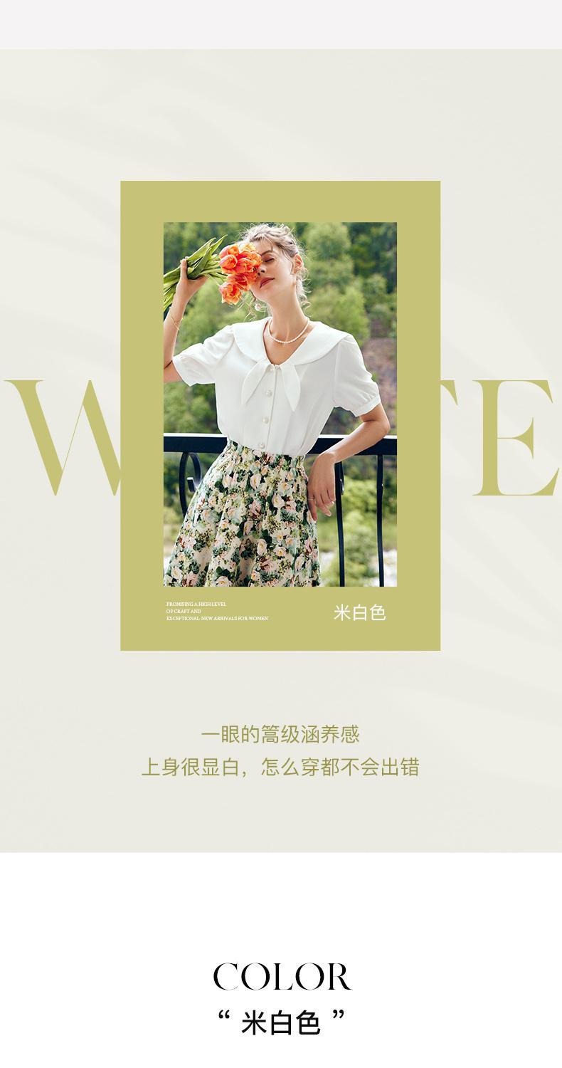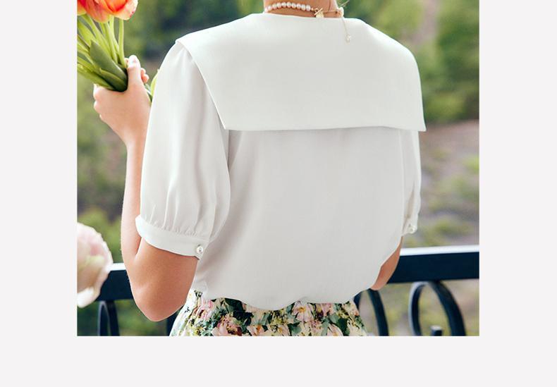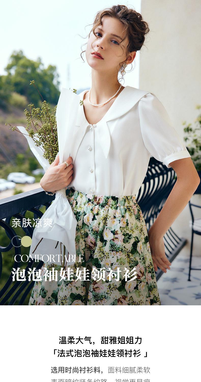 OLrain法式高级穿搭白色短袖衬衫女夏季2022年新款时尚娃娃领上衣
