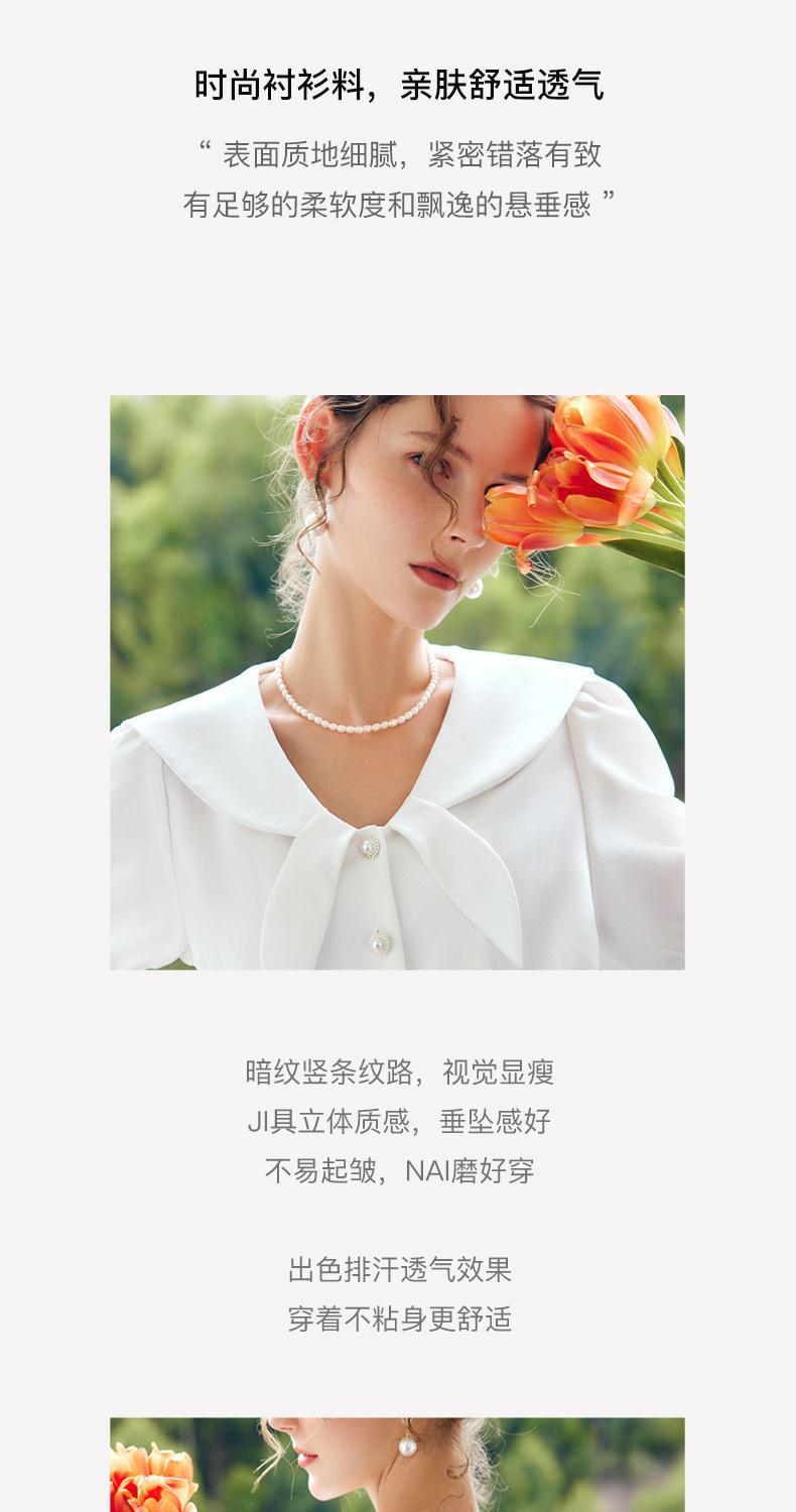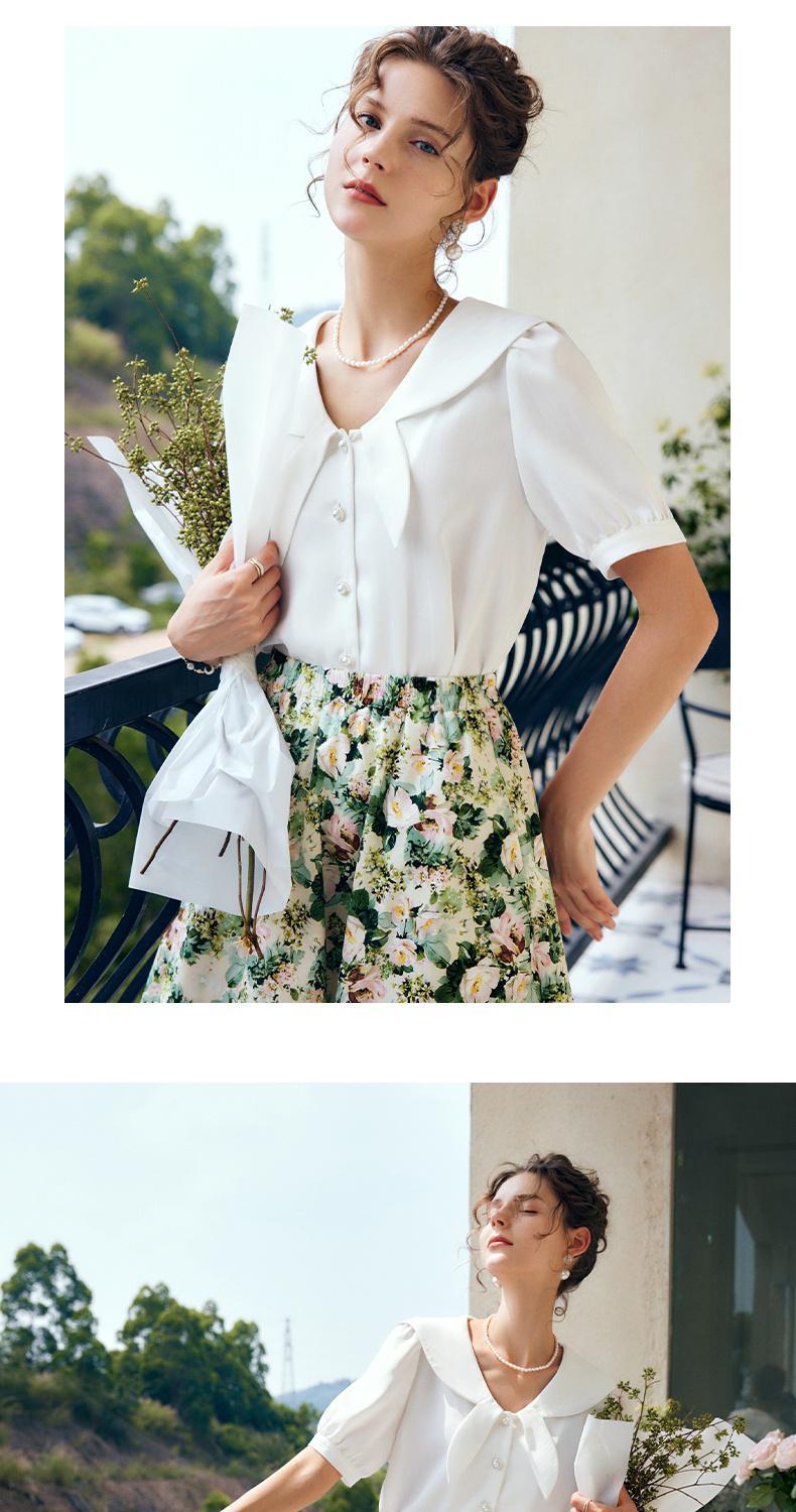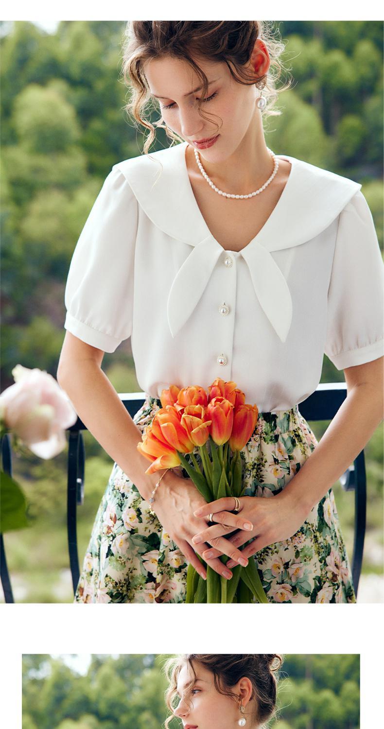 OLrain法式高级穿搭白色短袖衬衫女夏季2022年新款时尚娃娃领上衣