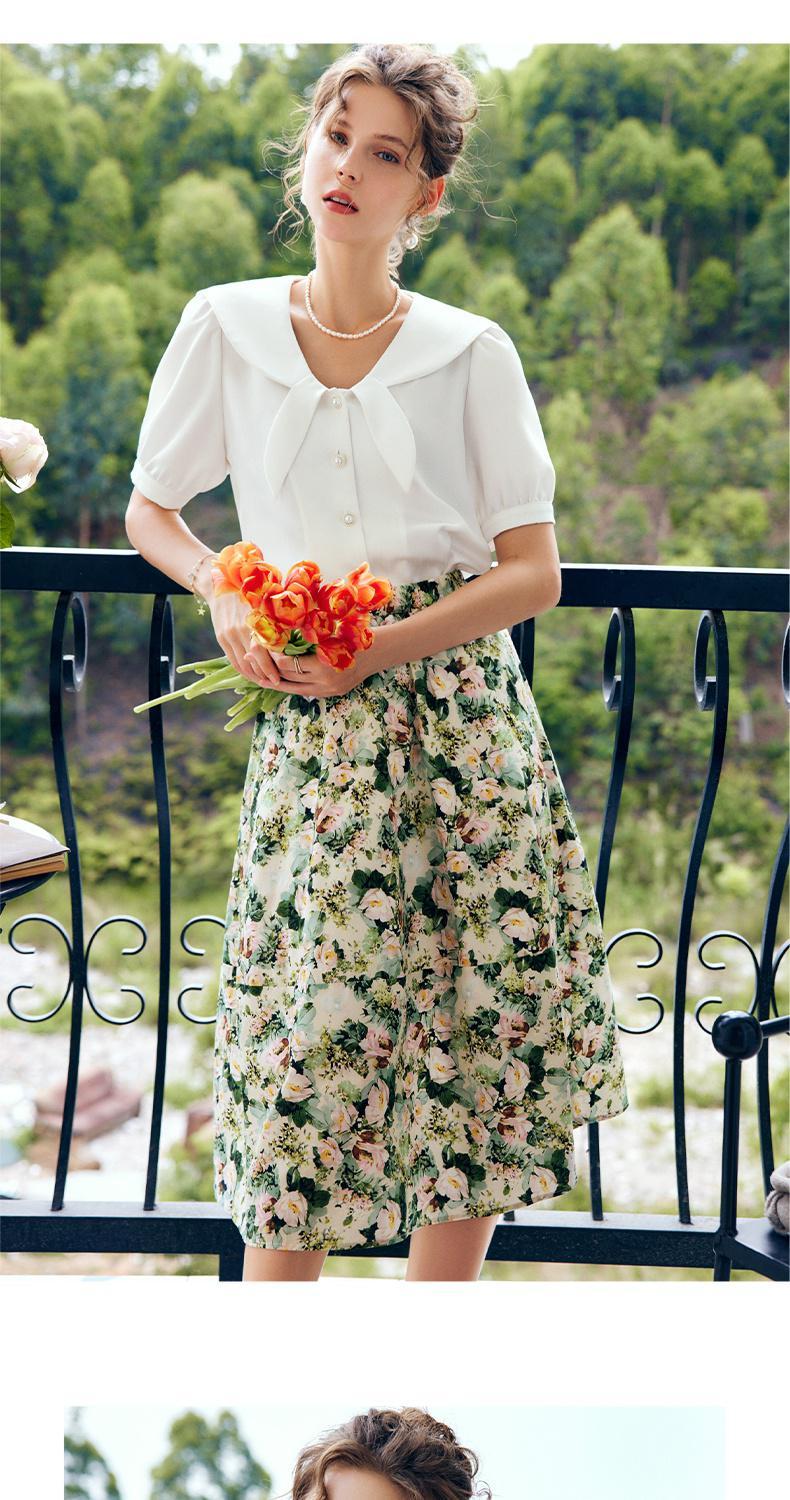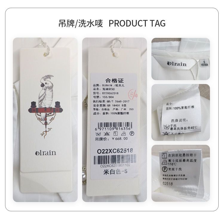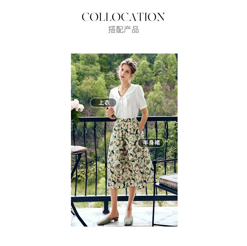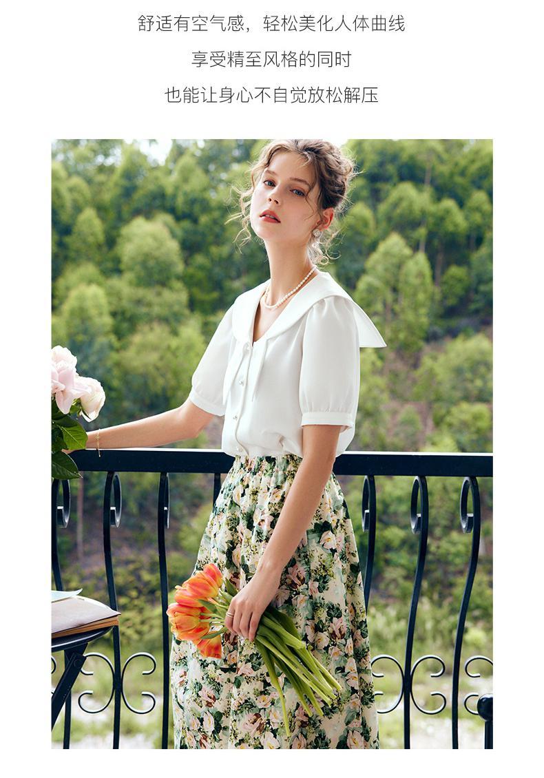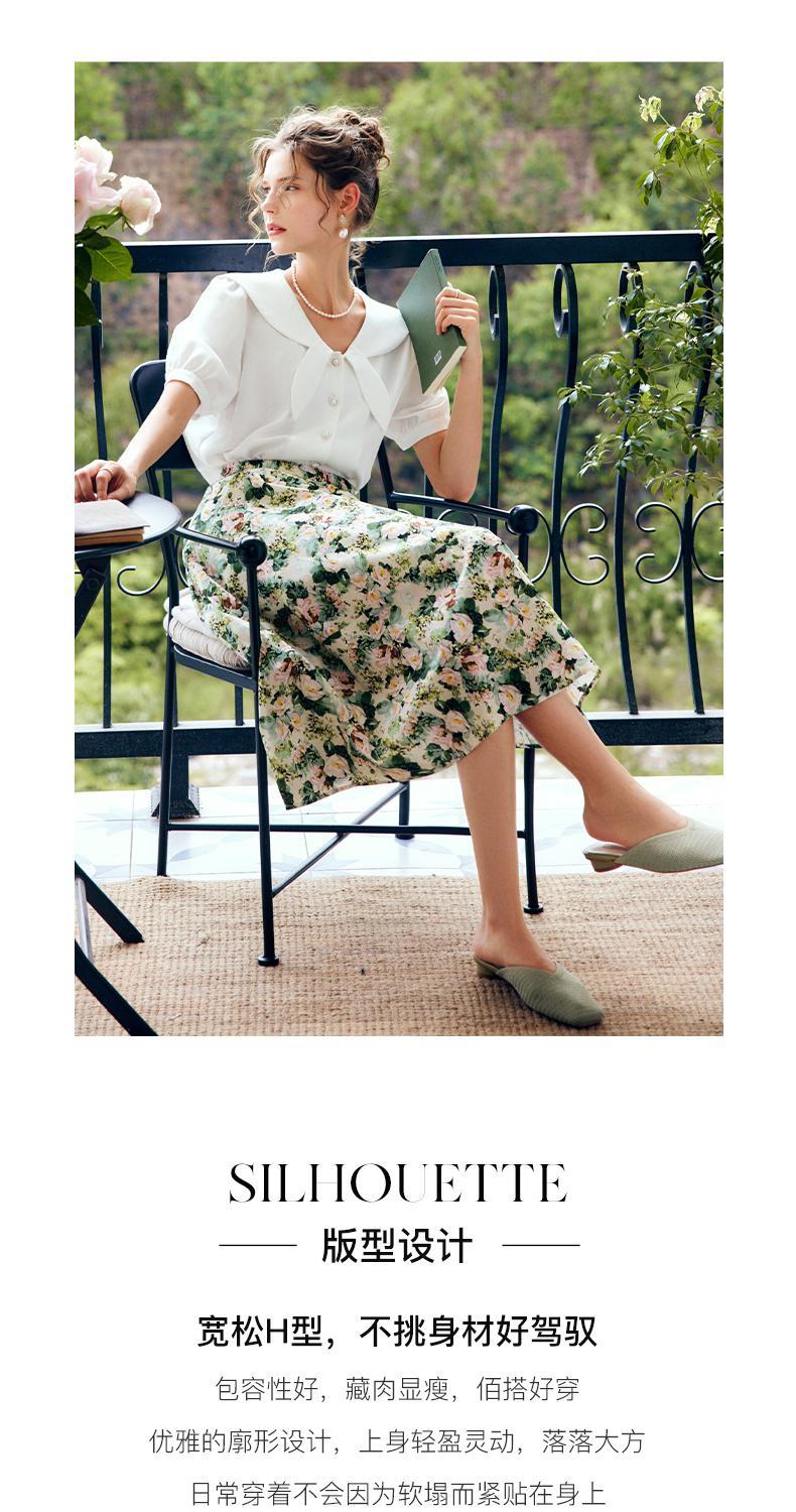 OLrain法式高级穿搭白色短袖衬衫女夏季2022年新款时尚娃娃领上衣